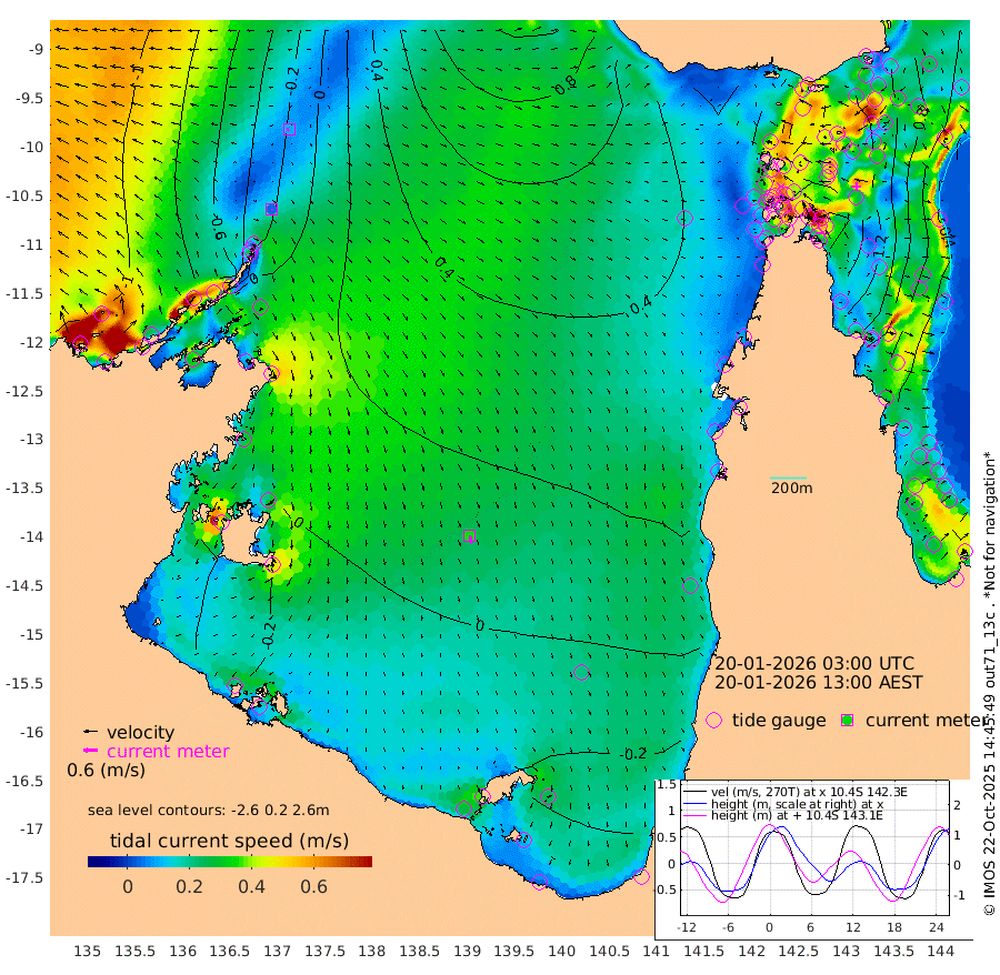 5cm/s 156T +3cm/s rms + 7cm/s -42T. ARA-GOC87 57m 35cm/s 167T +3cm/s rms + 2cm/s -2T. ARA-GOC87 60m 10cm/s -99T +2cm/s rms + 3cm/s 61T. ARA-GOC87 47m 155cm Daru 139cm Bobo Island 58cm Meer Island Barge 90cm Bramble Cay 129cm Unnamed Cay 126cm Pearce Cay 112cm Stephens Island 124cm Merrie England Shoals 158cm Mutacomal Reef 102cm Darnley Island Barge 66cm East Cay 125cm Yorke Island Barge 138cm Rennel Island 132cm Aureed Island 148cm Dungeness Reef 164cm Zagai Island 167cm Yam Island 173cm Dauan Island 163cm Saibai Island 157cm Phipi Reef 180cm Warrior Reef - West 139cm Mabuiag Island Barge 129cm Half Way Island 154cm Coconut Island 147cm Dugong Islet 161cm Poll Island 156cm Kirkcaldie Reef 168cm Suarji Island 158cm Sue Islet 112cm Hawkesbury Island 164cm Alert Patches 166cm Twin Island 116cm Badu Island 172cm St Pauls (Moa Island) 127cm Kubin (Moa Island) 150cm Ince Point 138cm Thursday Island 142cm Nardana Patches 128cm Turtle Head 113cm Round Island 98cm Goods Island 77cm Booby Island 83cm White Rocks Area 57cm Carpentaria 143cm Papou Point 97cm Bampfield Head 60cm Crab Island 89cm Red Wallis Island 124cm Packe Island 157cm Harrington Reef 108cm Herald Camp 50cm Sharp Point 100cm Red Island Point 129cm Possession Island 163cm Alpha Rock 165cm Frederick Point 164cm Wyborn Reef Light 170cm Tetley Island 77cm Triangle Reef 149cm Turtle Head Island 66cm Maclennan Cay 37cm Raine Island 122cm Mcsweeny Reef 108cm Collette Reef 69cm Shadwell Reef 110cm Hannibal Island 95cm Round Point 47cm Vrilya Point 81cm Cape Grenville 72cm Hicks Island 82cm Sir Charles Hardy Island 24cm Harvey Island 63cm Kay Reef 48cm Rocky Island 46cm Chapman Island 42cm Ham Reef 46cm Jubilee Reef 48cm Night Island 45cm Unnamed Reef No. 3 47cm Morris Island 40cm 1st 3 Mile Opening 45cm Creech Reef 57cm Fife Island 38cm Eden Reef 46cm Stanley Island 47cm Normanby River -78cm Yabooma Island -79cm Hutchison River -87cm Elcho Island -89cm North West Crocodile Island -17cm Cape Wessel -51cm Stevens Island 15cm Guluwuru Island -58cm Hopeful Bay -38cm Auster Point -41cm Two Island Bay -42cm Cadell Strait 149cm Mallison Island 3cm Melville Bay (Gove Harbour) 11cm Truant Island 10cm Cape Arnhem -18cm Cape Grey -20cm Hawk Island -59cm Milner Bay (Groote Eylandt) -53cm Cape Beatrice -69cm West Island -75cm Centre Island -51cm Mornington Island -46cm West Wellesley Islands -79cm Bountiful Island -123cm Albert River Mouth -150cm Sweers Island -113cm Karumba -10cm Nassau River Offshore 31cm Christmas Creek 34cm Archer River 52cm Boyd Point 45cm Weipa (Humbug Point) 33cm Pennefather River 54cm Cullen Point