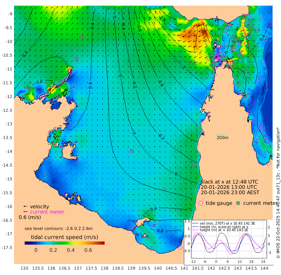 22cm/s 66T +3cm/s rms + 7cm/s -42T. ARA-GOC87 57m 20cm/s -32T +3cm/s rms + 2cm/s -2T. ARA-GOC87 60m 30cm/s 57T +2cm/s rms + 3cm/s 61T. ARA-GOC87 47m 55cm Daru 58cm Bobo Island 30cm Meer Island Barge 53cm Bramble Cay 60cm Unnamed Cay 59cm Pearce Cay 52cm Stephens Island 66cm Merrie England Shoals 59cm Mutacomal Reef 47cm Darnley Island Barge 35cm East Cay 48cm Yorke Island Barge 47cm Rennel Island 46cm Aureed Island 39cm Dungeness Reef 11cm Zagai Island 3cm Yam Island -36cm Dauan Island -37cm Saibai Island 2cm Phipi Reef 8cm Warrior Reef - West -52cm Mabuiag Island Barge 46cm Half Way Island 37cm Coconut Island 39cm Dugong Islet 21cm Poll Island 22cm Kirkcaldie Reef -3cm Suarji Island 17cm Sue Islet -118cm Hawkesbury Island -18cm Alert Patches -15cm Twin Island -100cm Badu Island -20cm St Pauls (Moa Island) -90cm Kubin (Moa Island) -47cm Ince Point -66cm Thursday Island -61cm Nardana Patches -84cm Turtle Head -94cm Round Island -121cm Goods Island -155cm Booby Island -137cm White Rocks Area -177cm Carpentaria -22cm Papou Point -159cm Bampfield Head -131cm Crab Island -150cm Red Wallis Island -109cm Packe Island 43cm Harrington Reef -138cm Herald Camp -2cm Sharp Point -69cm Red Island Point -41cm Possession Island -6cm Alpha Rock 10cm Frederick Point 49cm Wyborn Reef Light 41cm Tetley Island 18cm Triangle Reef 50cm Turtle Head Island 18cm Maclennan Cay 14cm Raine Island 49cm Mcsweeny Reef 49cm Collette Reef 30cm Shadwell Reef 59cm Hannibal Island 53cm Round Point -134cm Vrilya Point 40cm Cape Grenville 36cm Hicks Island 18cm Sir Charles Hardy Island 12cm Harvey Island 34cm Kay Reef 23cm Rocky Island 17cm Chapman Island 10cm Ham Reef 18cm Jubilee Reef 19cm Night Island 11cm Unnamed Reef No. 3 24cm Morris Island 13cm 1st 3 Mile Opening 16cm Creech Reef 25cm Fife Island 29cm Eden Reef 25cm Stanley Island 36cm Normanby River 92cm Yabooma Island 111cm Hutchison River 93cm Elcho Island 93cm North West Crocodile Island 55cm Cape Wessel 103cm Stevens Island 72cm Guluwuru Island 92cm Hopeful Bay 74cm Auster Point 70cm Two Island Bay 115cm Cadell Strait 104cm Mallison Island 74cm Melville Bay (Gove Harbour) 68cm Truant Island 49cm Cape Arnhem 60cm Cape Grey 66cm Hawk Island 67cm Milner Bay (Groote Eylandt) 62cm Cape Beatrice 54cm West Island 53cm Centre Island 95cm Mornington Island 92cm West Wellesley Islands 130cm Bountiful Island 167cm Albert River Mouth 200cm Sweers Island 162cm Karumba 57cm Nassau River Offshore 3cm Christmas Creek -45cm Archer River -81cm Boyd Point -80cm Weipa (Humbug Point) -76cm Pennefather River -127cm Cullen Point