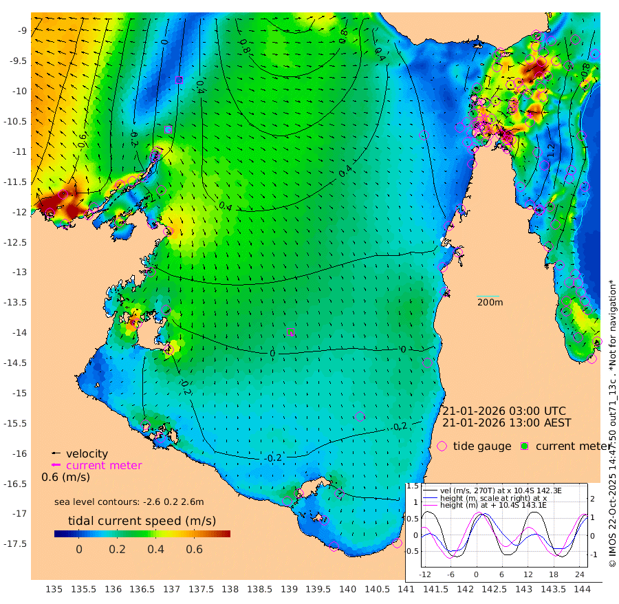 14cm/s 113T +3cm/s rms + 7cm/s -42T. ARA-GOC87 57m 33cm/s 166T +3cm/s rms + 2cm/s -2T. ARA-GOC87 60m 2cm/s 126T +2cm/s rms + 3cm/s 61T. ARA-GOC87 47m 164cm Daru 149cm Bobo Island 74cm Meer Island Barge 106cm Bramble Cay 143cm Unnamed Cay 138cm Pearce Cay 127cm Stephens Island 139cm Merrie England Shoals 167cm Mutacomal Reef 117cm Darnley Island Barge 81cm East Cay 137cm Yorke Island Barge 148cm Rennel Island 139cm Aureed Island 152cm Dungeness Reef 159cm Zagai Island 163cm Yam Island 157cm Dauan Island 147cm Saibai Island 140cm Phipi Reef 173cm Warrior Reef - West 123cm Mabuiag Island Barge 141cm Half Way Island 157cm Coconut Island 156cm Dugong Islet 160cm Poll Island 158cm Kirkcaldie Reef 154cm Suarji Island 156cm Sue Islet 96cm Hawkesbury Island 151cm Alert Patches 156cm Twin Island 100cm Badu Island 160cm St Pauls (Moa Island) 114cm Kubin (Moa Island) 137cm Ince Point 123cm Thursday Island 127cm Nardana Patches 112cm Turtle Head 94cm Round Island 82cm Goods Island 58cm Booby Island 66cm White Rocks Area 36cm Carpentaria 135cm Papou Point 73cm Bampfield Head 44cm Crab Island 69cm Red Wallis Island 105cm Packe Island 163cm Harrington Reef 85cm Herald Camp 45cm Sharp Point 86cm Red Island Point 114cm Possession Island 155cm Alpha Rock 162cm Frederick Point 171cm Wyborn Reef Light 174cm Tetley Island 85cm Triangle Reef 161cm Turtle Head Island 78cm Maclennan Cay 50cm Raine Island 134cm Mcsweeny Reef 120cm Collette Reef 81cm Shadwell Reef 125cm Hannibal Island 110cm Round Point 30cm Vrilya Point 95cm Cape Grenville 86cm Hicks Island 96cm Sir Charles Hardy Island 29cm Harvey Island 77cm Kay Reef 61cm Rocky Island 56cm Chapman Island 53cm Ham Reef 61cm Jubilee Reef 58cm Night Island 55cm Unnamed Reef No. 3 62cm Morris Island 55cm 1st 3 Mile Opening 59cm Creech Reef 70cm Fife Island 57cm Eden Reef 62cm Stanley Island 65cm Normanby River -24cm Yabooma Island -15cm Hutchison River -34cm Elcho Island -38cm North West Crocodile Island 22cm Cape Wessel 1cm Stevens Island 61cm Guluwuru Island -15cm Hopeful Bay 4cm Auster Point 5cm Two Island Bay 22cm Cadell Strait 197cm Mallison Island 42cm Melville Bay (Gove Harbour) 51cm Truant Island 34cm Cape Arnhem 0cm Cape Grey -12cm Hawk Island -57cm Milner Bay (Groote Eylandt) -54cm Cape Beatrice -82cm West Island -91cm Centre Island -67cm Mornington Island -60cm West Wellesley Islands -91cm Bountiful Island -129cm Albert River Mouth -161cm Sweers Island -125cm Karumba -26cm Nassau River Offshore 16cm Christmas Creek 19cm Archer River 38cm Boyd Point 30cm Weipa (Humbug Point) 20cm Pennefather River 35cm Cullen Point