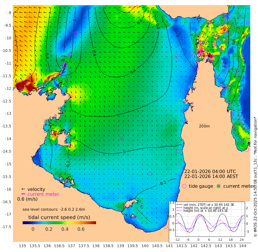 9cm/s 99T +3cm/s rms + 7cm/s -42T. ARA-GOC87 57m 31cm/s 165T +3cm/s rms + 2cm/s -2T. ARA-GOC87 60m 2cm/s -46T +2cm/s rms + 3cm/s 61T. ARA-GOC87 47m 140cm Daru 124cm Bobo Island 53cm Meer Island Barge 79cm Bramble Cay 114cm Unnamed Cay 108cm Pearce Cay 100cm Stephens Island 108cm Merrie England Shoals 138cm Mutacomal Reef 93cm Darnley Island Barge 58cm East Cay 113cm Yorke Island Barge 120cm Rennel Island 114cm Aureed Island 127cm Dungeness Reef 145cm Zagai Island 149cm Yam Island 151cm Dauan Island 145cm Saibai Island 130cm Phipi Reef 160cm Warrior Reef - West 113cm Mabuiag Island Barge 115cm Half Way Island 131cm Coconut Island 130cm Dugong Islet 137cm Poll Island 137cm Kirkcaldie Reef 132cm Suarji Island 139cm Sue Islet 69cm Hawkesbury Island 127cm Alert Patches 133cm Twin Island 77cm Badu Island 141cm St Pauls (Moa Island) 90cm Kubin (Moa Island) 116cm Ince Point 102cm Thursday Island 106cm Nardana Patches 87cm Turtle Head 69cm Round Island 54cm Goods Island 32cm Booby Island 36cm White Rocks Area 22cm Carpentaria 119cm Papou Point 40cm Bampfield Head 26cm Crab Island 44cm Red Wallis Island 78cm Packe Island 135cm Harrington Reef 62cm Herald Camp 44cm Sharp Point 69cm Red Island Point 91cm Possession Island 135cm Alpha Rock 137cm Frederick Point 142cm Wyborn Reef Light 146cm Tetley Island 64cm Triangle Reef 129cm Turtle Head Island 57cm Maclennan Cay 31cm Raine Island 107cm Mcsweeny Reef 94cm Collette Reef 60cm Shadwell Reef 97cm Hannibal Island 80cm Round Point 16cm Vrilya Point 69cm Cape Grenville 63cm Hicks Island 74cm Sir Charles Hardy Island 22cm Harvey Island 52cm Kay Reef 40cm Rocky Island 34cm Chapman Island 35cm Ham Reef 41cm Jubilee Reef 39cm Night Island 35cm Unnamed Reef No. 3 40cm Morris Island 34cm 1st 3 Mile Opening 38cm Creech Reef 49cm Fife Island 32cm Eden Reef 39cm Stanley Island 41cm Normanby River -58cm Yabooma Island -55cm Hutchison River -66cm Elcho Island -66cm North West Crocodile Island 2cm Cape Wessel -29cm Stevens Island 47cm Guluwuru Island -43cm Hopeful Bay -22cm Auster Point -16cm Two Island Bay -4cm Cadell Strait 194cm Mallison Island 26cm Melville Bay (Gove Harbour) 33cm Truant Island 25cm Cape Arnhem -3cm Cape Grey -14cm Hawk Island -50cm Milner Bay (Groote Eylandt) -44cm Cape Beatrice -63cm West Island -73cm Centre Island -48cm Mornington Island -44cm West Wellesley Islands -72cm Bountiful Island -104cm Albert River Mouth -137cm Sweers Island -101cm Karumba -15cm Nassau River Offshore 19cm Christmas Creek 12cm Archer River 29cm Boyd Point 19cm Weipa (Humbug Point) 10cm Pennefather River 23cm Cullen Point
