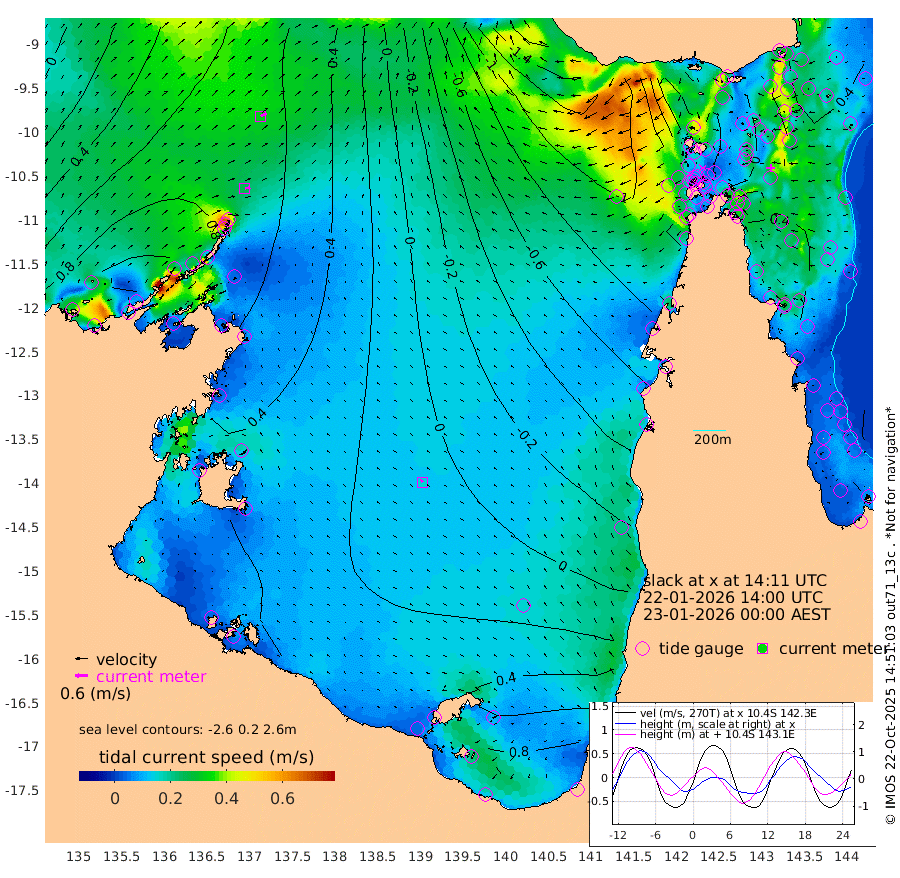 26cm/s 84T +3cm/s rms + 7cm/s -42T. ARA-GOC87 57m 15cm/s -41T +3cm/s rms + 2cm/s -2T. ARA-GOC87 60m 32cm/s 68T +2cm/s rms + 3cm/s 61T. ARA-GOC87 47m 48cm Daru 51cm Bobo Island 33cm Meer Island Barge 47cm Bramble Cay 49cm Unnamed Cay 56cm Pearce Cay 49cm Stephens Island 51cm Merrie England Shoals 43cm Mutacomal Reef 44cm Darnley Island Barge 34cm East Cay 43cm Yorke Island Barge 41cm Rennel Island 43cm Aureed Island 37cm Dungeness Reef 11cm Zagai Island -1cm Yam Island -19cm Dauan Island -34cm Saibai Island 13cm Phipi Reef 11cm Warrior Reef - West -48cm Mabuiag Island Barge 40cm Half Way Island 31cm Coconut Island 33cm Dugong Islet 18cm Poll Island 15cm Kirkcaldie Reef -2cm Suarji Island 9cm Sue Islet -100cm Hawkesbury Island -17cm Alert Patches -15cm Twin Island -81cm Badu Island -17cm St Pauls (Moa Island) -71cm Kubin (Moa Island) -40cm Ince Point -56cm Thursday Island -51cm Nardana Patches -66cm Turtle Head -75cm Round Island -97cm Goods Island -128cm Booby Island -116cm White Rocks Area -157cm Carpentaria -22cm Papou Point -128cm Bampfield Head -107cm Crab Island -127cm Red Wallis Island -87cm Packe Island 35cm Harrington Reef -112cm Herald Camp -5cm Sharp Point -64cm Red Island Point -31cm Possession Island -14cm Alpha Rock 7cm Frederick Point 39cm Wyborn Reef Light 31cm Tetley Island 20cm Triangle Reef 47cm Turtle Head Island 20cm Maclennan Cay 19cm Raine Island 44cm Mcsweeny Reef 42cm Collette Reef 29cm Shadwell Reef 51cm Hannibal Island 48cm Round Point -114cm Vrilya Point 34cm Cape Grenville 36cm Hicks Island 17cm Sir Charles Hardy Island 11cm Harvey Island 27cm Kay Reef 24cm Rocky Island 19cm Chapman Island 11cm Ham Reef 20cm Jubilee Reef 23cm Night Island 12cm Unnamed Reef No. 3 26cm Morris Island 21cm 1st 3 Mile Opening 20cm Creech Reef 32cm Fife Island 32cm Eden Reef 25cm Stanley Island 34cm Normanby River 113cm Yabooma Island 138cm Hutchison River 114cm Elcho Island 109cm North West Crocodile Island 68cm Cape Wessel 119cm Stevens Island 87cm Guluwuru Island 107cm Hopeful Bay 92cm Auster Point 90cm Two Island Bay 142cm Cadell Strait 102cm Mallison Island 91cm Melville Bay (Gove Harbour) 88cm Truant Island 63cm Cape Arnhem 60cm Cape Grey 64cm Hawk Island 54cm Milner Bay (Groote Eylandt) 47cm Cape Beatrice 28cm West Island 27cm Centre Island 75cm Mornington Island 69cm West Wellesley Islands 102cm Bountiful Island 139cm Albert River Mouth 171cm Sweers Island 136cm Karumba 47cm Nassau River Offshore 3cm Christmas Creek -37cm Archer River -66cm Boyd Point -62cm Weipa (Humbug Point) -61cm Pennefather River -106cm Cullen Point