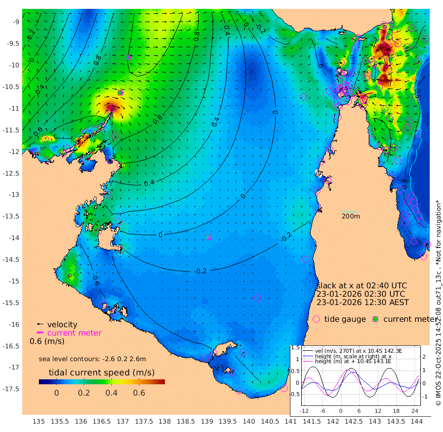 30cm/s 107T +3cm/s rms + 7cm/s -42T. ARA-GOC87 57m 18cm/s 172T +3cm/s rms + 2cm/s -2T. ARA-GOC87 60m 24cm/s 96T +2cm/s rms + 3cm/s 61T. ARA-GOC87 47m 120cm Daru 119cm Bobo Island 87cm Meer Island Barge 106cm Bramble Cay 119cm Unnamed Cay 123cm Pearce Cay 117cm Stephens Island 113cm Merrie England Shoals 118cm Mutacomal Reef 108cm Darnley Island Barge 93cm East Cay 113cm Yorke Island Barge 119cm Rennel Island 110cm Aureed Island 112cm Dungeness Reef 93cm Zagai Island 98cm Yam Island 82cm Dauan Island 69cm Saibai Island 70cm Phipi Reef 100cm Warrior Reef - West 59cm Mabuiag Island Barge 115cm Half Way Island 107cm Coconut Island 120cm Dugong Islet 103cm Poll Island 104cm Kirkcaldie Reef 84cm Suarji Island 96cm Sue Islet 68cm Hawkesbury Island 80cm Alert Patches 87cm Twin Island 63cm Badu Island 86cm St Pauls (Moa Island) 73cm Kubin (Moa Island) 73cm Ince Point 65cm Thursday Island 67cm Nardana Patches 65cm Turtle Head 53cm Round Island 57cm Goods Island 35cm Booby Island 45cm White Rocks Area 0cm Carpentaria 80cm Papou Point 43cm Bampfield Head 19cm Crab Island 36cm Red Wallis Island 58cm Packe Island 119cm Harrington Reef 48cm Herald Camp 13cm Sharp Point 52cm Red Island Point 62cm Possession Island 83cm Alpha Rock 101cm Frederick Point 120cm Wyborn Reef Light 117cm Tetley Island 79cm Triangle Reef 132cm Turtle Head Island 86cm Maclennan Cay 69cm Raine Island 111cm Mcsweeny Reef 101cm Collette Reef 80cm Shadwell Reef 109cm Hannibal Island 107cm Round Point 1cm Vrilya Point 91cm Cape Grenville 95cm Hicks Island 102cm Sir Charles Hardy Island 29cm Harvey Island 84cm Kay Reef 77cm Rocky Island 71cm Chapman Island 69cm Ham Reef 78cm Jubilee Reef 67cm Night Island 69cm Unnamed Reef No. 3 81cm Morris Island 77cm 1st 3 Mile Opening 76cm Creech Reef 82cm Fife Island 88cm Eden Reef 79cm Stanley Island 92cm Normanby River 143cm Yabooma Island 173cm Hutchison River 130cm Elcho Island 122cm North West Crocodile Island 117cm Cape Wessel 133cm Stevens Island 141cm Guluwuru Island 107cm Hopeful Bay 116cm Auster Point 124cm Two Island Bay 176cm Cadell Strait 157cm Mallison Island 116cm Melville Bay (Gove Harbour) 127cm Truant Island 77cm Cape Arnhem 38cm Cape Grey 7cm Hawk Island -43cm Milner Bay (Groote Eylandt) -46cm Cape Beatrice -99cm West Island -111cm Centre Island -87cm Mornington Island -78cm West Wellesley Islands -81cm Bountiful Island -105cm Albert River Mouth -135cm Sweers Island -112cm Karumba -51cm Nassau River Offshore -18cm Christmas Creek -5cm Archer River 11cm Boyd Point 12cm Weipa (Humbug Point) -9cm Pennefather River 2cm Cullen Point