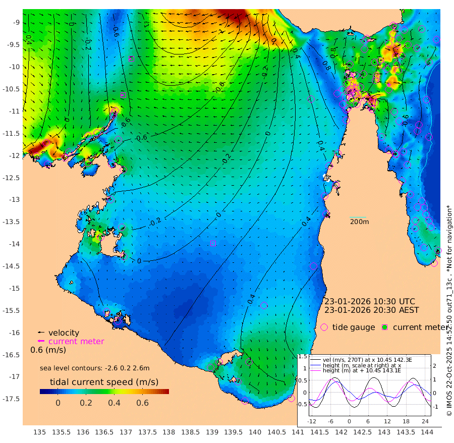 27cm/s -99T +3cm/s rms + 7cm/s -42T. ARA-GOC87 57m 10cm/s -90T +3cm/s rms + 2cm/s -2T. ARA-GOC87 60m 26cm/s -109T +2cm/s rms + 3cm/s 61T. ARA-GOC87 47m -84cm Daru -83cm Bobo Island -40cm Meer Island Barge -53cm Bramble Cay -74cm Unnamed Cay -69cm Pearce Cay -66cm Stephens Island -68cm Merrie England Shoals -78cm Mutacomal Reef -68cm Darnley Island Barge -39cm East Cay -78cm Yorke Island Barge -71cm Rennel Island -74cm Aureed Island -67cm Dungeness Reef -78cm Zagai Island -64cm Yam Island -47cm Dauan Island -60cm Saibai Island -34cm Phipi Reef -71cm Warrior Reef - West -34cm Mabuiag Island Barge -66cm Half Way Island -76cm Coconut Island -72cm Dugong Islet -67cm Poll Island -64cm Kirkcaldie Reef -61cm Suarji Island -80cm Sue Islet 38cm Hawkesbury Island -48cm Alert Patches -52cm Twin Island 22cm Badu Island -56cm St Pauls (Moa Island) 13cm Kubin (Moa Island) -27cm Ince Point -10cm Thursday Island -15cm Nardana Patches 13cm Turtle Head 21cm Round Island 46cm Goods Island 66cm Booby Island 60cm White Rocks Area 42cm Carpentaria -48cm Papou Point 37cm Bampfield Head 65cm Crab Island 67cm Red Wallis Island 43cm Packe Island -79cm Harrington Reef 53cm Herald Camp -17cm Sharp Point 17cm Red Island Point -23cm Possession Island -62cm Alpha Rock -66cm Frederick Point -88cm Wyborn Reef Light -87cm Tetley Island -37cm Triangle Reef -88cm Turtle Head Island -34cm Maclennan Cay -18cm Raine Island -70cm Mcsweeny Reef -63cm Collette Reef -40cm Shadwell Reef -67cm Hannibal Island -51cm Round Point 65cm Vrilya Point -43cm Cape Grenville -41cm Hicks Island -44cm Sir Charles Hardy Island -14cm Harvey Island -35cm Kay Reef -27cm Rocky Island -19cm Chapman Island -23cm Ham Reef -29cm Jubilee Reef -21cm Night Island -19cm Unnamed Reef No. 3 -27cm Morris Island -25cm 1st 3 Mile Opening -24cm Creech Reef -30cm Fife Island -24cm Eden Reef -25cm Stanley Island -29cm Normanby River -14cm Yabooma Island -35cm Hutchison River -17cm Elcho Island -8cm North West Crocodile Island -71cm Cape Wessel -47cm Stevens Island -112cm Guluwuru Island -31cm Hopeful Bay -57cm Auster Point -54cm Two Island Bay -70cm Cadell Strait -211cm Mallison Island -89cm Melville Bay (Gove Harbour) -99cm Truant Island -71cm Cape Arnhem -55cm Cape Grey -29cm Hawk Island -7cm Milner Bay (Groote Eylandt) 8cm Cape Beatrice 28cm West Island 37cm Centre Island 55cm Mornington Island 50cm West Wellesley Islands 59cm Bountiful Island 89cm Albert River Mouth 74cm Sweers Island 98cm Karumba 74cm Nassau River Offshore 65cm Christmas Creek 59cm Archer River 41cm Boyd Point 60cm Weipa (Humbug Point) 51cm Pennefather River 62cm Cullen Point