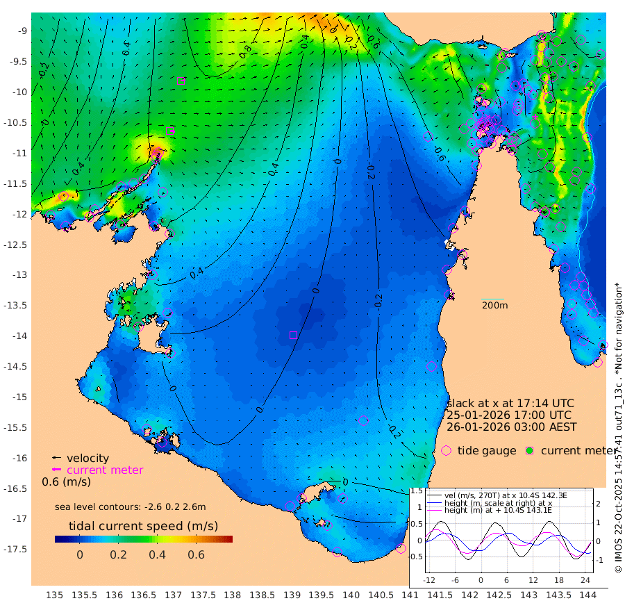 34cm/s 97T +3cm/s rms + 7cm/s -42T. ARA-GOC87 57m 1cm/s 154T +3cm/s rms + 2cm/s -2T. ARA-GOC87 60m 32cm/s 84T +2cm/s rms + 3cm/s 61T. ARA-GOC87 47m 22cm Daru 28cm Bobo Island 34cm Meer Island Barge 29cm Bramble Cay 22cm Unnamed Cay 29cm Pearce Cay 30cm Stephens Island 21cm Merrie England Shoals 7cm Mutacomal Reef 35cm Darnley Island Barge 27cm East Cay 28cm Yorke Island Barge 15cm Rennel Island 24cm Aureed Island 10cm Dungeness Reef 0cm Zagai Island -20cm Yam Island -18cm Dauan Island -26cm Saibai Island -10cm Phipi Reef -3cm Warrior Reef - West -47cm Mabuiag Island Barge 16cm Half Way Island 10cm Coconut Island 7cm Dugong Islet -5cm Poll Island -9cm Kirkcaldie Reef -25cm Suarji Island -6cm Sue Islet -92cm Hawkesbury Island -32cm Alert Patches -31cm Twin Island -68cm Badu Island -30cm St Pauls (Moa Island) -63cm Kubin (Moa Island) -45cm Ince Point -55cm Thursday Island -52cm Nardana Patches -60cm Turtle Head -71cm Round Island -78cm Goods Island -92cm Booby Island -97cm White Rocks Area -87cm Carpentaria -33cm Papou Point -89cm Bampfield Head -74cm Crab Island -96cm Red Wallis Island -75cm Packe Island 7cm Harrington Reef -95cm Herald Camp -11cm Sharp Point -67cm Red Island Point -41cm Possession Island -29cm Alpha Rock -13cm Frederick Point 11cm Wyborn Reef Light 5cm Tetley Island 19cm Triangle Reef 22cm Turtle Head Island 19cm Maclennan Cay 25cm Raine Island 25cm Mcsweeny Reef 26cm Collette Reef 27cm Shadwell Reef 31cm Hannibal Island 27cm Round Point -70cm Vrilya Point 20cm Cape Grenville 27cm Hicks Island 18cm Sir Charles Hardy Island 8cm Harvey Island 20cm Kay Reef 24cm Rocky Island 20cm Chapman Island 19cm Ham Reef 25cm Jubilee Reef 25cm Night Island 18cm Unnamed Reef No. 3 27cm Morris Island 29cm 1st 3 Mile Opening 26cm Creech Reef 36cm Fife Island 35cm Eden Reef 25cm Stanley Island 26cm Normanby River 48cm Yabooma Island 77cm Hutchison River 60cm Elcho Island 46cm North West Crocodile Island 62cm Cape Wessel 72cm Stevens Island 105cm Guluwuru Island 61cm Hopeful Bay 66cm Auster Point 69cm Two Island Bay 111cm Cadell Strait 188cm Mallison Island 92cm Melville Bay (Gove Harbour) 97cm Truant Island 73cm Cape Arnhem 50cm Cape Grey 40cm Hawk Island 19cm Milner Bay (Groote Eylandt) 9cm Cape Beatrice -19cm West Island -20cm Centre Island 5cm Mornington Island -3cm West Wellesley Islands -2cm Bountiful Island 16cm Albert River Mouth 35cm Sweers Island 9cm Karumba -8cm Nassau River Offshore -19cm Christmas Creek -31cm Archer River -38cm Boyd Point -43cm Weipa (Humbug Point) -32cm Pennefather River -68cm Cullen Point