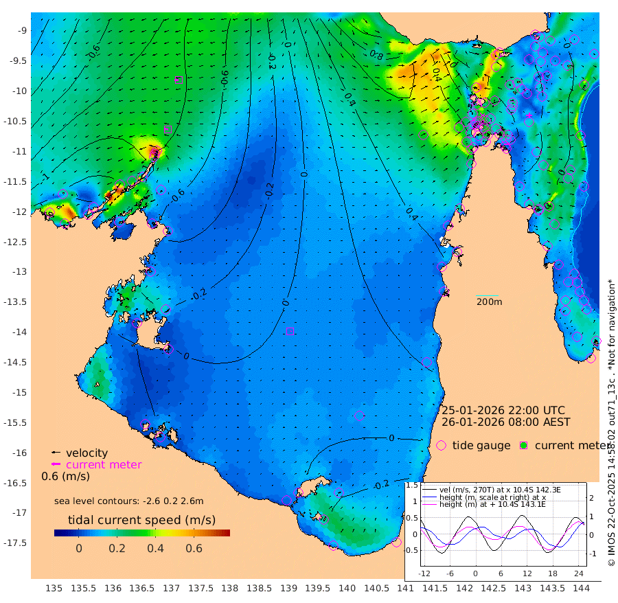 27cm/s -82T +3cm/s rms + 7cm/s -42T. ARA-GOC87 57m 6cm/s 82T +3cm/s rms + 2cm/s -2T. ARA-GOC87 60m 29cm/s -96T +2cm/s rms + 3cm/s 61T. ARA-GOC87 47m 11cm Daru 6cm Bobo Island -2cm Meer Island Barge 4cm Bramble Cay 18cm Unnamed Cay 2cm Pearce Cay 6cm Stephens Island 22cm Merrie England Shoals 26cm Mutacomal Reef 6cm Darnley Island Barge -1cm East Cay 11cm Yorke Island Barge 15cm Rennel Island 12cm Aureed Island 16cm Dungeness Reef 15cm Zagai Island 16cm Yam Island -3cm Dauan Island 10cm Saibai Island 6cm Phipi Reef 5cm Warrior Reef - West 32cm Mabuiag Island Barge 14cm Half Way Island 24cm Coconut Island 20cm Dugong Islet 23cm Poll Island 24cm Kirkcaldie Reef 45cm Suarji Island 29cm Sue Islet 44cm Hawkesbury Island 51cm Alert Patches 41cm Twin Island 34cm Badu Island 36cm St Pauls (Moa Island) 33cm Kubin (Moa Island) 42cm Ince Point 46cm Thursday Island 45cm Nardana Patches 43cm Turtle Head 52cm Round Island 46cm Goods Island 61cm Booby Island 60cm White Rocks Area 87cm Carpentaria 29cm Papou Point 87cm Bampfield Head 43cm Crab Island 55cm Red Wallis Island 42cm Packe Island 28cm Harrington Reef 54cm Herald Camp 13cm Sharp Point 34cm Red Island Point 50cm Possession Island 43cm Alpha Rock 33cm Frederick Point 26cm Wyborn Reef Light 28cm Tetley Island 6cm Triangle Reef 21cm Turtle Head Island 4cm Maclennan Cay -3cm Raine Island 14cm Mcsweeny Reef 15cm Collette Reef 7cm Shadwell Reef 15cm Hannibal Island 6cm Round Point 53cm Vrilya Point 15cm Cape Grenville 1cm Hicks Island 5cm Sir Charles Hardy Island 2cm Harvey Island 14cm Kay Reef 2cm Rocky Island 2cm Chapman Island 3cm Ham Reef 0cm Jubilee Reef 1cm Night Island 4cm Unnamed Reef No. 3 1cm Morris Island 4cm 1st 3 Mile Opening 2cm Creech Reef -11cm Fife Island -4cm Eden Reef 6cm Stanley Island -2cm Normanby River -143cm Yabooma Island -165cm Hutchison River -140cm Elcho Island -139cm North West Crocodile Island -97cm Cape Wessel -132cm Stevens Island -105cm Guluwuru Island -113cm Hopeful Bay -102cm Auster Point -120cm Two Island Bay -182cm Cadell Strait -110cm Mallison Island -94cm Melville Bay (Gove Harbour) -97cm Truant Island -63cm Cape Arnhem -35cm Cape Grey -23cm Hawk Island -1cm Milner Bay (Groote Eylandt) 2cm Cape Beatrice 37cm West Island 45cm Centre Island 1cm Mornington Island 7cm West Wellesley Islands -11cm Bountiful Island -44cm Albert River Mouth -30cm Sweers Island -39cm Karumba -10cm Nassau River Offshore 1cm Christmas Creek 20cm Archer River 31cm Boyd Point 25cm Weipa (Humbug Point) 37cm Pennefather River 46cm Cullen Point