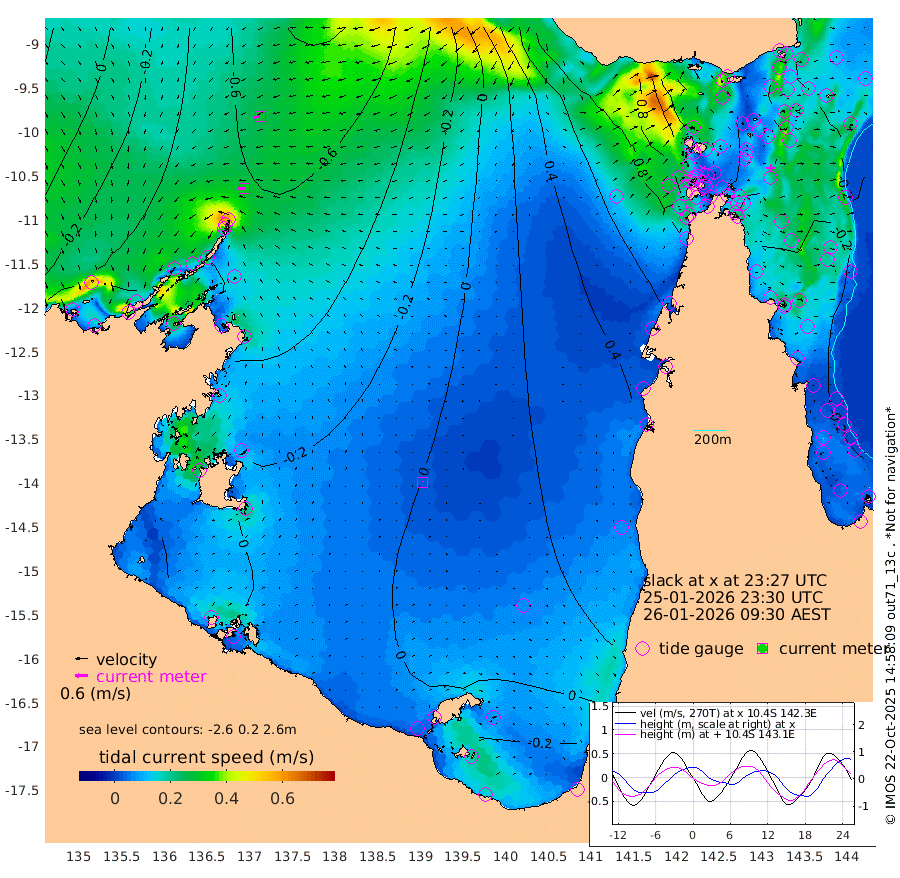 31cm/s -90T +3cm/s rms + 7cm/s -42T. ARA-GOC87 57m 2cm/s 11T +3cm/s rms + 2cm/s -2T. ARA-GOC87 60m 30cm/s -103T +2cm/s rms + 3cm/s 61T. ARA-GOC87 47m -11cm Daru -14cm Bobo Island -16cm Meer Island Barge -14cm Bramble Cay -5cm Unnamed Cay -10cm Pearce Cay -14cm Stephens Island -6cm Merrie England Shoals 2cm Mutacomal Reef -18cm Darnley Island Barge -13cm East Cay -12cm Yorke Island Barge -1cm Rennel Island -5cm Aureed Island 6cm Dungeness Reef 9cm Zagai Island 16cm Yam Island 21cm Dauan Island 23cm Saibai Island 24cm Phipi Reef 6cm Warrior Reef - West 55cm Mabuiag Island Barge -7cm Half Way Island 8cm Coconut Island 3cm Dugong Islet 17cm Poll Island 12cm Kirkcaldie Reef 52cm Suarji Island 15cm Sue Islet 99cm Hawkesbury Island 56cm Alert Patches 45cm Twin Island 84cm Badu Island 43cm St Pauls (Moa Island) 74cm Kubin (Moa Island) 59cm Ince Point 70cm Thursday Island 67cm Nardana Patches 80cm Turtle Head 93cm Round Island 99cm Goods Island 115cm Booby Island 118cm White Rocks Area 108cm Carpentaria 37cm Papou Point 137cm Bampfield Head 84cm Crab Island 107cm Red Wallis Island 85cm Packe Island 9cm Harrington Reef 106cm Herald Camp 9cm Sharp Point 67cm Red Island Point 67cm Possession Island 38cm Alpha Rock 27cm Frederick Point 6cm Wyborn Reef Light 10cm Tetley Island -3cm Triangle Reef 2cm Turtle Head Island -5cm Maclennan Cay -9cm Raine Island -7cm Mcsweeny Reef -7cm Collette Reef -8cm Shadwell Reef -11cm Hannibal Island -10cm Round Point 78cm Vrilya Point -4cm Cape Grenville -12cm Hicks Island -5cm Sir Charles Hardy Island -4cm Harvey Island -4cm Kay Reef -7cm Rocky Island -2cm Chapman Island -5cm Ham Reef -10cm Jubilee Reef -9cm Night Island -4cm Unnamed Reef No. 3 -9cm Morris Island -4cm 1st 3 Mile Opening -8cm Creech Reef -20cm Fife Island -15cm Eden Reef -8cm Stanley Island -13cm Normanby River -47cm Yabooma Island -65cm Hutchison River -53cm Elcho Island -50cm North West Crocodile Island -59cm Cape Wessel -68cm Stevens Island -96cm Guluwuru Island -52cm Hopeful Bay -53cm Auster Point -72cm Two Island Bay -118cm Cadell Strait -201cm Mallison Island -77cm Melville Bay (Gove Harbour) -79cm Truant Island -58cm Cape Arnhem -35cm Cape Grey -25cm Hawk Island -10cm Milner Bay (Groote Eylandt) -6cm Cape Beatrice 16cm West Island 21cm Centre Island -11cm Mornington Island -3cm West Wellesley Islands -3cm Bountiful Island -32cm Albert River Mouth -26cm Sweers Island -26cm Karumba -8cm Nassau River Offshore 7cm Christmas Creek 35cm Archer River 47cm Boyd Point 53cm Weipa (Humbug Point) 44cm Pennefather River 74cm Cullen Point