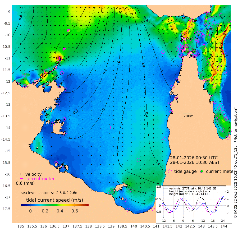 36cm/s -90T +3cm/s rms + 7cm/s -42T. ARA-GOC87 57m 14cm/s 175T +3cm/s rms + 2cm/s -2T. ARA-GOC87 60m 40cm/s -98T +2cm/s rms + 3cm/s 61T. ARA-GOC87 47m 70cm Daru 53cm Bobo Island 5cm Meer Island Barge 23cm Bramble Cay 56cm Unnamed Cay 50cm Pearce Cay 39cm Stephens Island 53cm Merrie England Shoals 80cm Mutacomal Reef 29cm Darnley Island Barge 10cm East Cay 49cm Yorke Island Barge 67cm Rennel Island 59cm Aureed Island 85cm Dungeness Reef 94cm Zagai Island 103cm Yam Island 112cm Dauan Island 102cm Saibai Island 118cm Phipi Reef 102cm Warrior Reef - West 120cm Mabuiag Island Barge 60cm Half Way Island 85cm Coconut Island 78cm Dugong Islet 100cm Poll Island 96cm Kirkcaldie Reef 139cm Suarji Island 95cm Sue Islet 133cm Hawkesbury Island 140cm Alert Patches 127cm Twin Island 130cm Badu Island 132cm St Pauls (Moa Island) 125cm Kubin (Moa Island) 132cm Ince Point 135cm Thursday Island 135cm Nardana Patches 137cm Turtle Head 134cm Round Island 132cm Goods Island 133cm Booby Island 139cm White Rocks Area 111cm Carpentaria 108cm Papou Point 153cm Bampfield Head 102cm Crab Island 131cm Red Wallis Island 133cm Packe Island 90cm Harrington Reef 138cm Herald Camp 39cm Sharp Point 109cm Red Island Point 127cm Possession Island 115cm Alpha Rock 109cm Frederick Point 84cm Wyborn Reef Light 91cm Tetley Island 26cm Triangle Reef 76cm Turtle Head Island 19cm Maclennan Cay 0cm Raine Island 51cm Mcsweeny Reef 43cm Collette Reef 19cm Shadwell Reef 40cm Hannibal Island 29cm Round Point 91cm Vrilya Point 29cm Cape Grenville 17cm Hicks Island 22cm Sir Charles Hardy Island 7cm Harvey Island 16cm Kay Reef 6cm Rocky Island 5cm Chapman Island 2cm Ham Reef 2cm Jubilee Reef 7cm Night Island 5cm Unnamed Reef No. 3 5cm Morris Island 8cm 1st 3 Mile Opening 5cm Creech Reef -1cm Fife Island -9cm Eden Reef 5cm Stanley Island -2cm Normanby River -123cm Yabooma Island -144cm Hutchison River -130cm Elcho Island -125cm North West Crocodile Island -107cm Cape Wessel -129cm Stevens Island -118cm Guluwuru Island -116cm Hopeful Bay -106cm Auster Point -126cm Two Island Bay -172cm Cadell Strait -172cm Mallison Island -100cm Melville Bay (Gove Harbour) -104cm Truant Island -69cm Cape Arnhem -47cm Cape Grey -32cm Hawk Island -23cm Milner Bay (Groote Eylandt) -12cm Cape Beatrice 15cm West Island 18cm Centre Island 11cm Mornington Island 20cm West Wellesley Islands 10cm Bountiful Island -26cm Albert River Mouth -32cm Sweers Island -15cm Karumba 26cm Nassau River Offshore 46cm Christmas Creek 57cm Archer River 68cm Boyd Point 71cm Weipa (Humbug Point) 62cm Pennefather River 88cm Cullen Point