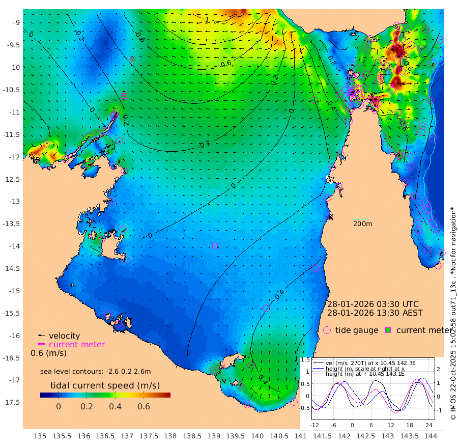 29cm/s -85T +3cm/s rms + 7cm/s -42T. ARA-GOC87 57m 13cm/s -118T +3cm/s rms + 2cm/s -2T. ARA-GOC87 60m 26cm/s -88T +2cm/s rms + 3cm/s 61T. ARA-GOC87 47m -38cm Daru -47cm Bobo Island -43cm Meer Island Barge -55cm Bramble Cay -56cm Unnamed Cay -48cm Pearce Cay -56cm Stephens Island -70cm Merrie England Shoals -50cm Mutacomal Reef -55cm Darnley Island Barge -43cm East Cay -47cm Yorke Island Barge -40cm Rennel Island -38cm Aureed Island -19cm Dungeness Reef 17cm Zagai Island 18cm Yam Island 95cm Dauan Island 77cm Saibai Island 83cm Phipi Reef 36cm Warrior Reef - West 66cm Mabuiag Island Barge -54cm Half Way Island -29cm Coconut Island -42cm Dugong Islet -7cm Poll Island -20cm Kirkcaldie Reef 36cm Suarji Island -10cm Sue Islet 77cm Hawkesbury Island 24cm Alert Patches 15cm Twin Island 84cm Badu Island 29cm St Pauls (Moa Island) 65cm Kubin (Moa Island) 40cm Ince Point 46cm Thursday Island 47cm Nardana Patches 67cm Turtle Head 77cm Round Island 78cm Goods Island 77cm Booby Island 75cm White Rocks Area 33cm Carpentaria 20cm Papou Point 89cm Bampfield Head 58cm Crab Island 71cm Red Wallis Island 66cm Packe Island -46cm Harrington Reef 94cm Herald Camp 6cm Sharp Point 50cm Red Island Point 41cm Possession Island 2cm Alpha Rock -9cm Frederick Point -42cm Wyborn Reef Light -34cm Tetley Island -26cm Triangle Reef -56cm Turtle Head Island -33cm Maclennan Cay -27cm Raine Island -49cm Mcsweeny Reef -49cm Collette Reef -37cm Shadwell Reef -61cm Hannibal Island -55cm Round Point 29cm Vrilya Point -53cm Cape Grenville -41cm Hicks Island -31cm Sir Charles Hardy Island -15cm Harvey Island -52cm Kay Reef -32cm Rocky Island -26cm Chapman Island -29cm Ham Reef -35cm Jubilee Reef -34cm Night Island -32cm Unnamed Reef No. 3 -38cm Morris Island -29cm 1st 3 Mile Opening -36cm Creech Reef -34cm Fife Island -47cm Eden Reef -46cm Stanley Island -52cm Normanby River 31cm Yabooma Island 30cm Hutchison River 24cm Elcho Island 27cm North West Crocodile Island -18cm Cape Wessel -5cm Stevens Island -37cm Guluwuru Island 6cm Hopeful Bay -8cm Auster Point -15cm Two Island Bay -15cm Cadell Strait -144cm Mallison Island -19cm Melville Bay (Gove Harbour) -24cm Truant Island -16cm Cape Arnhem -9cm Cape Grey -1cm Hawk Island -5cm Milner Bay (Groote Eylandt) 2cm Cape Beatrice 0cm West Island -2cm Centre Island 37cm Mornington Island 36cm West Wellesley Islands 76cm Bountiful Island 77cm Albert River Mouth 68cm Sweers Island 83cm Karumba 46cm Nassau River Offshore 48cm Christmas Creek 41cm Archer River 43cm Boyd Point 61cm Weipa (Humbug Point) 10cm Pennefather River 49cm Cullen Point