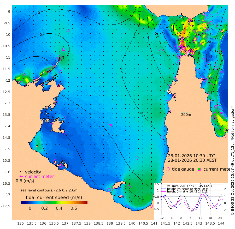 15cm/s 4T +3cm/s rms + 7cm/s -42T. ARA-GOC87 57m 18cm/s 6T +3cm/s rms + 2cm/s -2T. ARA-GOC87 60m 15cm/s 13T +2cm/s rms + 3cm/s 61T. ARA-GOC87 47m 37cm Daru 38cm Bobo Island 6cm Meer Island Barge 27cm Bramble Cay 43cm Unnamed Cay 29cm Pearce Cay 33cm Stephens Island 51cm Merrie England Shoals 52cm Mutacomal Reef 28cm Darnley Island Barge 12cm East Cay 33cm Yorke Island Barge 33cm Rennel Island 28cm Aureed Island 21cm Dungeness Reef 2cm Zagai Island 10cm Yam Island -65cm Dauan Island -45cm Saibai Island -48cm Phipi Reef -10cm Warrior Reef - West -47cm Mabuiag Island Barge 42cm Half Way Island 26cm Coconut Island 39cm Dugong Islet 18cm Poll Island 29cm Kirkcaldie Reef -10cm Suarji Island 22cm Sue Islet -96cm Hawkesbury Island -15cm Alert Patches -4cm Twin Island -105cm Badu Island -11cm St Pauls (Moa Island) -76cm Kubin (Moa Island) -34cm Ince Point -48cm Thursday Island -46cm Nardana Patches -79cm Turtle Head -82cm Round Island -111cm Goods Island -124cm Booby Island -109cm White Rocks Area -90cm Carpentaria -6cm Papou Point -129cm Bampfield Head -99cm Crab Island -109cm Red Wallis Island -86cm Packe Island 44cm Harrington Reef -101cm Herald Camp 9cm Sharp Point -53cm Red Island Point -34cm Possession Island 14cm Alpha Rock 15cm Frederick Point 40cm Wyborn Reef Light 36cm Tetley Island -1cm Triangle Reef 37cm Turtle Head Island 4cm Maclennan Cay -13cm Raine Island 31cm Mcsweeny Reef 29cm Collette Reef 5cm Shadwell Reef 36cm Hannibal Island 26cm Round Point -83cm Vrilya Point 26cm Cape Grenville 13cm Hicks Island 3cm Sir Charles Hardy Island 7cm Harvey Island 18cm Kay Reef -2cm Rocky Island -12cm Chapman Island -8cm Ham Reef -4cm Jubilee Reef -1cm Night Island -7cm Unnamed Reef No. 3 -1cm Morris Island -15cm 1st 3 Mile Opening -5cm Creech Reef -4cm Fife Island -4cm Eden Reef 5cm Stanley Island 15cm Normanby River -53cm Yabooma Island -71cm Hutchison River -56cm Elcho Island -45cm North West Crocodile Island -20cm Cape Wessel -30cm Stevens Island -20cm Guluwuru Island -33cm Hopeful Bay -29cm Auster Point -22cm Two Island Bay -42cm Cadell Strait 35cm Mallison Island -24cm Melville Bay (Gove Harbour) -27cm Truant Island -17cm Cape Arnhem 5cm Cape Grey 14cm Hawk Island 42cm Milner Bay (Groote Eylandt) 42cm Cape Beatrice 71cm West Island 72cm Centre Island 48cm Mornington Island 50cm West Wellesley Islands 42cm Bountiful Island 51cm Albert River Mouth 65cm Sweers Island 51cm Karumba 13cm Nassau River Offshore -22cm Christmas Creek -55cm Archer River -69cm Boyd Point -84cm Weipa (Humbug Point) -57cm Pennefather River -83cm Cullen Point