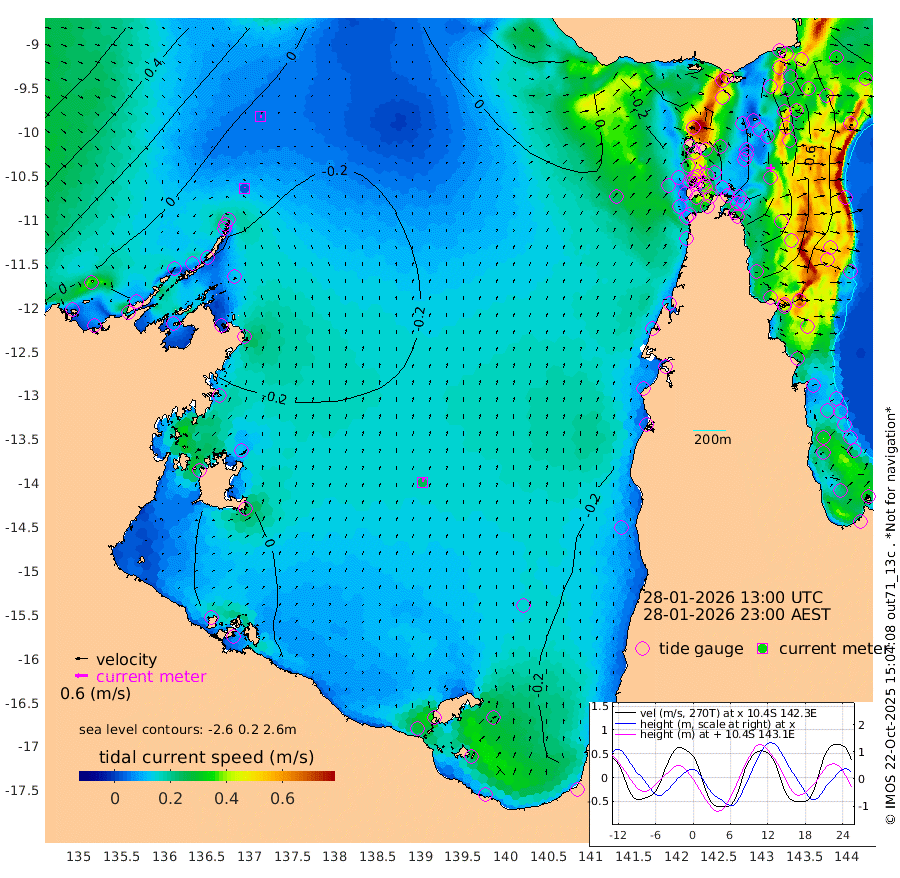 3cm/s 17T +3cm/s rms + 7cm/s -42T. ARA-GOC87 57m 25cm/s 11T +3cm/s rms + 2cm/s -2T. ARA-GOC87 60m 5cm/s 97T +2cm/s rms + 3cm/s 61T. ARA-GOC87 47m -36cm Daru -41cm Bobo Island -80cm Meer Island Barge -69cm Bramble Cay -52cm Unnamed Cay -50cm Pearce Cay -62cm Stephens Island -49cm Merrie England Shoals -26cm Mutacomal Reef -70cm Darnley Island Barge -80cm East Cay -52cm Yorke Island Barge -43cm Rennel Island -46cm Aureed Island -32cm Dungeness Reef -7cm Zagai Island 0cm Yam Island -12cm Dauan Island -4cm Saibai Island -18cm Phipi Reef -15cm Warrior Reef - West 18cm Mabuiag Island Barge -37cm Half Way Island -24cm Coconut Island -31cm Dugong Islet -6cm Poll Island -11cm Kirkcaldie Reef 1cm Suarji Island -8cm Sue Islet 0cm Hawkesbury Island 6cm Alert Patches 10cm Twin Island 0cm Badu Island 16cm St Pauls (Moa Island) -3cm Kubin (Moa Island) 10cm Ince Point 11cm Thursday Island 10cm Nardana Patches -9cm Turtle Head -8cm Round Island -17cm Goods Island -12cm Booby Island -1cm White Rocks Area -2cm Carpentaria 15cm Papou Point -30cm Bampfield Head -3cm Crab Island -2cm Red Wallis Island -7cm Packe Island -22cm Harrington Reef -24cm Herald Camp 14cm Sharp Point 6cm Red Island Point 0cm Possession Island 12cm Alpha Rock -4cm Frederick Point -21cm Wyborn Reef Light -13cm Tetley Island -62cm Triangle Reef -27cm Turtle Head Island -74cm Maclennan Cay -80cm Raine Island -52cm Mcsweeny Reef -58cm Collette Reef -72cm Shadwell Reef -64cm Hannibal Island -67cm Round Point 6cm Vrilya Point -69cm Cape Grenville -76cm Hicks Island -90cm Sir Charles Hardy Island -23cm Harvey Island -78cm Kay Reef -83cm Rocky Island -83cm Chapman Island -82cm Ham Reef -82cm Jubilee Reef -73cm Night Island -80cm Unnamed Reef No. 3 -86cm Morris Island -88cm 1st 3 Mile Opening -85cm Creech Reef -82cm Fife Island -104cm Eden Reef -87cm Stanley Island -87cm Normanby River 0cm Yabooma Island -24cm Hutchison River -8cm Elcho Island 5cm North West Crocodile Island -11cm Cape Wessel 4cm Stevens Island -55cm Guluwuru Island -7cm Hopeful Bay -8cm Auster Point -8cm Two Island Bay -27cm Cadell Strait -99cm Mallison Island -39cm Melville Bay (Gove Harbour) -40cm Truant Island -32cm Cape Arnhem -14cm Cape Grey -7cm Hawk Island 28cm Milner Bay (Groote Eylandt) 22cm Cape Beatrice 47cm West Island 47cm Centre Island -6cm Mornington Island -3cm West Wellesley Islands -18cm Bountiful Island 0cm Albert River Mouth 13cm Sweers Island -1cm Karumba -26cm Nassau River Offshore -46cm Christmas Creek -41cm Archer River -39cm Boyd Point -48cm Weipa (Humbug Point) -6cm Pennefather River -12cm Cullen Point