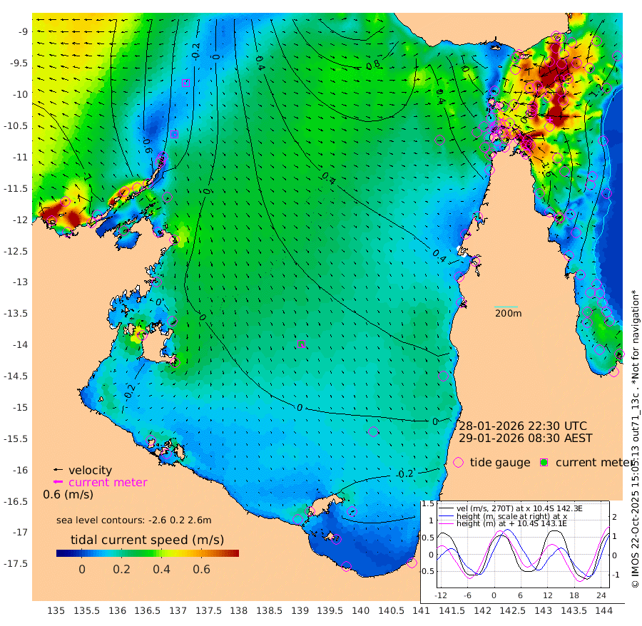 7cm/s 166T +3cm/s rms + 7cm/s -42T. ARA-GOC87 57m 28cm/s 161T +3cm/s rms + 2cm/s -2T. ARA-GOC87 60m 11cm/s -128T +2cm/s rms + 3cm/s 61T. ARA-GOC87 47m 149cm Daru 146cm Bobo Island 112cm Meer Island Barge 136cm Bramble Cay 160cm Unnamed Cay 151cm Pearce Cay 152cm Stephens Island 167cm Merrie England Shoals 162cm Mutacomal Reef 144cm Darnley Island Barge 118cm East Cay 145cm Yorke Island Barge 152cm Rennel Island 143cm Aureed Island 140cm Dungeness Reef 95cm Zagai Island 99cm Yam Island 38cm Dauan Island 36cm Saibai Island 56cm Phipi Reef 91cm Warrior Reef - West 47cm Mabuiag Island Barge 155cm Half Way Island 145cm Coconut Island 157cm Dugong Islet 126cm Poll Island 138cm Kirkcaldie Reef 111cm Suarji Island 121cm Sue Islet 61cm Hawkesbury Island 119cm Alert Patches 116cm Twin Island 50cm Badu Island 103cm St Pauls (Moa Island) 69cm Kubin (Moa Island) 93cm Ince Point 87cm Thursday Island 86cm Nardana Patches 79cm Turtle Head 62cm Round Island 66cm Goods Island 59cm Booby Island 63cm White Rocks Area 67cm Carpentaria 89cm Papou Point 74cm Bampfield Head 43cm Crab Island 59cm Red Wallis Island 76cm Packe Island 167cm Harrington Reef 57cm Herald Camp 25cm Sharp Point 60cm Red Island Point 90cm Possession Island 114cm Alpha Rock 134cm Frederick Point 155cm Wyborn Reef Light 148cm Tetley Island 101cm Triangle Reef 169cm Turtle Head Island 111cm Maclennan Cay 88cm Raine Island 149cm Mcsweeny Reef 142cm Collette Reef 111cm Shadwell Reef 156cm Hannibal Island 141cm Round Point 51cm Vrilya Point 136cm Cape Grenville 120cm Hicks Island 123cm Sir Charles Hardy Island 40cm Harvey Island 126cm Kay Reef 100cm Rocky Island 93cm Chapman Island 91cm Ham Reef 99cm Jubilee Reef 96cm Night Island 96cm Unnamed Reef No. 3 107cm Morris Island 102cm 1st 3 Mile Opening 105cm Creech Reef 99cm Fife Island 116cm Eden Reef 115cm Stanley Island 118cm Normanby River -112cm Yabooma Island -111cm Hutchison River -112cm Elcho Island -117cm North West Crocodile Island -51cm Cape Wessel -88cm Stevens Island -12cm Guluwuru Island -86cm Hopeful Bay -62cm Auster Point -70cm Two Island Bay -87cm Cadell Strait 65cm Mallison Island -27cm Melville Bay (Gove Harbour) -23cm Truant Island -13cm Cape Arnhem -19cm Cape Grey -24cm Hawk Island -43cm Milner Bay (Groote Eylandt) -35cm Cape Beatrice -34cm West Island -33cm Centre Island -37cm Mornington Island -29cm West Wellesley Islands -69cm Bountiful Island -117cm Albert River Mouth -127cm Sweers Island -111cm Karumba -10cm Nassau River Offshore 24cm Christmas Creek 37cm Archer River 46cm Boyd Point 37cm Weipa (Humbug Point) 50cm Pennefather River 40cm Cullen Point
