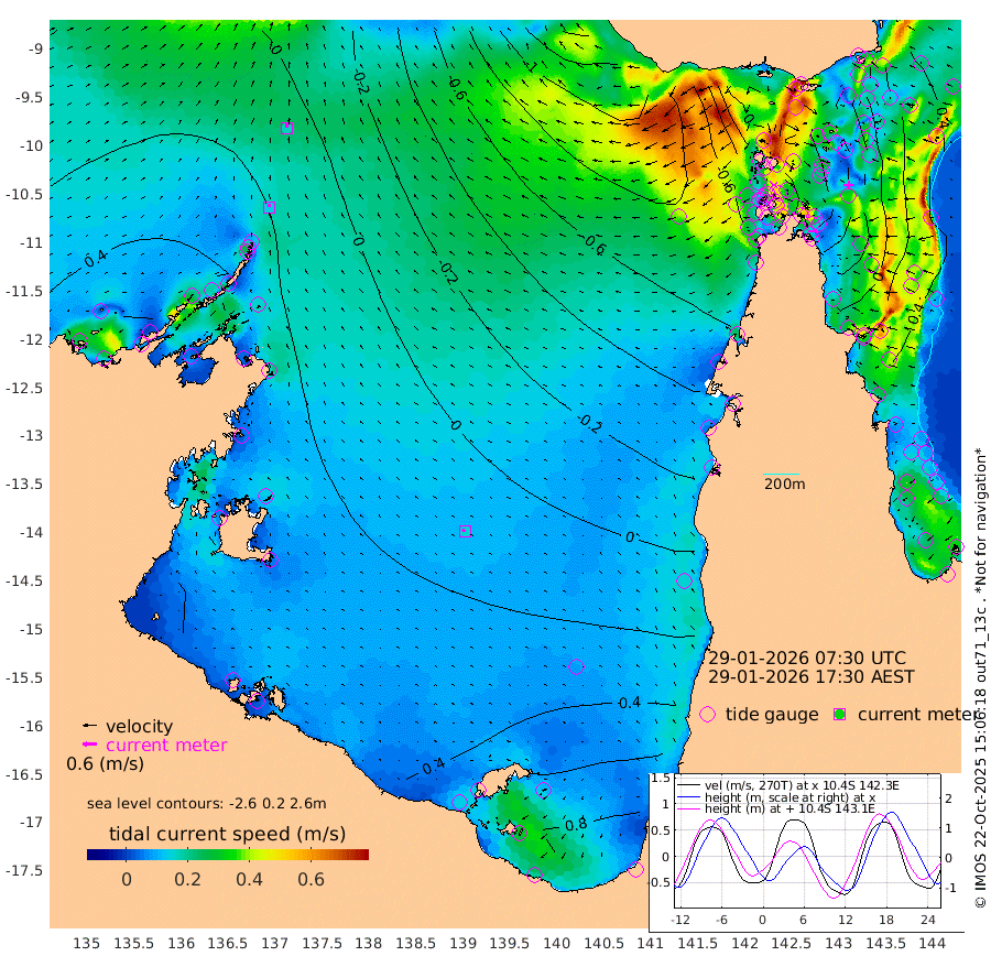 14cm/s -20T +3cm/s rms + 7cm/s -42T. ARA-GOC87 57m 15cm/s -69T +3cm/s rms + 2cm/s -2T. ARA-GOC87 60m 17cm/s 3T +2cm/s rms + 3cm/s 61T. ARA-GOC87 47m -43cm Daru -32cm Bobo Island 19cm Meer Island Barge 4cm Bramble Cay -24cm Unnamed Cay -30cm Pearce Cay -13cm Stephens Island -24cm Merrie England Shoals -50cm Mutacomal Reef -3cm Darnley Island Barge 21cm East Cay -24cm Yorke Island Barge -37cm Rennel Island -32cm Aureed Island -53cm Dungeness Reef -70cm Zagai Island -74cm Yam Island -76cm Dauan Island -71cm Saibai Island -63cm Phipi Reef -67cm Warrior Reef - West -103cm Mabuiag Island Barge -40cm Half Way Island -62cm Coconut Island -52cm Dugong Islet -77cm Poll Island -71cm Kirkcaldie Reef -96cm Suarji Island -72cm Sue Islet -122cm Hawkesbury Island -112cm Alert Patches -107cm Twin Island -122cm Badu Island -113cm St Pauls (Moa Island) -110cm Kubin (Moa Island) -113cm Ince Point -119cm Thursday Island -117cm Nardana Patches -112cm Turtle Head -102cm Round Island -114cm Goods Island -126cm Booby Island -127cm White Rocks Area -123cm Carpentaria -96cm Papou Point -121cm Bampfield Head -105cm Crab Island -125cm Red Wallis Island -113cm Packe Island -67cm Harrington Reef -94cm Herald Camp -31cm Sharp Point -96cm Red Island Point -98cm Possession Island -94cm Alpha Rock -89cm Frederick Point -63cm Wyborn Reef Light -71cm Tetley Island -2cm Triangle Reef -70cm Turtle Head Island 10cm Maclennan Cay 24cm Raine Island -26cm Mcsweeny Reef -14cm Collette Reef 9cm Shadwell Reef -10cm Hannibal Island -1cm Round Point -111cm Vrilya Point 4cm Cape Grenville 14cm Hicks Island 20cm Sir Charles Hardy Island 3cm Harvey Island 17cm Kay Reef 26cm Rocky Island 26cm Chapman Island 27cm Ham Reef 23cm Jubilee Reef 18cm Night Island 23cm Unnamed Reef No. 3 26cm Morris Island 21cm 1st 3 Mile Opening 23cm Creech Reef 25cm Fife Island 41cm Eden Reef 27cm Stanley Island 33cm Normanby River 50cm Yabooma Island 63cm Hutchison River 57cm Elcho Island 55cm North West Crocodile Island 30cm Cape Wessel 41cm Stevens Island 48cm Guluwuru Island 53cm Hopeful Bay 32cm Auster Point 41cm Two Island Bay 62cm Cadell Strait 69cm Mallison Island 41cm Melville Bay (Gove Harbour) 35cm Truant Island 28cm Cape Arnhem 32cm Cape Grey 38cm Hawk Island 36cm Milner Bay (Groote Eylandt) 40cm Cape Beatrice 34cm West Island 35cm Centre Island 90cm Mornington Island 82cm West Wellesley Islands 128cm Bountiful Island 156cm Albert River Mouth 159cm Sweers Island 152cm Karumba 66cm Nassau River Offshore 32cm Christmas Creek -15cm Archer River -40cm Boyd Point -31cm Weipa (Humbug Point) -72cm Pennefather River -81cm Cullen Point