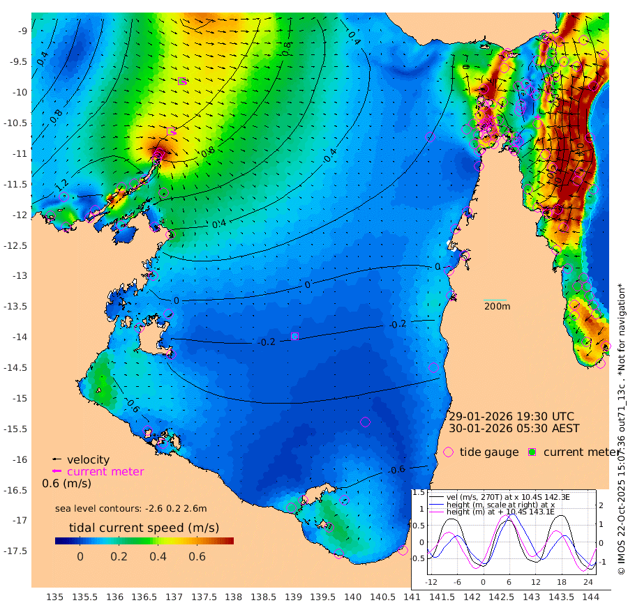 42cm/s 118T +3cm/s rms + 7cm/s -42T. ARA-GOC87 57m 10cm/s 141T +3cm/s rms + 2cm/s -2T. ARA-GOC87 60m 39cm/s 114T +2cm/s rms + 3cm/s 61T. ARA-GOC87 47m -51cm Daru -31cm Bobo Island 45cm Meer Island Barge 22cm Bramble Cay -19cm Unnamed Cay -11cm Pearce Cay 1cm Stephens Island -13cm Merrie England Shoals -54cm Mutacomal Reef 11cm Darnley Island Barge 41cm East Cay -18cm Yorke Island Barge -33cm Rennel Island -29cm Aureed Island -57cm Dungeness Reef -86cm Zagai Island -94cm Yam Island -96cm Dauan Island -91cm Saibai Island -108cm Phipi Reef -97cm Warrior Reef - West -77cm Mabuiag Island Barge -29cm Half Way Island -54cm Coconut Island -48cm Dugong Islet -76cm Poll Island -73cm Kirkcaldie Reef -107cm Suarji Island -75cm Sue Islet 0cm Hawkesbury Island -85cm Alert Patches -84cm Twin Island -13cm Badu Island -98cm St Pauls (Moa Island) -27cm Kubin (Moa Island) -71cm Ince Point -57cm Thursday Island -62cm Nardana Patches -33cm Turtle Head -27cm Round Island 12cm Goods Island 32cm Booby Island 17cm White Rocks Area 43cm Carpentaria -75cm Papou Point 26cm Bampfield Head 28cm Crab Island 20cm Red Wallis Island -14cm Packe Island -59cm Harrington Reef -10cm Herald Camp -45cm Sharp Point -29cm Red Island Point -62cm Possession Island -83cm Alpha Rock -73cm Frederick Point -53cm Wyborn Reef Light -62cm Tetley Island 23cm Triangle Reef -32cm Turtle Head Island 33cm Maclennan Cay 59cm Raine Island -12cm Mcsweeny Reef -2cm Collette Reef 31cm Shadwell Reef 3cm Hannibal Island 22cm Round Point 38cm Vrilya Point 22cm Cape Grenville 31cm Hicks Island 37cm Sir Charles Hardy Island 7cm Harvey Island 43cm Kay Reef 50cm Rocky Island 59cm Chapman Island 59cm Ham Reef 56cm Jubilee Reef 43cm Night Island 58cm Unnamed Reef No. 3 56cm Morris Island 59cm 1st 3 Mile Opening 57cm Creech Reef 51cm Fife Island 80cm Eden Reef 57cm Stanley Island 60cm Normanby River 129cm Yabooma Island 158cm Hutchison River 137cm Elcho Island 120cm North West Crocodile Island 110cm Cape Wessel 123cm Stevens Island 117cm Guluwuru Island 115cm Hopeful Bay 112cm Auster Point 119cm Two Island Bay 158cm Cadell Strait 151cm Mallison Island 95cm Melville Bay (Gove Harbour) 106cm Truant Island 63cm Cape Arnhem 21cm Cape Grey -6cm Hawk Island -43cm Milner Bay (Groote Eylandt) -54cm Cape Beatrice -104cm West Island -104cm Centre Island -116cm Mornington Island -119cm West Wellesley Islands -135cm Bountiful Island -144cm Albert River Mouth -152cm Sweers Island -151cm Karumba -84cm Nassau River Offshore -47cm Christmas Creek 6cm Archer River 17cm Boyd Point 20cm Weipa (Humbug Point) 28cm Pennefather River 24cm Cullen Point