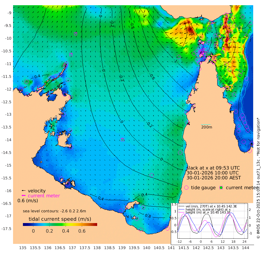 19cm/s 23T +3cm/s rms + 7cm/s -42T. ARA-GOC87 57m 20cm/s -31T +3cm/s rms + 2cm/s -2T. ARA-GOC87 60m 26cm/s 33T +2cm/s rms + 3cm/s 61T. ARA-GOC87 47m 28cm Daru 42cm Bobo Island 54cm Meer Island Barge 64cm Bramble Cay 53cm Unnamed Cay 46cm Pearce Cay 58cm Stephens Island 63cm Merrie England Shoals 36cm Mutacomal Reef 57cm Darnley Island Barge 61cm East Cay 41cm Yorke Island Barge 35cm Rennel Island 36cm Aureed Island 8cm Dungeness Reef -41cm Zagai Island -42cm Yam Island -115cm Dauan Island -104cm Saibai Island -82cm Phipi Reef -49cm Warrior Reef - West -123cm Mabuiag Island Barge 38cm Half Way Island 6cm Coconut Island 24cm Dugong Islet -21cm Poll Island -13cm Kirkcaldie Reef -61cm Suarji Island -24cm Sue Islet -172cm Hawkesbury Island -81cm Alert Patches -69cm Twin Island -174cm Badu Island -86cm St Pauls (Moa Island) -140cm Kubin (Moa Island) -105cm Ince Point -122cm Thursday Island -119cm Nardana Patches -139cm Turtle Head -140cm Round Island -167cm Goods Island -191cm Booby Island -175cm White Rocks Area -175cm Carpentaria -72cm Papou Point -187cm Bampfield Head -163cm Crab Island -181cm Red Wallis Island -148cm Packe Island 21cm Harrington Reef -159cm Herald Camp -21cm Sharp Point -117cm Red Island Point -90cm Possession Island -50cm Alpha Rock -33cm Frederick Point 18cm Wyborn Reef Light 4cm Tetley Island 28cm Triangle Reef 16cm Turtle Head Island 43cm Maclennan Cay 39cm Raine Island 43cm Mcsweeny Reef 49cm Collette Reef 43cm Shadwell Reef 63cm Hannibal Island 63cm Round Point -158cm Vrilya Point 60cm Cape Grenville 57cm Hicks Island 50cm Sir Charles Hardy Island 19cm Harvey Island 63cm Kay Reef 51cm Rocky Island 45cm Chapman Island 42cm Ham Reef 46cm Jubilee Reef 45cm Night Island 43cm Unnamed Reef No. 3 54cm Morris Island 39cm 1st 3 Mile Opening 47cm Creech Reef 52cm Fife Island 70cm Eden Reef 59cm Stanley Island 76cm Normanby River 43cm Yabooma Island 52cm Hutchison River 47cm Elcho Island 47cm North West Crocodile Island 39cm Cape Wessel 53cm Stevens Island 55cm Guluwuru Island 55cm Hopeful Bay 41cm Auster Point 47cm Two Island Bay 63cm Cadell Strait 102cm Mallison Island 48cm Melville Bay (Gove Harbour) 43cm Truant Island 33cm Cape Arnhem 44cm Cape Grey 53cm Hawk Island 64cm Milner Bay (Groote Eylandt) 63cm Cape Beatrice 69cm West Island 70cm Centre Island 102cm Mornington Island 100cm West Wellesley Islands 128cm Bountiful Island 158cm Albert River Mouth 178cm Sweers Island 151cm Karumba 59cm Nassau River Offshore 6cm Christmas Creek -53cm Archer River -86cm Boyd Point -87cm Weipa (Humbug Point) -99cm Pennefather River -136cm Cullen Point