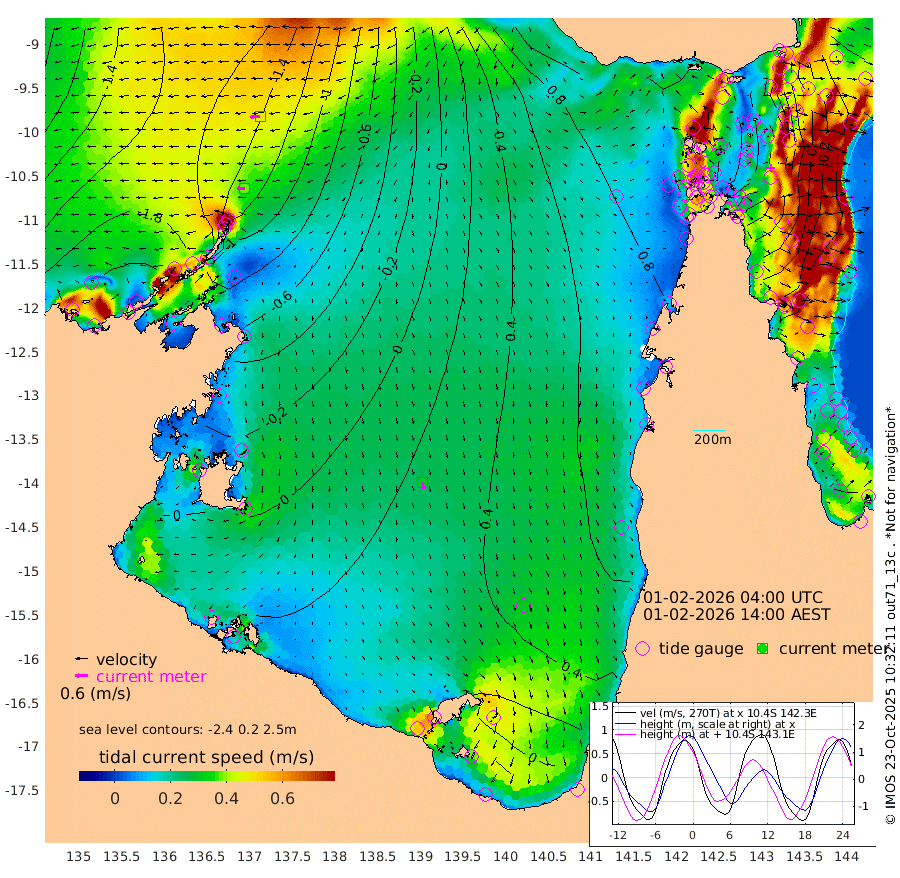 38cm/s -89T +3cm/s rms + 7cm/s -42T. ARA-GOC87 57m 31cm/s 176T +3cm/s rms + 2cm/s -2T. ARA-GOC87 60m 48cm/s -95T +2cm/s rms + 3cm/s 61T. ARA-GOC87 47m 63cm Daru 34cm Bobo Island -31cm Meer Island Barge -24cm Bramble Cay 16cm Unnamed Cay 16cm Pearce Cay 3cm Stephens Island 3cm Merrie England Shoals 51cm Mutacomal Reef -2cm Darnley Island Barge -33cm East Cay 29cm Yorke Island Barge 41cm Rennel Island 38cm Aureed Island 80cm Dungeness Reef 131cm Zagai Island 140cm Yam Island 200cm Dauan Island 183cm Saibai Island 188cm Phipi Reef 156cm Warrior Reef - West 165cm Mabuiag Island Barge 37cm Half Way Island 73cm Coconut Island 62cm Dugong Islet 106cm Poll Island 107cm Kirkcaldie Reef 150cm Suarji Island 110cm Sue Islet 141cm Hawkesbury Island 150cm Alert Patches 141cm Twin Island 154cm Badu Island 164cm St Pauls (Moa Island) 144cm Kubin (Moa Island) 154cm Ince Point 153cm Thursday Island 155cm Nardana Patches 151cm Turtle Head 134cm Round Island 132cm Goods Island 130cm Booby Island 120cm White Rocks Area 106cm Carpentaria 132cm Papou Point 121cm Bampfield Head 116cm Crab Island 132cm Red Wallis Island 142cm Packe Island 68cm Harrington Reef 148cm Herald Camp 58cm Sharp Point 130cm Red Island Point 130cm Possession Island 120cm Alpha Rock 111cm Frederick Point 58cm Wyborn Reef Light 73cm Tetley Island -3cm Triangle Reef 47cm Turtle Head Island -16cm Maclennan Cay -36cm Raine Island 18cm Mcsweeny Reef 6cm Collette Reef -16cm Shadwell Reef -6cm Hannibal Island -25cm Round Point 105cm Vrilya Point -22cm Cape Grenville -23cm Hicks Island -16cm Sir Charles Hardy Island -5cm Harvey Island -41cm Kay Reef -37cm Rocky Island -43cm Chapman Island -39cm Ham Reef -36cm Jubilee Reef -29cm Night Island -38cm Unnamed Reef No. 3 -42cm Morris Island -33cm 1st 3 Mile Opening -35cm Creech Reef -36cm Fife Island -67cm Eden Reef -46cm Stanley Island -61cm Normanby River -214cm Yabooma Island -241cm Hutchison River -219cm Elcho Island -205cm North West Crocodile Island -163cm Cape Wessel -209cm Stevens Island -140cm Guluwuru Island -199cm Hopeful Bay -175cm Auster Point -179cm Two Island Bay -213cm Cadell Strait -145cm Mallison Island -130cm Melville Bay (Gove Harbour) -137cm Truant Island -84cm Cape Arnhem -63cm Cape Grey -52cm Hawk Island -45cm Milner Bay (Groote Eylandt) -25cm Cape Beatrice 9cm West Island 7cm Centre Island 31cm Mornington Island 31cm West Wellesley Islands 17cm Bountiful Island -11cm Albert River Mouth -40cm Sweers Island 10cm Karumba 61cm Nassau River Offshore 86cm Christmas Creek 75cm Archer River 87cm Boyd Point 86cm Weipa (Humbug Point) 77cm Pennefather River 104cm Cullen Point