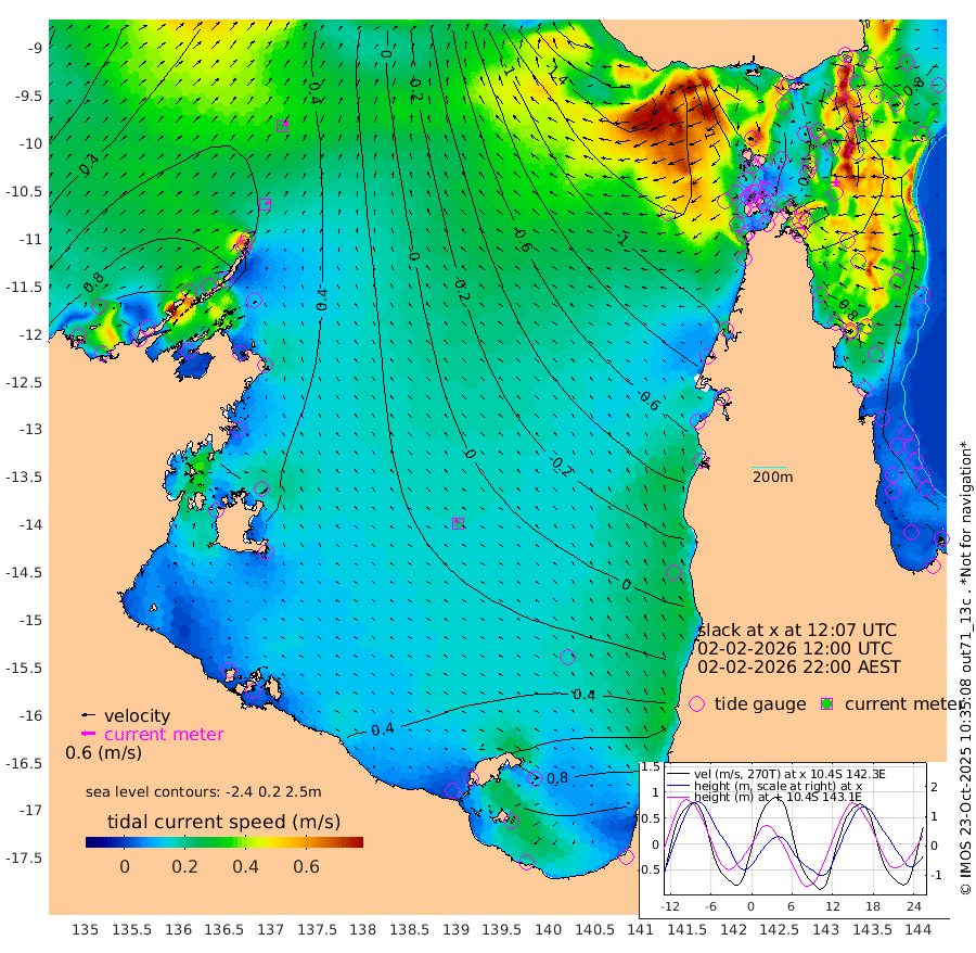 20cm/s 64T +3cm/s rms + 7cm/s -42T. ARA-GOC87 57m 21cm/s -40T +3cm/s rms + 2cm/s -2T. ARA-GOC87 60m 30cm/s 58T +2cm/s rms + 3cm/s 61T. ARA-GOC87 47m 47cm Daru 63cm Bobo Island 57cm Meer Island Barge 74cm Bramble Cay 64cm Unnamed Cay 72cm Pearce Cay 69cm Stephens Island 74cm Merrie England Shoals 53cm Mutacomal Reef 62cm Darnley Island Barge 66cm East Cay 51cm Yorke Island Barge 52cm Rennel Island 57cm Aureed Island 32cm Dungeness Reef -17cm Zagai Island -26cm Yam Island -79cm Dauan Island -83cm Saibai Island -42cm Phipi Reef -19cm Warrior Reef - West -99cm Mabuiag Island Barge 50cm Half Way Island 32cm Coconut Island 37cm Dugong Islet 4cm Poll Island 3cm Kirkcaldie Reef -26cm Suarji Island -11cm Sue Islet -153cm Hawkesbury Island -50cm Alert Patches -42cm Twin Island -134cm Badu Island -57cm St Pauls (Moa Island) -115cm Kubin (Moa Island) -77cm Ince Point -95cm Thursday Island -91cm Nardana Patches -105cm Turtle Head -123cm Round Island -135cm Goods Island -168cm Booby Island -144cm White Rocks Area -182cm Carpentaria -52cm Papou Point -174cm Bampfield Head -144cm Crab Island -157cm Red Wallis Island -118cm Packe Island 41cm Harrington Reef -158cm Herald Camp -18cm Sharp Point -95cm Red Island Point -70cm Possession Island -33cm Alpha Rock -8cm Frederick Point 38cm Wyborn Reef Light 25cm Tetley Island 38cm Triangle Reef 35cm Turtle Head Island 46cm Maclennan Cay 45cm Raine Island 58cm Mcsweeny Reef 60cm Collette Reef 49cm Shadwell Reef 73cm Hannibal Island 77cm Round Point -150cm Vrilya Point 64cm Cape Grenville 61cm Hicks Island 49cm Sir Charles Hardy Island 19cm Harvey Island 63cm Kay Reef 54cm Rocky Island 54cm Chapman Island 43cm Ham Reef 48cm Jubilee Reef 50cm Night Island 47cm Unnamed Reef No. 3 58cm Morris Island 43cm 1st 3 Mile Opening 50cm Creech Reef 64cm Fife Island 73cm Eden Reef 59cm Stanley Island 76cm Normanby River 103cm Yabooma Island 129cm Hutchison River 109cm Elcho Island 104cm North West Crocodile Island 71cm Cape Wessel 111cm Stevens Island 81cm Guluwuru Island 103cm Hopeful Bay 82cm Auster Point 76cm Two Island Bay 124cm Cadell Strait 104cm Mallison Island 82cm Melville Bay (Gove Harbour) 77cm Truant Island 57cm Cape Arnhem 57cm Cape Grey 65cm Hawk Island 66cm Milner Bay (Groote Eylandt) 65cm Cape Beatrice 54cm West Island 54cm Centre Island 109cm Mornington Island 109cm West Wellesley Islands 142cm Bountiful Island 189cm Albert River Mouth 208cm Sweers Island 175cm Karumba 75cm Nassau River Offshore 19cm Christmas Creek -38cm Archer River -78cm Boyd Point -72cm Weipa (Humbug Point) -88cm Pennefather River -133cm Cullen Point