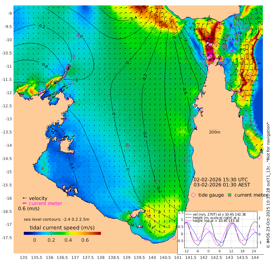 20cm/s 35T +3cm/s rms + 7cm/s -42T. ARA-GOC87 57m 29cm/s 11T +3cm/s rms + 2cm/s -2T. ARA-GOC87 60m 23cm/s 40T +2cm/s rms + 3cm/s 61T. ARA-GOC87 47m 21cm Daru 19cm Bobo Island -46cm Meer Island Barge -37cm Bramble Cay -8cm Unnamed Cay -5cm Pearce Cay -13cm Stephens Island -14cm Merrie England Shoals 11cm Mutacomal Reef -15cm Darnley Island Barge -54cm East Cay 6cm Yorke Island Barge 0cm Rennel Island 14cm Aureed Island 15cm Dungeness Reef 46cm Zagai Island 30cm Yam Island 7cm Dauan Island 16cm Saibai Island 7cm Phipi Reef 34cm Warrior Reef - West -7cm Mabuiag Island Barge 5cm Half Way Island 23cm Coconut Island 13cm Dugong Islet 29cm Poll Island 18cm Kirkcaldie Reef 39cm Suarji Island 32cm Sue Islet -145cm Hawkesbury Island 7cm Alert Patches 15cm Twin Island -110cm Badu Island 29cm St Pauls (Moa Island) -85cm Kubin (Moa Island) -16cm Ince Point -38cm Thursday Island -31cm Nardana Patches -83cm Turtle Head -95cm Round Island -142cm Goods Island -162cm Booby Island -149cm White Rocks Area -113cm Carpentaria 14cm Papou Point -149cm Bampfield Head -136cm Crab Island -151cm Red Wallis Island -115cm Packe Island 28cm Harrington Reef -144cm Herald Camp 24cm Sharp Point -81cm Red Island Point -20cm Possession Island 25cm Alpha Rock 22cm Frederick Point 23cm Wyborn Reef Light 27cm Tetley Island -39cm Triangle Reef 16cm Turtle Head Island -49cm Maclennan Cay -69cm Raine Island -5cm Mcsweeny Reef -17cm Collette Reef -45cm Shadwell Reef -19cm Hannibal Island -42cm Round Point -125cm Vrilya Point -43cm Cape Grenville -46cm Hicks Island -62cm Sir Charles Hardy Island -11cm Harvey Island -62cm Kay Reef -65cm Rocky Island -77cm Chapman Island -72cm Ham Reef -65cm Jubilee Reef -53cm Night Island -73cm Unnamed Reef No. 3 -67cm Morris Island -67cm 1st 3 Mile Opening -67cm Creech Reef -55cm Fife Island -86cm Eden Reef -71cm Stanley Island -71cm Normanby River -80cm Yabooma Island -85cm Hutchison River -71cm Elcho Island -70cm North West Crocodile Island -9cm Cape Wessel -37cm Stevens Island 7cm Guluwuru Island -48cm Hopeful Bay -21cm Auster Point -22cm Two Island Bay -42cm Cadell Strait 41cm Mallison Island 9cm Melville Bay (Gove Harbour) 11cm Truant Island 21cm Cape Arnhem 39cm Cape Grey 42cm Hawk Island 79cm Milner Bay (Groote Eylandt) 64cm Cape Beatrice 97cm West Island 95cm Centre Island 55cm Mornington Island 55cm West Wellesley Islands 46cm Bountiful Island 65cm Albert River Mouth 105cm Sweers Island 52cm Karumba -15cm Nassau River Offshore -62cm Christmas Creek -102cm Archer River -99cm Boyd Point -124cm Weipa (Humbug Point) -90cm Pennefather River -120cm Cullen Point
