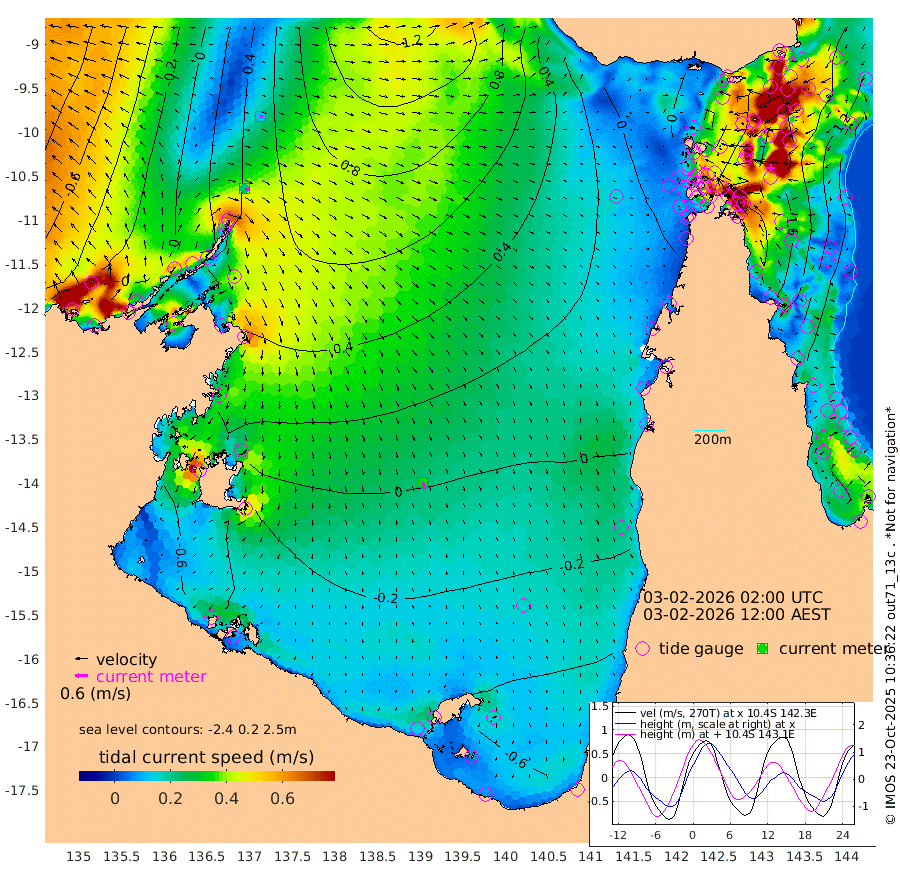 22cm/s 111T +3cm/s rms + 7cm/s -42T. ARA-GOC87 57m 34cm/s 166T +3cm/s rms + 2cm/s -2T. ARA-GOC87 60m 11cm/s 100T +2cm/s rms + 3cm/s 61T. ARA-GOC87 47m 187cm Daru 188cm Bobo Island 113cm Meer Island Barge 145cm Bramble Cay 173cm Unnamed Cay 189cm Pearce Cay 171cm Stephens Island 169cm Merrie England Shoals 186cm Mutacomal Reef 157cm Darnley Island Barge 126cm East Cay 171cm Yorke Island Barge 181cm Rennel Island 179cm Aureed Island 178cm Dungeness Reef 156cm Zagai Island 160cm Yam Island 124cm Dauan Island 114cm Saibai Island 119cm Phipi Reef 167cm Warrior Reef - West 98cm Mabuiag Island Barge 177cm Half Way Island 180cm Coconut Island 187cm Dugong Islet 172cm Poll Island 172cm Kirkcaldie Reef 156cm Suarji Island 163cm Sue Islet 89cm Hawkesbury Island 149cm Alert Patches 158cm Twin Island 80cm Badu Island 154cm St Pauls (Moa Island) 105cm Kubin (Moa Island) 128cm Ince Point 112cm Thursday Island 116cm Nardana Patches 100cm Turtle Head 80cm Round Island 72cm Goods Island 44cm Booby Island 55cm White Rocks Area 21cm Carpentaria 137cm Papou Point 58cm Bampfield Head 27cm Crab Island 55cm Red Wallis Island 93cm Packe Island 199cm Harrington Reef 71cm Herald Camp 36cm Sharp Point 87cm Red Island Point 116cm Possession Island 149cm Alpha Rock 176cm Frederick Point 191cm Wyborn Reef Light 189cm Tetley Island 114cm Triangle Reef 201cm Turtle Head Island 116cm Maclennan Cay 81cm Raine Island 167cm Mcsweeny Reef 150cm Collette Reef 107cm Shadwell Reef 160cm Hannibal Island 152cm Round Point 15cm Vrilya Point 131cm Cape Grenville 127cm Hicks Island 132cm Sir Charles Hardy Island 42cm Harvey Island 113cm Kay Reef 97cm Rocky Island 91cm Chapman Island 87cm Ham Reef 95cm Jubilee Reef 91cm Night Island 90cm Unnamed Reef No. 3 100cm Morris Island 87cm 1st 3 Mile Opening 96cm Creech Reef 109cm Fife Island 104cm Eden Reef 98cm Stanley Island 115cm Normanby River 21cm Yabooma Island 41cm Hutchison River 10cm Elcho Island 6cm North West Crocodile Island 60cm Cape Wessel 35cm Stevens Island 91cm Guluwuru Island 18cm Hopeful Bay 44cm Auster Point 50cm Two Island Bay 80cm Cadell Strait 159cm Mallison Island 69cm Melville Bay (Gove Harbour) 81cm Truant Island 51cm Cape Arnhem 12cm Cape Grey -7cm Hawk Island -65cm Milner Bay (Groote Eylandt) -61cm Cape Beatrice -99cm West Island -109cm Centre Island -85cm Mornington Island -80cm West Wellesley Islands -107cm Bountiful Island -162cm Albert River Mouth -182cm Sweers Island -148cm Karumba -40cm Nassau River Offshore 2cm Christmas Creek 10cm Archer River 28cm Boyd Point 19cm Weipa (Humbug Point) 9cm Pennefather River 18cm Cullen Point