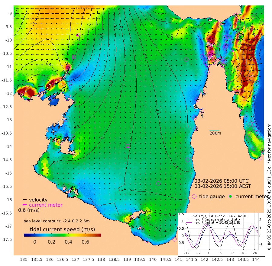 28cm/s -85T +3cm/s rms + 7cm/s -42T. ARA-GOC87 57m 30cm/s 169T +3cm/s rms + 2cm/s -2T. ARA-GOC87 60m 39cm/s -91T +2cm/s rms + 3cm/s 61T. ARA-GOC87 47m 58cm Daru 37cm Bobo Island -20cm Meer Island Barge -17cm Bramble Cay 16cm Unnamed Cay 18cm Pearce Cay 9cm Stephens Island 5cm Merrie England Shoals 44cm Mutacomal Reef 8cm Darnley Island Barge -23cm East Cay 34cm Yorke Island Barge 37cm Rennel Island 38cm Aureed Island 69cm Dungeness Reef 112cm Zagai Island 121cm Yam Island 161cm Dauan Island 152cm Saibai Island 146cm Phipi Reef 132cm Warrior Reef - West 128cm Mabuiag Island Barge 39cm Half Way Island 63cm Coconut Island 59cm Dugong Islet 89cm Poll Island 96cm Kirkcaldie Reef 115cm Suarji Island 98cm Sue Islet 101cm Hawkesbury Island 116cm Alert Patches 114cm Twin Island 105cm Badu Island 133cm St Pauls (Moa Island) 106cm Kubin (Moa Island) 119cm Ince Point 116cm Thursday Island 118cm Nardana Patches 107cm Turtle Head 94cm Round Island 85cm Goods Island 84cm Booby Island 70cm White Rocks Area 83cm Carpentaria 111cm Papou Point 74cm Bampfield Head 82cm Crab Island 89cm Red Wallis Island 100cm Packe Island 62cm Harrington Reef 110cm Herald Camp 51cm Sharp Point 100cm Red Island Point 100cm Possession Island 98cm Alpha Rock 93cm Frederick Point 49cm Wyborn Reef Light 62cm Tetley Island -1cm Triangle Reef 46cm Turtle Head Island -8cm Maclennan Cay -30cm Raine Island 19cm Mcsweeny Reef 8cm Collette Reef -12cm Shadwell Reef -1cm Hannibal Island -20cm Round Point 81cm Vrilya Point -15cm Cape Grenville -15cm Hicks Island -9cm Sir Charles Hardy Island -1cm Harvey Island -33cm Kay Reef -30cm Rocky Island -38cm Chapman Island -29cm Ham Reef -27cm Jubilee Reef -22cm Night Island -31cm Unnamed Reef No. 3 -34cm Morris Island -29cm 1st 3 Mile Opening -27cm Creech Reef -28cm Fife Island -54cm Eden Reef -36cm Stanley Island -47cm Normanby River -222cm Yabooma Island -249cm Hutchison River -226cm Elcho Island -211cm North West Crocodile Island -147cm Cape Wessel -208cm Stevens Island -115cm Guluwuru Island -198cm Hopeful Bay -167cm Auster Point -159cm Two Island Bay -193cm Cadell Strait -85cm Mallison Island -117cm Melville Bay (Gove Harbour) -120cm Truant Island -73cm Cape Arnhem -58cm Cape Grey -51cm Hawk Island -49cm Milner Bay (Groote Eylandt) -31cm Cape Beatrice 1cm West Island -1cm Centre Island 13cm Mornington Island 9cm West Wellesley Islands -15cm Bountiful Island -48cm Albert River Mouth -75cm Sweers Island -24cm Karumba 39cm Nassau River Offshore 64cm Christmas Creek 52cm Archer River 66cm Boyd Point 57cm Weipa (Humbug Point) 60cm Pennefather River 80cm Cullen Point