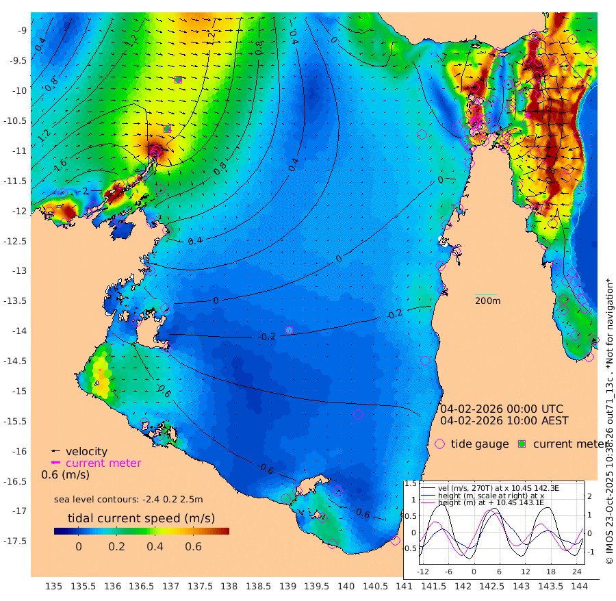 29cm/s 120T +3cm/s rms + 7cm/s -42T. ARA-GOC87 57m 11cm/s 174T +3cm/s rms + 2cm/s -2T. ARA-GOC87 60m 27cm/s 112T +2cm/s rms + 3cm/s 61T. ARA-GOC87 47m 59cm Daru 72cm Bobo Island 88cm Meer Island Barge 101cm Bramble Cay 89cm Unnamed Cay 92cm Pearce Cay 90cm Stephens Island 94cm Merrie England Shoals 75cm Mutacomal Reef 82cm Darnley Island Barge 99cm East Cay 69cm Yorke Island Barge 78cm Rennel Island 67cm Aureed Island 51cm Dungeness Reef 7cm Zagai Island 14cm Yam Island -16cm Dauan Island -20cm Saibai Island -22cm Phipi Reef 5cm Warrior Reef - West 3cm Mabuiag Island Barge 70cm Half Way Island 55cm Coconut Island 64cm Dugong Islet 37cm Poll Island 32cm Kirkcaldie Reef 14cm Suarji Island 25cm Sue Islet 85cm Hawkesbury Island 24cm Alert Patches 26cm Twin Island 55cm Badu Island 9cm St Pauls (Moa Island) 58cm Kubin (Moa Island) 24cm Ince Point 29cm Thursday Island 27cm Nardana Patches 47cm Turtle Head 60cm Round Island 76cm Goods Island 72cm Booby Island 83cm White Rocks Area 38cm Carpentaria 18cm Papou Point 95cm Bampfield Head 43cm Crab Island 69cm Red Wallis Island 65cm Packe Island 62cm Harrington Reef 68cm Herald Camp -19cm Sharp Point 37cm Red Island Point 32cm Possession Island 30cm Alpha Rock 42cm Frederick Point 75cm Wyborn Reef Light 66cm Tetley Island 79cm Triangle Reef 83cm Turtle Head Island 85cm Maclennan Cay 86cm Raine Island 81cm Mcsweeny Reef 82cm Collette Reef 81cm Shadwell Reef 92cm Hannibal Island 110cm Round Point 27cm Vrilya Point 95cm Cape Grenville 94cm Hicks Island 102cm Sir Charles Hardy Island 27cm Harvey Island 103cm Kay Reef 93cm Rocky Island 101cm Chapman Island 92cm Ham Reef 90cm Jubilee Reef 79cm Night Island 93cm Unnamed Reef No. 3 98cm Morris Island 88cm 1st 3 Mile Opening 90cm Creech Reef 93cm Fife Island 117cm Eden Reef 99cm Stanley Island 114cm Normanby River 226cm Yabooma Island 255cm Hutchison River 212cm Elcho Island 199cm North West Crocodile Island 159cm Cape Wessel 200cm Stevens Island 138cm Guluwuru Island 185cm Hopeful Bay 169cm Auster Point 169cm Two Island Bay 210cm Cadell Strait 129cm Mallison Island 126cm Melville Bay (Gove Harbour) 138cm Truant Island 75cm Cape Arnhem 28cm Cape Grey 8cm Hawk Island -49cm Milner Bay (Groote Eylandt) -57cm Cape Beatrice -121cm West Island -126cm Centre Island -124cm Mornington Island -116cm West Wellesley Islands -116cm Bountiful Island -145cm Albert River Mouth -158cm Sweers Island -149cm Karumba -81cm Nassau River Offshore -41cm Christmas Creek 6cm Archer River 20cm Boyd Point 29cm Weipa (Humbug Point) 7cm Pennefather River 28cm Cullen Point