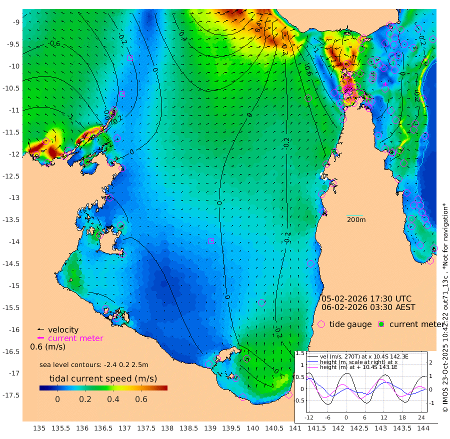 14cm/s 46T +3cm/s rms + 7cm/s -42T. ARA-GOC87 57m 13cm/s 35T +3cm/s rms + 2cm/s -2T. ARA-GOC87 60m 13cm/s 42T +2cm/s rms + 3cm/s 61T. ARA-GOC87 47m 2cm Daru 7cm Bobo Island -17cm Meer Island Barge -24cm Bramble Cay -15cm Unnamed Cay -8cm Pearce Cay -9cm Stephens Island -19cm Merrie England Shoals -13cm Mutacomal Reef -3cm Darnley Island Barge -26cm East Cay 4cm Yorke Island Barge -11cm Rennel Island 10cm Aureed Island -3cm Dungeness Reef 20cm Zagai Island -2cm Yam Island -11cm Dauan Island 3cm Saibai Island -13cm Phipi Reef 10cm Warrior Reef - West -26cm Mabuiag Island Barge -6cm Half Way Island 5cm Coconut Island -4cm Dugong Islet 1cm Poll Island -5cm Kirkcaldie Reef 8cm Suarji Island 9cm Sue Islet -133cm Hawkesbury Island -17cm Alert Patches -11cm Twin Island -97cm Badu Island -4cm St Pauls (Moa Island) -86cm Kubin (Moa Island) -33cm Ince Point -48cm Thursday Island -44cm Nardana Patches -76cm Turtle Head -97cm Round Island -115cm Goods Island -122cm Booby Island -123cm White Rocks Area -63cm Carpentaria -12cm Papou Point -119cm Bampfield Head -101cm Crab Island -118cm Red Wallis Island -102cm Packe Island 5cm Harrington Reef -127cm Herald Camp 10cm Sharp Point -74cm Red Island Point -38cm Possession Island -7cm Alpha Rock -4cm Frederick Point -5cm Wyborn Reef Light -4cm Tetley Island -18cm Triangle Reef -8cm Turtle Head Island -22cm Maclennan Cay -30cm Raine Island -6cm Mcsweeny Reef -11cm Collette Reef -21cm Shadwell Reef -12cm Hannibal Island -30cm Round Point -85cm Vrilya Point -25cm Cape Grenville -25cm Hicks Island -29cm Sir Charles Hardy Island -6cm Harvey Island -32cm Kay Reef -30cm Rocky Island -36cm Chapman Island -31cm Ham Reef -27cm Jubilee Reef -22cm Night Island -31cm Unnamed Reef No. 3 -30cm Morris Island -27cm 1st 3 Mile Opening -27cm Creech Reef -23cm Fife Island -37cm Eden Reef -33cm Stanley Island -37cm Normanby River -137cm Yabooma Island -135cm Hutchison River -117cm Elcho Island -121cm North West Crocodile Island -36cm Cape Wessel -91cm Stevens Island 2cm Guluwuru Island -91cm Hopeful Bay -58cm Auster Point -62cm Two Island Bay -79cm Cadell Strait 72cm Mallison Island -7cm Melville Bay (Gove Harbour) -5cm Truant Island 13cm Cape Arnhem 25cm Cape Grey 21cm Hawk Island 46cm Milner Bay (Groote Eylandt) 39cm Cape Beatrice 66cm West Island 66cm Centre Island 41cm Mornington Island 40cm West Wellesley Islands 26cm Bountiful Island 27cm Albert River Mouth 54cm Sweers Island 16cm Karumba -5cm Nassau River Offshore -31cm Christmas Creek -58cm Archer River -55cm Boyd Point -76cm Weipa (Humbug Point) -53cm Pennefather River -82cm Cullen Point
