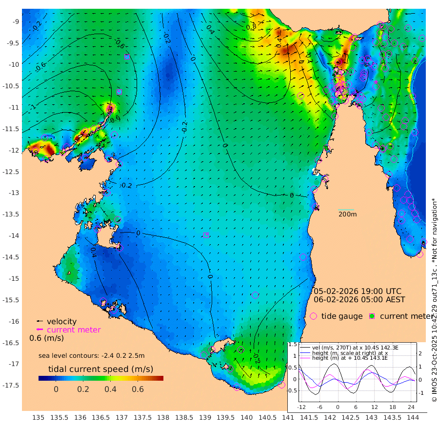 13cm/s -50T +3cm/s rms + 7cm/s -42T. ARA-GOC87 57m 16cm/s 35T +3cm/s rms + 2cm/s -2T. ARA-GOC87 60m 11cm/s -73T +2cm/s rms + 3cm/s 61T. ARA-GOC87 47m -48cm Daru -48cm Bobo Island -40cm Meer Island Barge -57cm Bramble Cay -52cm Unnamed Cay -59cm Pearce Cay -49cm Stephens Island -56cm Merrie England Shoals -55cm Mutacomal Reef -40cm Darnley Island Barge -52cm East Cay -38cm Yorke Island Barge -52cm Rennel Island -39cm Aureed Island -43cm Dungeness Reef -24cm Zagai Island -34cm Yam Island -41cm Dauan Island -25cm Saibai Island -48cm Phipi Reef -39cm Warrior Reef - West -27cm Mabuiag Island Barge -42cm Half Way Island -40cm Coconut Island -40cm Dugong Islet -36cm Poll Island -36cm Kirkcaldie Reef -21cm Suarji Island -24cm Sue Islet -78cm Hawkesbury Island -29cm Alert Patches -30cm Twin Island -63cm Badu Island -24cm St Pauls (Moa Island) -57cm Kubin (Moa Island) -32cm Ince Point -33cm Thursday Island -33cm Nardana Patches -50cm Turtle Head -55cm Round Island -61cm Goods Island -45cm Booby Island -54cm White Rocks Area 20cm Carpentaria -26cm Papou Point -41cm Bampfield Head -39cm Crab Island -50cm Red Wallis Island -63cm Packe Island -38cm Harrington Reef -61cm Herald Camp 2cm Sharp Point -51cm Red Island Point -31cm Possession Island -26cm Alpha Rock -36cm Frederick Point -50cm Wyborn Reef Light -47cm Tetley Island -42cm Triangle Reef -47cm Turtle Head Island -40cm Maclennan Cay -43cm Raine Island -45cm Mcsweeny Reef -46cm Collette Reef -41cm Shadwell Reef -50cm Hannibal Island -64cm Round Point -16cm Vrilya Point -48cm Cape Grenville -50cm Hicks Island -50cm Sir Charles Hardy Island -14cm Harvey Island -49cm Kay Reef -46cm Rocky Island -52cm Chapman Island -43cm Ham Reef -42cm Jubilee Reef -38cm Night Island -45cm Unnamed Reef No. 3 -47cm Morris Island -36cm 1st 3 Mile Opening -40cm Creech Reef -50cm Fife Island -54cm Eden Reef -45cm Stanley Island -56cm Normanby River -168cm Yabooma Island -186cm Hutchison River -154cm Elcho Island -154cm North West Crocodile Island -84cm Cape Wessel -142cm Stevens Island -68cm Guluwuru Island -132cm Hopeful Bay -101cm Auster Point -104cm Two Island Bay -158cm Cadell Strait -63cm Mallison Island -70cm Melville Bay (Gove Harbour) -71cm Truant Island -36cm Cape Arnhem -9cm Cape Grey -9cm Hawk Island 33cm Milner Bay (Groote Eylandt) 29cm Cape Beatrice 73cm West Island 77cm Centre Island 19cm Mornington Island 22cm West Wellesley Islands 1cm Bountiful Island -8cm Albert River Mouth 12cm Sweers Island -18cm Karumba -21cm Nassau River Offshore -32cm Christmas Creek -36cm Archer River -22cm Boyd Point -40cm Weipa (Humbug Point) -13cm Pennefather River -22cm Cullen Point