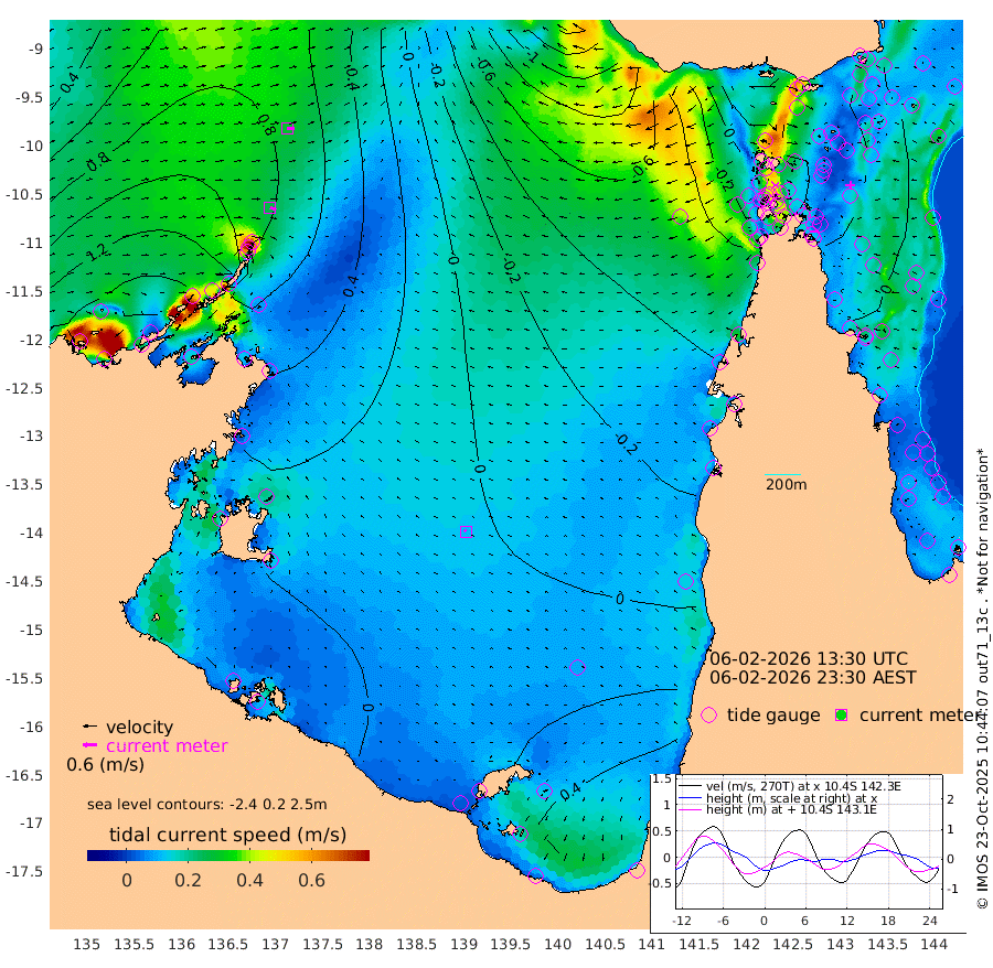26cm/s 109T +3cm/s rms + 7cm/s -42T. ARA-GOC87 57m 11cm/s -46T +3cm/s rms + 2cm/s -2T. ARA-GOC87 60m 29cm/s 95T +2cm/s rms + 3cm/s 61T. ARA-GOC87 47m 4cm Daru 8cm Bobo Island 5cm Meer Island Barge 15cm Bramble Cay 5cm Unnamed Cay 17cm Pearce Cay 5cm Stephens Island 11cm Merrie England Shoals 4cm Mutacomal Reef 0cm Darnley Island Barge 10cm East Cay -3cm Yorke Island Barge 2cm Rennel Island 0cm Aureed Island -1cm Dungeness Reef -13cm Zagai Island -20cm Yam Island -10cm Dauan Island -21cm Saibai Island 11cm Phipi Reef -9cm Warrior Reef - West -18cm Mabuiag Island Barge -3cm Half Way Island 1cm Coconut Island -12cm Dugong Islet -9cm Poll Island -13cm Kirkcaldie Reef -19cm Suarji Island -18cm Sue Islet -13cm Hawkesbury Island -16cm Alert Patches -18cm Twin Island 4cm Badu Island -22cm St Pauls (Moa Island) -18cm Kubin (Moa Island) -21cm Ince Point -22cm Thursday Island -22cm Nardana Patches -14cm Turtle Head -20cm Round Island -12cm Goods Island -27cm Booby Island -18cm White Rocks Area -74cm Carpentaria -20cm Papou Point -43cm Bampfield Head -16cm Crab Island -27cm Red Wallis Island -18cm Packe Island -8cm Harrington Reef -43cm Herald Camp -12cm Sharp Point -6cm Red Island Point -20cm Possession Island -24cm Alpha Rock -12cm Frederick Point 2cm Wyborn Reef Light -1cm Tetley Island 4cm Triangle Reef 4cm Turtle Head Island -2cm Maclennan Cay 11cm Raine Island 4cm Mcsweeny Reef 7cm Collette Reef 7cm Shadwell Reef 10cm Hannibal Island 20cm Round Point -28cm Vrilya Point 4cm Cape Grenville 8cm Hicks Island -6cm Sir Charles Hardy Island 0cm Harvey Island 7cm Kay Reef 8cm Rocky Island 15cm Chapman Island 4cm Ham Reef 6cm Jubilee Reef 5cm Night Island 7cm Unnamed Reef No. 3 9cm Morris Island 4cm 1st 3 Mile Opening 4cm Creech Reef 14cm Fife Island 13cm Eden Reef 5cm Stanley Island 11cm Normanby River 156cm Yabooma Island 180cm Hutchison River 155cm Elcho Island 151cm North West Crocodile Island 81cm Cape Wessel 148cm Stevens Island 72cm Guluwuru Island 133cm Hopeful Bay 105cm Auster Point 97cm Two Island Bay 160cm Cadell Strait 62cm Mallison Island 80cm Melville Bay (Gove Harbour) 78cm Truant Island 48cm Cape Arnhem 37cm Cape Grey 35cm Hawk Island 18cm Milner Bay (Groote Eylandt) 12cm Cape Beatrice -20cm West Island -20cm Centre Island 23cm Mornington Island 16cm West Wellesley Islands 46cm Bountiful Island 81cm Albert River Mouth 93cm Sweers Island 80cm Karumba 28cm Nassau River Offshore 9cm Christmas Creek 5cm Archer River -21cm Boyd Point -8cm Weipa (Humbug Point) -7cm Pennefather River -35cm Cullen Point