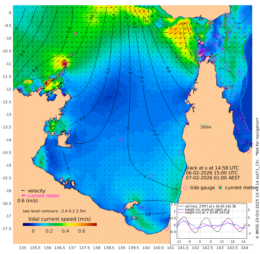 35cm/s 97T +3cm/s rms + 7cm/s -42T. ARA-GOC87 57m 7cm/s -32T +3cm/s rms + 2cm/s -2T. ARA-GOC87 60m 37cm/s 84T +2cm/s rms + 3cm/s 61T. ARA-GOC87 47m 29cm Daru 38cm Bobo Island 15cm Meer Island Barge 25cm Bramble Cay 20cm Unnamed Cay 38cm Pearce Cay 23cm Stephens Island 21cm Merrie England Shoals 20cm Mutacomal Reef 22cm Darnley Island Barge 17cm East Cay 23cm Yorke Island Barge 19cm Rennel Island 30cm Aureed Island 18cm Dungeness Reef 19cm Zagai Island -1cm Yam Island 6cm Dauan Island 4cm Saibai Island 19cm Phipi Reef 21cm Warrior Reef - West -20cm Mabuiag Island Barge 12cm Half Way Island 25cm Coconut Island 6cm Dugong Islet 11cm Poll Island 1cm Kirkcaldie Reef 1cm Suarji Island 6cm Sue Islet -77cm Hawkesbury Island -13cm Alert Patches -10cm Twin Island -41cm Badu Island -10cm St Pauls (Moa Island) -55cm Kubin (Moa Island) -28cm Ince Point -40cm Thursday Island -36cm Nardana Patches -47cm Turtle Head -65cm Round Island -69cm Goods Island -93cm Booby Island -84cm White Rocks Area -111cm Carpentaria -13cm Papou Point -102cm Bampfield Head -74cm Crab Island -89cm Red Wallis Island -64cm Packe Island 14cm Harrington Reef -104cm Herald Camp -4cm Sharp Point -40cm Red Island Point -31cm Possession Island -11cm Alpha Rock 4cm Frederick Point 24cm Wyborn Reef Light 20cm Tetley Island 15cm Triangle Reef 19cm Turtle Head Island 5cm Maclennan Cay 11cm Raine Island 23cm Mcsweeny Reef 22cm Collette Reef 14cm Shadwell Reef 26cm Hannibal Island 26cm Round Point -81cm Vrilya Point 10cm Cape Grenville 14cm Hicks Island 4cm Sir Charles Hardy Island 3cm Harvey Island 10cm Kay Reef 11cm Rocky Island 16cm Chapman Island 7cm Ham Reef 10cm Jubilee Reef 10cm Night Island 9cm Unnamed Reef No. 3 12cm Morris Island 4cm 1st 3 Mile Opening 7cm Creech Reef 23cm Fife Island 15cm Eden Reef 5cm Stanley Island 11cm Normanby River 97cm Yabooma Island 130cm Hutchison River 107cm Elcho Island 98cm North West Crocodile Island 87cm Cape Wessel 118cm Stevens Island 107cm Guluwuru Island 101cm Hopeful Bay 93cm Auster Point 84cm Two Island Bay 148cm Cadell Strait 172cm Mallison Island 103cm Melville Bay (Gove Harbour) 105cm Truant Island 76cm Cape Arnhem 57cm Cape Grey 49cm Hawk Island 28cm Milner Bay (Groote Eylandt) 19cm Cape Beatrice -12cm West Island -15cm Centre Island 25cm Mornington Island 19cm West Wellesley Islands 39cm Bountiful Island 65cm Albert River Mouth 85cm Sweers Island 58cm Karumba 14cm Nassau River Offshore -8cm Christmas Creek -26cm Archer River -46cm Boyd Point -46cm Weipa (Humbug Point) -43cm Pennefather River -80cm Cullen Point