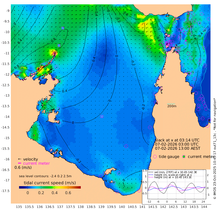 12cm/s 92T +3cm/s rms + 7cm/s -42T. ARA-GOC87 57m 12cm/s -160T +3cm/s rms + 2cm/s -2T. ARA-GOC87 60m 13cm/s 68T +2cm/s rms + 3cm/s 61T. ARA-GOC87 47m 63cm Daru 61cm Bobo Island 33cm Meer Island Barge 48cm Bramble Cay 55cm Unnamed Cay 56cm Pearce Cay 49cm Stephens Island 49cm Merrie England Shoals 62cm Mutacomal Reef 44cm Darnley Island Barge 39cm East Cay 50cm Yorke Island Barge 57cm Rennel Island 54cm Aureed Island 54cm Dungeness Reef 65cm Zagai Island 62cm Yam Island 80cm Dauan Island 72cm Saibai Island 62cm Phipi Reef 77cm Warrior Reef - West 46cm Mabuiag Island Barge 44cm Half Way Island 56cm Coconut Island 50cm Dugong Islet 56cm Poll Island 44cm Kirkcaldie Reef 55cm Suarji Island 51cm Sue Islet 26cm Hawkesbury Island 41cm Alert Patches 46cm Twin Island 32cm Badu Island 49cm St Pauls (Moa Island) 37cm Kubin (Moa Island) 38cm Ince Point 28cm Thursday Island 33cm Nardana Patches 31cm Turtle Head 30cm Round Island 18cm Goods Island -5cm Booby Island 7cm White Rocks Area -35cm Carpentaria 41cm Papou Point 14cm Bampfield Head -16cm Crab Island 2cm Red Wallis Island 27cm Packe Island 50cm Harrington Reef 22cm Herald Camp 8cm Sharp Point 14cm Red Island Point 29cm Possession Island 51cm Alpha Rock 52cm Frederick Point 67cm Wyborn Reef Light 67cm Tetley Island 40cm Triangle Reef 50cm Turtle Head Island 34cm Maclennan Cay 27cm Raine Island 51cm Mcsweeny Reef 46cm Collette Reef 35cm Shadwell Reef 48cm Hannibal Island 50cm Round Point -40cm Vrilya Point 36cm Cape Grenville 39cm Hicks Island 50cm Sir Charles Hardy Island 11cm Harvey Island 33cm Kay Reef 33cm Rocky Island 35cm Chapman Island 30cm Ham Reef 30cm Jubilee Reef 26cm Night Island 29cm Unnamed Reef No. 3 32cm Morris Island 25cm 1st 3 Mile Opening 26cm Creech Reef 39cm Fife Island 33cm Eden Reef 26cm Stanley Island 34cm Normanby River 128cm Yabooma Island 156cm Hutchison River 124cm Elcho Island 117cm North West Crocodile Island 106cm Cape Wessel 126cm Stevens Island 115cm Guluwuru Island 111cm Hopeful Bay 102cm Auster Point 104cm Two Island Bay 144cm Cadell Strait 162cm Mallison Island 104cm Melville Bay (Gove Harbour) 111cm Truant Island 72cm Cape Arnhem 36cm Cape Grey 26cm Hawk Island -17cm Milner Bay (Groote Eylandt) -19cm Cape Beatrice -63cm West Island -73cm Centre Island -35cm Mornington Island -33cm West Wellesley Islands -19cm Bountiful Island -20cm Albert River Mouth -39cm Sweers Island -29cm Karumba -21cm Nassau River Offshore -9cm Christmas Creek -13cm Archer River -6cm Boyd Point -1cm Weipa (Humbug Point) -39cm Pennefather River -19cm Cullen Point