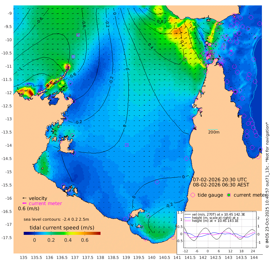 14cm/s -80T +3cm/s rms + 7cm/s -42T. ARA-GOC87 57m 8cm/s 100T +3cm/s rms + 2cm/s -2T. ARA-GOC87 60m 17cm/s -101T +2cm/s rms + 3cm/s 61T. ARA-GOC87 47m -9cm Daru -4cm Bobo Island 12cm Meer Island Barge 1cm Bramble Cay 1cm Unnamed Cay -1cm Pearce Cay 7cm Stephens Island 2cm Merrie England Shoals -8cm Mutacomal Reef 12cm Darnley Island Barge 8cm East Cay 7cm Yorke Island Barge -1cm Rennel Island 7cm Aureed Island -3cm Dungeness Reef -15cm Zagai Island -18cm Yam Island -43cm Dauan Island -30cm Saibai Island -40cm Phipi Reef -26cm Warrior Reef - West -19cm Mabuiag Island Barge 7cm Half Way Island -1cm Coconut Island 7cm Dugong Islet -7cm Poll Island 0cm Kirkcaldie Reef 0cm Suarji Island 0cm Sue Islet -20cm Hawkesbury Island 1cm Alert Patches -2cm Twin Island -21cm Badu Island -7cm St Pauls (Moa Island) -17cm Kubin (Moa Island) -5cm Ince Point -1cm Thursday Island -3cm Nardana Patches -7cm Turtle Head -17cm Round Island -3cm Goods Island 14cm Booby Island 7cm White Rocks Area 60cm Carpentaria -7cm Papou Point 14cm Bampfield Head 7cm Crab Island 8cm Red Wallis Island -11cm Packe Island 9cm Harrington Reef -10cm Herald Camp 0cm Sharp Point -7cm Red Island Point -2cm Possession Island -4cm Alpha Rock -2cm Frederick Point -10cm Wyborn Reef Light -12cm Tetley Island 4cm Triangle Reef 2cm Turtle Head Island 14cm Maclennan Cay 9cm Raine Island 5cm Mcsweeny Reef 5cm Collette Reef 8cm Shadwell Reef 7cm Hannibal Island -1cm Round Point 27cm Vrilya Point 12cm Cape Grenville 6cm Hicks Island 11cm Sir Charles Hardy Island 4cm Harvey Island 14cm Kay Reef 10cm Rocky Island 7cm Chapman Island 13cm Ham Reef 12cm Jubilee Reef 11cm Night Island 14cm Unnamed Reef No. 3 12cm Morris Island 18cm 1st 3 Mile Opening 17cm Creech Reef 4cm Fife Island 15cm Eden Reef 16cm Stanley Island 12cm Normanby River -157cm Yabooma Island -173cm Hutchison River -148cm Elcho Island -149cm North West Crocodile Island -88cm Cape Wessel -144cm Stevens Island -76cm Guluwuru Island -129cm Hopeful Bay -103cm Auster Point -110cm Two Island Bay -156cm Cadell Strait -89cm Mallison Island -79cm Melville Bay (Gove Harbour) -81cm Truant Island -48cm Cape Arnhem -24cm Cape Grey -26cm Hawk Island 1cm Milner Bay (Groote Eylandt) 5cm Cape Beatrice 41cm West Island 45cm Centre Island 3cm Mornington Island 10cm West Wellesley Islands -13cm Bountiful Island -42cm Albert River Mouth -34cm Sweers Island -45cm Karumba -8cm Nassau River Offshore -1cm Christmas Creek 7cm Archer River 17cm Boyd Point 6cm Weipa (Humbug Point) 21cm Pennefather River 17cm Cullen Point