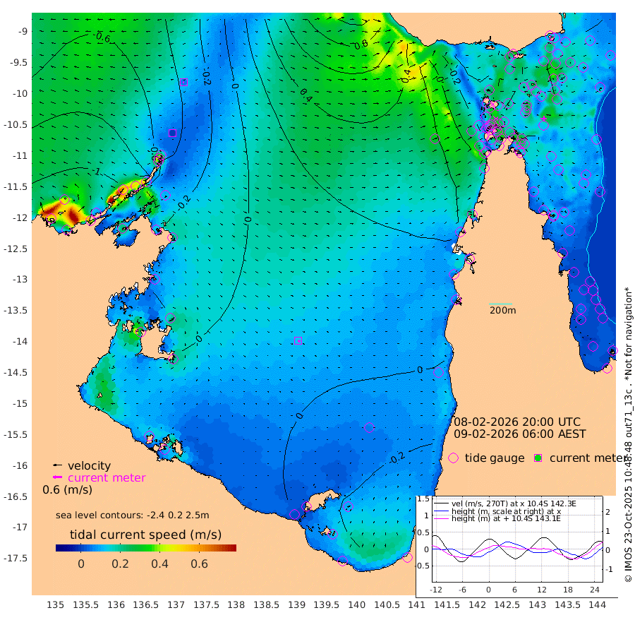0cm/s -86T +3cm/s rms + 7cm/s -42T. ARA-GOC87 57m 12cm/s 132T +3cm/s rms + 2cm/s -2T. ARA-GOC87 60m 5cm/s -114T +2cm/s rms + 3cm/s 61T. ARA-GOC87 47m 9cm Daru 21cm Bobo Island 34cm Meer Island Barge 26cm Bramble Cay 20cm Unnamed Cay 24cm Pearce Cay 28cm Stephens Island 24cm Merrie England Shoals 10cm Mutacomal Reef 35cm Darnley Island Barge 33cm East Cay 27cm Yorke Island Barge 15cm Rennel Island 28cm Aureed Island 7cm Dungeness Reef -6cm Zagai Island -17cm Yam Island -42cm Dauan Island -23cm Saibai Island -37cm Phipi Reef -16cm Warrior Reef - West -26cm Mabuiag Island Barge 19cm Half Way Island 14cm Coconut Island 16cm Dugong Islet -1cm Poll Island 3cm Kirkcaldie Reef -4cm Suarji Island 7cm Sue Islet -36cm Hawkesbury Island -4cm Alert Patches -5cm Twin Island -34cm Badu Island -14cm St Pauls (Moa Island) -32cm Kubin (Moa Island) -15cm Ince Point -15cm Thursday Island -17cm Nardana Patches -21cm Turtle Head -33cm Round Island -22cm Goods Island -12cm Booby Island -19cm White Rocks Area 34cm Carpentaria -12cm Papou Point -10cm Bampfield Head -13cm Crab Island -15cm Red Wallis Island -26cm Packe Island 20cm Harrington Reef -33cm Herald Camp -3cm Sharp Point -16cm Red Island Point -12cm Possession Island -4cm Alpha Rock 4cm Frederick Point 8cm Wyborn Reef Light 4cm Tetley Island 26cm Triangle Reef 15cm Turtle Head Island 31cm Maclennan Cay 29cm Raine Island 25cm Mcsweeny Reef 28cm Collette Reef 29cm Shadwell Reef 31cm Hannibal Island 26cm Round Point 6cm Vrilya Point 33cm Cape Grenville 28cm Hicks Island 33cm Sir Charles Hardy Island 10cm Harvey Island 37cm Kay Reef 32cm Rocky Island 34cm Chapman Island 36cm Ham Reef 34cm Jubilee Reef 30cm Night Island 38cm Unnamed Reef No. 3 34cm Morris Island 34cm 1st 3 Mile Opening 37cm Creech Reef 31cm Fife Island 42cm Eden Reef 37cm Stanley Island 36cm Normanby River -138cm Yabooma Island -143cm Hutchison River -126cm Elcho Island -130cm North West Crocodile Island -54cm Cape Wessel -112cm Stevens Island -30cm Guluwuru Island -98cm Hopeful Bay -74cm Auster Point -82cm Two Island Bay -107cm Cadell Strait 31cm Mallison Island -40cm Melville Bay (Gove Harbour) -39cm Truant Island -18cm Cape Arnhem -11cm Cape Grey -15cm Hawk Island -9cm Milner Bay (Groote Eylandt) -8cm Cape Beatrice 12cm West Island 16cm Centre Island -9cm Mornington Island -6cm West Wellesley Islands -28cm Bountiful Island -64cm Albert River Mouth -51cm Sweers Island -62cm Karumba -12cm Nassau River Offshore -1cm Christmas Creek 7cm Archer River 12cm Boyd Point 0cm Weipa (Humbug Point) 13cm Pennefather River 1cm Cullen Point