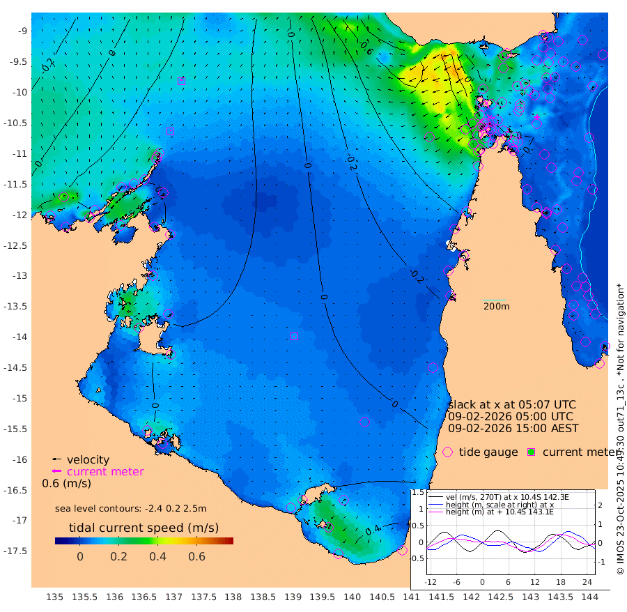 9cm/s 12T +3cm/s rms + 7cm/s -42T. ARA-GOC87 57m 9cm/s -136T +3cm/s rms + 2cm/s -2T. ARA-GOC87 60m 12cm/s 8T +2cm/s rms + 3cm/s 61T. ARA-GOC87 47m 4cm Daru 0cm Bobo Island -6cm Meer Island Barge -4cm Bramble Cay -5cm Unnamed Cay -13cm Pearce Cay -10cm Stephens Island -11cm Merrie England Shoals -2cm Mutacomal Reef -5cm Darnley Island Barge -6cm East Cay -2cm Yorke Island Barge -7cm Rennel Island -4cm Aureed Island -6cm Dungeness Reef 22cm Zagai Island 16cm Yam Island 48cm Dauan Island 50cm Saibai Island 29cm Phipi Reef 33cm Warrior Reef - West 6cm Mabuiag Island Barge -16cm Half Way Island -5cm Coconut Island -13cm Dugong Islet -3cm Poll Island -10cm Kirkcaldie Reef -4cm Suarji Island 3cm Sue Islet -47cm Hawkesbury Island -21cm Alert Patches -15cm Twin Island -29cm Badu Island -9cm St Pauls (Moa Island) -29cm Kubin (Moa Island) -19cm Ince Point -30cm Thursday Island -24cm Nardana Patches -31cm Turtle Head -35cm Round Island -48cm Goods Island -65cm Booby Island -63cm White Rocks Area -68cm Carpentaria -11cm Papou Point -61cm Bampfield Head -57cm Crab Island -58cm Red Wallis Island -38cm Packe Island -20cm Harrington Reef -40cm Herald Camp 2cm Sharp Point -35cm Red Island Point -31cm Possession Island -3cm Alpha Rock -13cm Frederick Point -2cm Wyborn Reef Light -1cm Tetley Island -1cm Triangle Reef -30cm Turtle Head Island -7cm Maclennan Cay -5cm Raine Island -7cm Mcsweeny Reef -5cm Collette Reef -2cm Shadwell Reef -7cm Hannibal Island -9cm Round Point -70cm Vrilya Point -11cm Cape Grenville -7cm Hicks Island 5cm Sir Charles Hardy Island -3cm Harvey Island -9cm Kay Reef -4cm Rocky Island -2cm Chapman Island -2cm Ham Reef -4cm Jubilee Reef -7cm Night Island -5cm Unnamed Reef No. 3 -7cm Morris Island -11cm 1st 3 Mile Opening -9cm Creech Reef -1cm Fife Island -7cm Eden Reef -11cm Stanley Island -11cm Normanby River 29cm Yabooma Island 46cm Hutchison River 36cm Elcho Island 33cm North West Crocodile Island 42cm Cape Wessel 42cm Stevens Island 69cm Guluwuru Island 37cm Hopeful Bay 28cm Auster Point 33cm Two Island Bay 58cm Cadell Strait 161cm Mallison Island 55cm Melville Bay (Gove Harbour) 56cm Truant Island 43cm Cape Arnhem 27cm Cape Grey 24cm Hawk Island 8cm Milner Bay (Groote Eylandt) 10cm Cape Beatrice -9cm West Island -15cm Centre Island 28cm Mornington Island 26cm West Wellesley Islands 45cm Bountiful Island 65cm Albert River Mouth 45cm Sweers Island 52cm Karumba 21cm Nassau River Offshore 12cm Christmas Creek -16cm Archer River -20cm Boyd Point -19cm Weipa (Humbug Point) -53cm Pennefather River -45cm Cullen Point