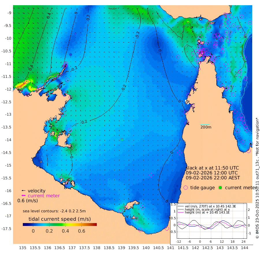 3cm/s -132T +3cm/s rms + 7cm/s -42T. ARA-GOC87 57m 19cm/s -3T +3cm/s rms + 2cm/s -2T. ARA-GOC87 60m 4cm/s 151T +2cm/s rms + 3cm/s 61T. ARA-GOC87 47m -27cm Daru -29cm Bobo Island -33cm Meer Island Barge -31cm Bramble Cay -27cm Unnamed Cay -24cm Pearce Cay -26cm Stephens Island -23cm Merrie England Shoals -21cm Mutacomal Reef -35cm Darnley Island Barge -32cm East Cay -32cm Yorke Island Barge -21cm Rennel Island -30cm Aureed Island -19cm Dungeness Reef -32cm Zagai Island -18cm Yam Island -41cm Dauan Island -51cm Saibai Island -30cm Phipi Reef -38cm Warrior Reef - West -16cm Mabuiag Island Barge -13cm Half Way Island -23cm Coconut Island -15cm Dugong Islet -14cm Poll Island -10cm Kirkcaldie Reef -17cm Suarji Island -25cm Sue Islet 19cm Hawkesbury Island -8cm Alert Patches -6cm Twin Island 1cm Badu Island -6cm St Pauls (Moa Island) 12cm Kubin (Moa Island) -1cm Ince Point 5cm Thursday Island 2cm Nardana Patches 3cm Turtle Head 16cm Round Island 11cm Goods Island 19cm Booby Island 24cm White Rocks Area 8cm Carpentaria -3cm Papou Point 13cm Bampfield Head 23cm Crab Island 21cm Red Wallis Island 16cm Packe Island -12cm Harrington Reef 20cm Herald Camp -2cm Sharp Point 9cm Red Island Point 7cm Possession Island -12cm Alpha Rock -11cm Frederick Point -22cm Wyborn Reef Light -20cm Tetley Island -32cm Triangle Reef -6cm Turtle Head Island -29cm Maclennan Cay -32cm Raine Island -28cm Mcsweeny Reef -32cm Collette Reef -34cm Shadwell Reef -32cm Hannibal Island -27cm Round Point 27cm Vrilya Point -27cm Cape Grenville -28cm Hicks Island -45cm Sir Charles Hardy Island -7cm Harvey Island -34cm Kay Reef -35cm Rocky Island -39cm Chapman Island -39cm Ham Reef -36cm Jubilee Reef -26cm Night Island -37cm Unnamed Reef No. 3 -34cm Morris Island -32cm 1st 3 Mile Opening -34cm Creech Reef -34cm Fife Island -40cm Eden Reef -32cm Stanley Island -30cm Normanby River 47cm Yabooma Island 28cm Hutchison River 34cm Elcho Island 42cm North West Crocodile Island -6cm Cape Wessel 25cm Stevens Island -50cm Guluwuru Island 21cm Hopeful Bay 13cm Auster Point 20cm Two Island Bay 5cm Cadell Strait -157cm Mallison Island -32cm Melville Bay (Gove Harbour) -33cm Truant Island -31cm Cape Arnhem -20cm Cape Grey -8cm Hawk Island 14cm Milner Bay (Groote Eylandt) 11cm Cape Beatrice 24cm West Island 29cm Centre Island -1cm Mornington Island -2cm West Wellesley Islands -10cm Bountiful Island 9cm Albert River Mouth 18cm Sweers Island 16cm Karumba -6cm Nassau River Offshore -18cm Christmas Creek -12cm Archer River -14cm Boyd Point -12cm Weipa (Humbug Point) 15cm Pennefather River 14cm Cullen Point