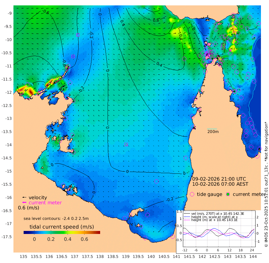 6cm/s -115T +3cm/s rms + 7cm/s -42T. ARA-GOC87 57m 16cm/s 148T +3cm/s rms + 2cm/s -2T. ARA-GOC87 60m 11cm/s -116T +2cm/s rms + 3cm/s 61T. ARA-GOC87 47m 34cm Daru 45cm Bobo Island 55cm Meer Island Barge 54cm Bramble Cay 50cm Unnamed Cay 54cm Pearce Cay 56cm Stephens Island 56cm Merrie England Shoals 41cm Mutacomal Reef 59cm Darnley Island Barge 58cm East Cay 50cm Yorke Island Barge 45cm Rennel Island 52cm Aureed Island 34cm Dungeness Reef 6cm Zagai Island 2cm Yam Island -33cm Dauan Island -17cm Saibai Island -23cm Phipi Reef -1cm Warrior Reef - West -9cm Mabuiag Island Barge 48cm Half Way Island 40cm Coconut Island 45cm Dugong Islet 23cm Poll Island 28cm Kirkcaldie Reef 19cm Suarji Island 27cm Sue Islet 11cm Hawkesbury Island 25cm Alert Patches 22cm Twin Island 0cm Badu Island 9cm St Pauls (Moa Island) 3cm Kubin (Moa Island) 13cm Ince Point 15cm Thursday Island 12cm Nardana Patches 14cm Turtle Head 4cm Round Island 19cm Goods Island 29cm Booby Island 26cm White Rocks Area 61cm Carpentaria 10cm Papou Point 35cm Bampfield Head 18cm Crab Island 26cm Red Wallis Island 15cm Packe Island 51cm Harrington Reef 11cm Herald Camp -1cm Sharp Point 16cm Red Island Point 18cm Possession Island 20cm Alpha Rock 31cm Frederick Point 37cm Wyborn Reef Light 32cm Tetley Island 47cm Triangle Reef 47cm Turtle Head Island 54cm Maclennan Cay 49cm Raine Island 52cm Mcsweeny Reef 54cm Collette Reef 51cm Shadwell Reef 60cm Hannibal Island 57cm Round Point 34cm Vrilya Point 61cm Cape Grenville 53cm Hicks Island 60cm Sir Charles Hardy Island 18cm Harvey Island 65cm Kay Reef 55cm Rocky Island 58cm Chapman Island 57cm Ham Reef 55cm Jubilee Reef 50cm Night Island 60cm Unnamed Reef No. 3 58cm Morris Island 54cm 1st 3 Mile Opening 59cm Creech Reef 52cm Fife Island 68cm Eden Reef 62cm Stanley Island 64cm Normanby River -122cm Yabooma Island -129cm Hutchison River -116cm Elcho Island -119cm North West Crocodile Island -54cm Cape Wessel -105cm Stevens Island -40cm Guluwuru Island -90cm Hopeful Bay -70cm Auster Point -80cm Two Island Bay -107cm Cadell Strait 1cm Mallison Island -47cm Melville Bay (Gove Harbour) -46cm Truant Island -28cm Cape Arnhem -21cm Cape Grey -24cm Hawk Island -25cm Milner Bay (Groote Eylandt) -20cm Cape Beatrice -5cm West Island -1cm Centre Island -23cm Mornington Island -17cm West Wellesley Islands -40cm Bountiful Island -88cm Albert River Mouth -79cm Sweers Island -80cm Karumba -11cm Nassau River Offshore 10cm Christmas Creek 26cm Archer River 32cm Boyd Point 24cm Weipa (Humbug Point) 32cm Pennefather River 27cm Cullen Point