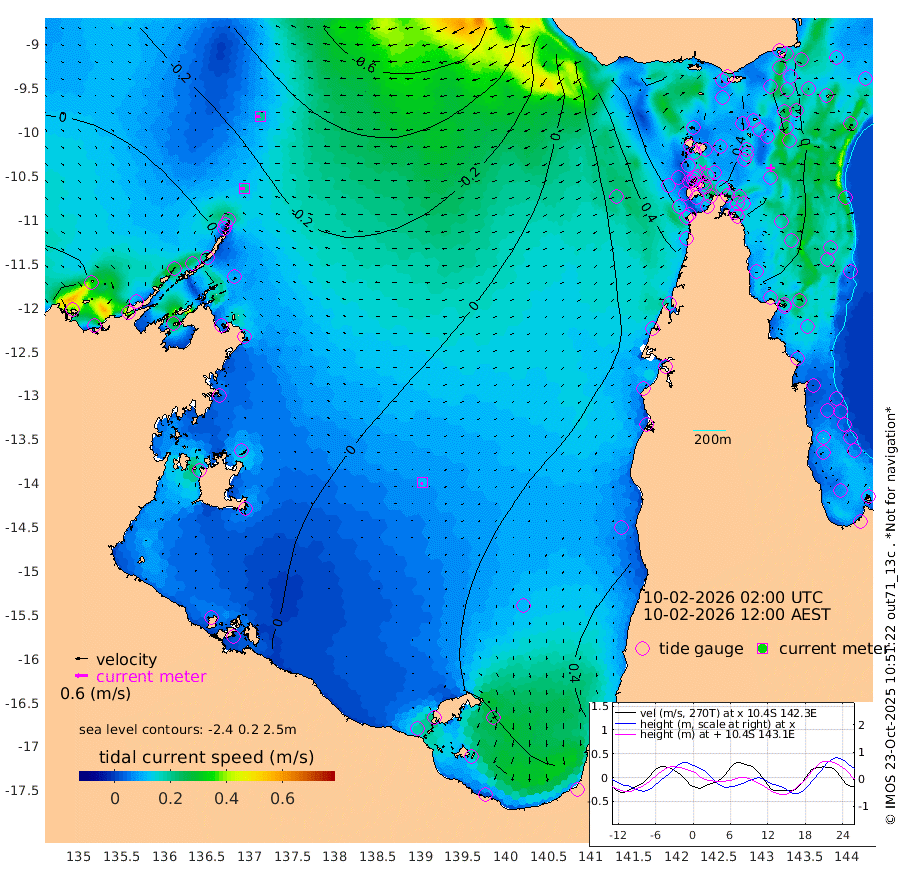 20cm/s -96T +3cm/s rms + 7cm/s -42T. ARA-GOC87 57m 12cm/s -146T +3cm/s rms + 2cm/s -2T. ARA-GOC87 60m 20cm/s -101T +2cm/s rms + 3cm/s 61T. ARA-GOC87 47m 40cm Daru 25cm Bobo Island -1cm Meer Island Barge 4cm Bramble Cay 23cm Unnamed Cay 26cm Pearce Cay 16cm Stephens Island 12cm Merrie England Shoals 33cm Mutacomal Reef 8cm Darnley Island Barge -1cm East Cay 22cm Yorke Island Barge 36cm Rennel Island 27cm Aureed Island 55cm Dungeness Reef 66cm Zagai Island 76cm Yam Island 111cm Dauan Island 87cm Saibai Island 109cm Phipi Reef 81cm Warrior Reef - West 93cm Mabuiag Island Barge 30cm Half Way Island 43cm Coconut Island 44cm Dugong Islet 62cm Poll Island 61cm Kirkcaldie Reef 90cm Suarji Island 55cm Sue Islet 105cm Hawkesbury Island 86cm Alert Patches 78cm Twin Island 111cm Badu Island 90cm St Pauls (Moa Island) 99cm Kubin (Moa Island) 89cm Ince Point 92cm Thursday Island 93cm Nardana Patches 103cm Turtle Head 93cm Round Island 104cm Goods Island 96cm Booby Island 100cm White Rocks Area 44cm Carpentaria 75cm Papou Point 92cm Bampfield Head 73cm Crab Island 88cm Red Wallis Island 91cm Packe Island 44cm Harrington Reef 97cm Herald Camp 22cm Sharp Point 84cm Red Island Point 80cm Possession Island 60cm Alpha Rock 62cm Frederick Point 37cm Wyborn Reef Light 42cm Tetley Island 7cm Triangle Reef 41cm Turtle Head Island 8cm Maclennan Cay -1cm Raine Island 21cm Mcsweeny Reef 12cm Collette Reef 3cm Shadwell Reef 8cm Hannibal Island 4cm Round Point 49cm Vrilya Point 1cm Cape Grenville 6cm Hicks Island 9cm Sir Charles Hardy Island 1cm Harvey Island -8cm Kay Reef -2cm Rocky Island -7cm Chapman Island -8cm Ham Reef -3cm Jubilee Reef -4cm Night Island -9cm Unnamed Reef No. 3 -3cm Morris Island 6cm 1st 3 Mile Opening -3cm Creech Reef -6cm Fife Island -12cm Eden Reef -8cm Stanley Island -10cm Normanby River 35cm Yabooma Island 41cm Hutchison River 26cm Elcho Island 31cm North West Crocodile Island -19cm Cape Wessel 1cm Stevens Island -22cm Guluwuru Island -5cm Hopeful Bay -4cm Auster Point -10cm Two Island Bay 1cm Cadell Strait -156cm Mallison Island -14cm Melville Bay (Gove Harbour) -18cm Truant Island -15cm Cape Arnhem -3cm Cape Grey -10cm Hawk Island -13cm Milner Bay (Groote Eylandt) -3cm Cape Beatrice -6cm West Island -13cm Centre Island 13cm Mornington Island 19cm West Wellesley Islands 45cm Bountiful Island 40cm Albert River Mouth 20cm Sweers Island 40cm Karumba 30cm Nassau River Offshore 38cm Christmas Creek 37cm Archer River 43cm Boyd Point 55cm Weipa (Humbug Point) 27cm Pennefather River 48cm Cullen Point