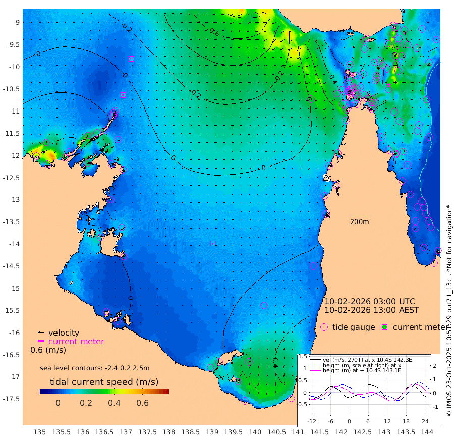 14cm/s -88T +3cm/s rms + 7cm/s -42T. ARA-GOC87 57m 12cm/s -135T +3cm/s rms + 2cm/s -2T. ARA-GOC87 60m 13cm/s -89T +2cm/s rms + 3cm/s 61T. ARA-GOC87 47m 22cm Daru 7cm Bobo Island -13cm Meer Island Barge -10cm Bramble Cay 3cm Unnamed Cay 2cm Pearce Cay -4cm Stephens Island -8cm Merrie England Shoals 12cm Mutacomal Reef -7cm Darnley Island Barge -14cm East Cay 5cm Yorke Island Barge 13cm Rennel Island 6cm Aureed Island 32cm Dungeness Reef 56cm Zagai Island 60cm Yam Island 109cm Dauan Island 90cm Saibai Island 101cm Phipi Reef 72cm Warrior Reef - West 78cm Mabuiag Island Barge 5cm Half Way Island 21cm Coconut Island 17cm Dugong Islet 39cm Poll Island 36cm Kirkcaldie Reef 63cm Suarji Island 37cm Sue Islet 69cm Hawkesbury Island 55cm Alert Patches 49cm Twin Island 84cm Badu Island 64cm St Pauls (Moa Island) 69cm Kubin (Moa Island) 61cm Ince Point 60cm Thursday Island 63cm Nardana Patches 71cm Turtle Head 63cm Round Island 68cm Goods Island 55cm Booby Island 58cm White Rocks Area 8cm Carpentaria 52cm Papou Point 51cm Bampfield Head 41cm Crab Island 50cm Red Wallis Island 57cm Packe Island 13cm Harrington Reef 63cm Herald Camp 17cm Sharp Point 54cm Red Island Point 49cm Possession Island 38cm Alpha Rock 35cm Frederick Point 16cm Wyborn Reef Light 21cm Tetley Island -4cm Triangle Reef 11cm Turtle Head Island -7cm Maclennan Cay -10cm Raine Island 1cm Mcsweeny Reef -4cm Collette Reef -8cm Shadwell Reef -9cm Hannibal Island -13cm Round Point 16cm Vrilya Point -16cm Cape Grenville -8cm Hicks Island -3cm Sir Charles Hardy Island -4cm Harvey Island -21cm Kay Reef -12cm Rocky Island -16cm Chapman Island -16cm Ham Reef -12cm Jubilee Reef -15cm Night Island -19cm Unnamed Reef No. 3 -15cm Morris Island -7cm 1st 3 Mile Opening -15cm Creech Reef -16cm Fife Island -23cm Eden Reef -20cm Stanley Island -24cm Normanby River 54cm Yabooma Island 66cm Hutchison River 49cm Elcho Island 52cm North West Crocodile Island 4cm Cape Wessel 28cm Stevens Island 11cm Guluwuru Island 20cm Hopeful Bay 15cm Auster Point 12cm Two Island Bay 35cm Cadell Strait -71cm Mallison Island 14cm Melville Bay (Gove Harbour) 10cm Truant Island 6cm Cape Arnhem 11cm Cape Grey 3cm Hawk Island -5cm Milner Bay (Groote Eylandt) 2cm Cape Beatrice -9cm West Island -17cm Centre Island 23cm Mornington Island 25cm West Wellesley Islands 58cm Bountiful Island 68cm Albert River Mouth 45cm Sweers Island 63cm Karumba 33cm Nassau River Offshore 35cm Christmas Creek 25cm Archer River 26cm Boyd Point 39cm Weipa (Humbug Point) 5cm Pennefather River 23cm Cullen Point