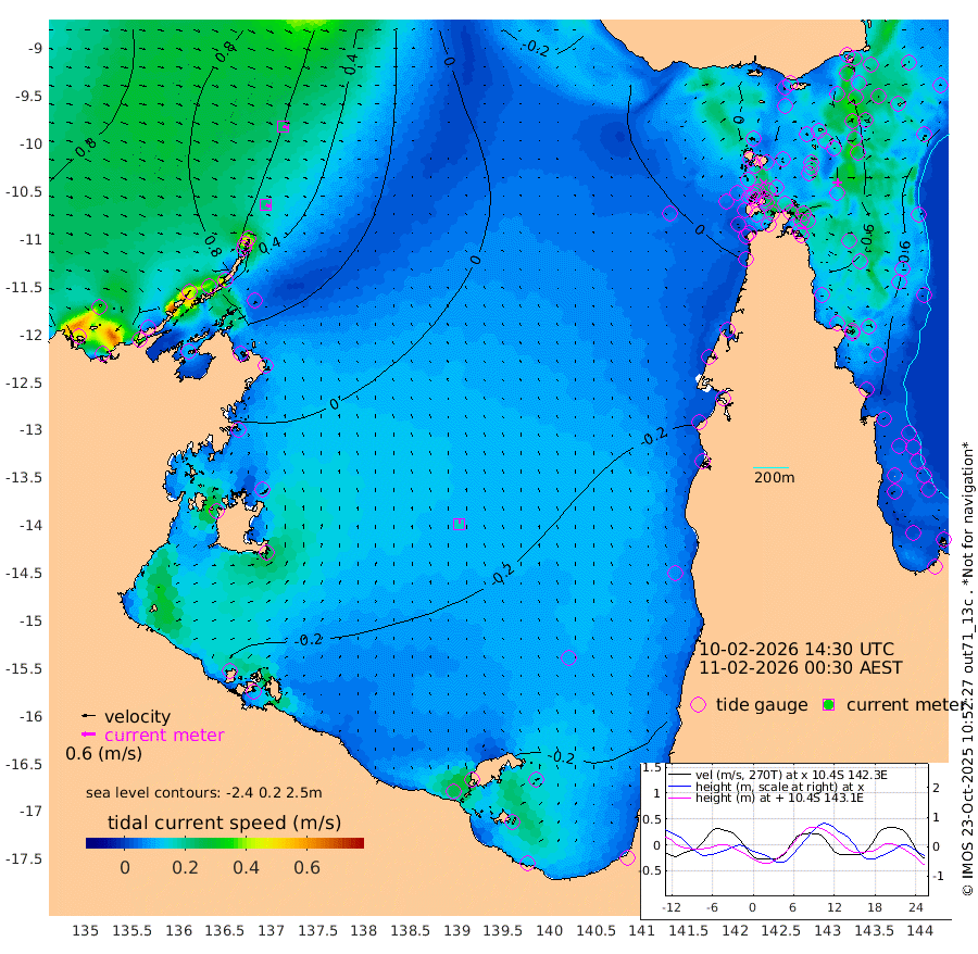 21cm/s 115T +3cm/s rms + 7cm/s -42T. ARA-GOC87 57m 18cm/s 4T +3cm/s rms + 2cm/s -2T. ARA-GOC87 60m 24cm/s 107T +2cm/s rms + 3cm/s 61T. ARA-GOC87 47m -39cm Daru -45cm Bobo Island -51cm Meer Island Barge -55cm Bramble Cay -51cm Unnamed Cay -45cm Pearce Cay -52cm Stephens Island -55cm Merrie England Shoals -47cm Mutacomal Reef -55cm Darnley Island Barge -58cm East Cay -48cm Yorke Island Barge -45cm Rennel Island -48cm Aureed Island -32cm Dungeness Reef -16cm Zagai Island -16cm Yam Island 5cm Dauan Island -10cm Saibai Island 2cm Phipi Reef -20cm Warrior Reef - West 10cm Mabuiag Island Barge -41cm Half Way Island -35cm Coconut Island -42cm Dugong Islet -21cm Poll Island -27cm Kirkcaldie Reef -16cm Suarji Island -28cm Sue Islet 23cm Hawkesbury Island -9cm Alert Patches -10cm Twin Island 26cm Badu Island 1cm St Pauls (Moa Island) 20cm Kubin (Moa Island) 2cm Ince Point 8cm Thursday Island 7cm Nardana Patches 8cm Turtle Head 23cm Round Island 16cm Goods Island 20cm Booby Island 17cm White Rocks Area -1cm Carpentaria 0cm Papou Point 21cm Bampfield Head 23cm Crab Island 15cm Red Wallis Island 12cm Packe Island -40cm Harrington Reef 16cm Herald Camp -2cm Sharp Point 5cm Red Island Point 7cm Possession Island -18cm Alpha Rock -22cm Frederick Point -35cm Wyborn Reef Light -30cm Tetley Island -45cm Triangle Reef -22cm Turtle Head Island -52cm Maclennan Cay -46cm Raine Island -49cm Mcsweeny Reef -53cm Collette Reef -50cm Shadwell Reef -58cm Hannibal Island -54cm Round Point 20cm Vrilya Point -59cm Cape Grenville -51cm Hicks Island -67cm Sir Charles Hardy Island -17cm Harvey Island -64cm Kay Reef -55cm Rocky Island -58cm Chapman Island -57cm Ham Reef -54cm Jubilee Reef -47cm Night Island -59cm Unnamed Reef No. 3 -56cm Morris Island -47cm 1st 3 Mile Opening -55cm Creech Reef -52cm Fife Island -65cm Eden Reef -59cm Stanley Island -63cm Normanby River 120cm Yabooma Island 124cm Hutchison River 113cm Elcho Island 112cm North West Crocodile Island 58cm Cape Wessel 105cm Stevens Island 31cm Guluwuru Island 88cm Hopeful Bay 81cm Auster Point 88cm Two Island Bay 105cm Cadell Strait -47cm Mallison Island 43cm Melville Bay (Gove Harbour) 46cm Truant Island 25cm Cape Arnhem 14cm Cape Grey 11cm Hawk Island 11cm Milner Bay (Groote Eylandt) -3cm Cape Beatrice -19cm West Island -19cm Centre Island -41cm Mornington Island -49cm West Wellesley Islands -47cm Bountiful Island -23cm Albert River Mouth -9cm Sweers Island -22cm Karumba -45cm Nassau River Offshore -48cm Christmas Creek -28cm Archer River -21cm Boyd Point -19cm Weipa (Humbug Point) 8cm Pennefather River 6cm Cullen Point