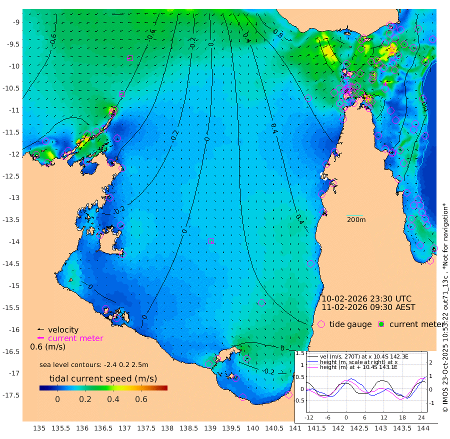23cm/s -99T +3cm/s rms + 7cm/s -42T. ARA-GOC87 57m 19cm/s 170T +3cm/s rms + 2cm/s -2T. ARA-GOC87 60m 28cm/s -106T +2cm/s rms + 3cm/s 61T. ARA-GOC87 47m 82cm Daru 83cm Bobo Island 55cm Meer Island Barge 67cm Bramble Cay 82cm Unnamed Cay 94cm Pearce Cay 83cm Stephens Island 82cm Merrie England Shoals 88cm Mutacomal Reef 73cm Darnley Island Barge 63cm East Cay 80cm Yorke Island Barge 92cm Rennel Island 90cm Aureed Island 95cm Dungeness Reef 68cm Zagai Island 77cm Yam Island 52cm Dauan Island 45cm Saibai Island 65cm Phipi Reef 72cm Warrior Reef - West 67cm Mabuiag Island Barge 91cm Half Way Island 92cm Coconut Island 100cm Dugong Islet 92cm Poll Island 96cm Kirkcaldie Reef 107cm Suarji Island 83cm Sue Islet 104cm Hawkesbury Island 109cm Alert Patches 103cm Twin Island 88cm Badu Island 97cm St Pauls (Moa Island) 94cm Kubin (Moa Island) 98cm Ince Point 100cm Thursday Island 98cm Nardana Patches 103cm Turtle Head 90cm Round Island 105cm Goods Island 106cm Booby Island 112cm White Rocks Area 92cm Carpentaria 85cm Papou Point 111cm Bampfield Head 79cm Crab Island 104cm Red Wallis Island 102cm Packe Island 111cm Harrington Reef 100cm Herald Camp 21cm Sharp Point 93cm Red Island Point 97cm Possession Island 86cm Alpha Rock 102cm Frederick Point 87cm Wyborn Reef Light 87cm Tetley Island 57cm Triangle Reef 103cm Turtle Head Island 64cm Maclennan Cay 45cm Raine Island 82cm Mcsweeny Reef 73cm Collette Reef 53cm Shadwell Reef 77cm Hannibal Island 73cm Round Point 76cm Vrilya Point 71cm Cape Grenville 64cm Hicks Island 67cm Sir Charles Hardy Island 22cm Harvey Island 62cm Kay Reef 53cm Rocky Island 51cm Chapman Island 48cm Ham Reef 50cm Jubilee Reef 49cm Night Island 52cm Unnamed Reef No. 3 55cm Morris Island 54cm 1st 3 Mile Opening 56cm Creech Reef 51cm Fife Island 55cm Eden Reef 56cm Stanley Island 61cm Normanby River -86cm Yabooma Island -97cm Hutchison River -94cm Elcho Island -89cm North West Crocodile Island -69cm Cape Wessel -99cm Stevens Island -76cm Guluwuru Island -89cm Hopeful Bay -71cm Auster Point -82cm Two Island Bay -108cm Cadell Strait -160cm Mallison Island -69cm Melville Bay (Gove Harbour) -70cm Truant Island -50cm Cape Arnhem -34cm Cape Grey -33cm Hawk Island -36cm Milner Bay (Groote Eylandt) -23cm Cape Beatrice -6cm West Island -6cm Centre Island -12cm Mornington Island -3cm West Wellesley Islands -14cm Bountiful Island -65cm Albert River Mouth -68cm Sweers Island -50cm Karumba 14cm Nassau River Offshore 38cm Christmas Creek 51cm Archer River 60cm Boyd Point 61cm Weipa (Humbug Point) 53cm Pennefather River 68cm Cullen Point