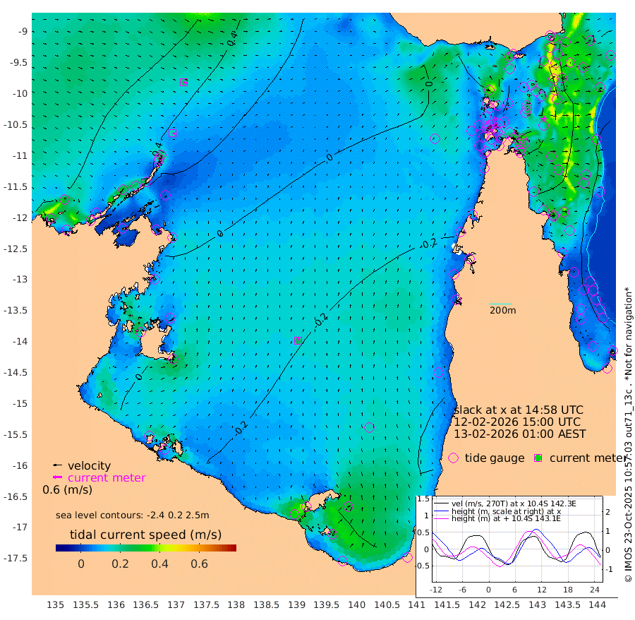 17cm/s 107T +3cm/s rms + 7cm/s -42T. ARA-GOC87 57m 23cm/s 11T +3cm/s rms + 2cm/s -2T. ARA-GOC87 60m 21cm/s 105T +2cm/s rms + 3cm/s 61T. ARA-GOC87 47m -61cm Daru -62cm Bobo Island -71cm Meer Island Barge -83cm Bramble Cay -80cm Unnamed Cay -67cm Pearce Cay -74cm Stephens Island -87cm Merrie England Shoals -74cm Mutacomal Reef -76cm Darnley Island Barge -81cm East Cay -67cm Yorke Island Barge -67cm Rennel Island -61cm Aureed Island -50cm Dungeness Reef -20cm Zagai Island -24cm Yam Island -4cm Dauan Island -15cm Saibai Island -21cm Phipi Reef -28cm Warrior Reef - West 0cm Mabuiag Island Barge -59cm Half Way Island -50cm Coconut Island -58cm Dugong Islet -32cm Poll Island -42cm Kirkcaldie Reef -19cm Suarji Island -40cm Sue Islet -14cm Hawkesbury Island -24cm Alert Patches -20cm Twin Island -3cm Badu Island -6cm St Pauls (Moa Island) -2cm Kubin (Moa Island) -10cm Ince Point -5cm Thursday Island -6cm Nardana Patches -13cm Turtle Head -6cm Round Island -11cm Goods Island -2cm Booby Island -3cm White Rocks Area 5cm Carpentaria -7cm Papou Point -6cm Bampfield Head 3cm Crab Island -3cm Red Wallis Island -11cm Packe Island -54cm Harrington Reef -14cm Herald Camp -2cm Sharp Point -17cm Red Island Point -11cm Possession Island -27cm Alpha Rock -35cm Frederick Point -58cm Wyborn Reef Light -51cm Tetley Island -62cm Triangle Reef -48cm Turtle Head Island -69cm Maclennan Cay -67cm Raine Island -71cm Mcsweeny Reef -78cm Collette Reef -74cm Shadwell Reef -86cm Hannibal Island -85cm Round Point 4cm Vrilya Point -84cm Cape Grenville -75cm Hicks Island -88cm Sir Charles Hardy Island -24cm Harvey Island -91cm Kay Reef -78cm Rocky Island -81cm Chapman Island -77cm Ham Reef -74cm Jubilee Reef -65cm Night Island -79cm Unnamed Reef No. 3 -79cm Morris Island -68cm 1st 3 Mile Opening -75cm Creech Reef -72cm Fife Island -92cm Eden Reef -84cm Stanley Island -88cm Normanby River 72cm Yabooma Island 72cm Hutchison River 71cm Elcho Island 70cm North West Crocodile Island 46cm Cape Wessel 64cm Stevens Island 17cm Guluwuru Island 47cm Hopeful Bay 54cm Auster Point 63cm Two Island Bay 63cm Cadell Strait -78cm Mallison Island 25cm Melville Bay (Gove Harbour) 31cm Truant Island 18cm Cape Arnhem 11cm Cape Grey 5cm Hawk Island 22cm Milner Bay (Groote Eylandt) 7cm Cape Beatrice 5cm West Island 5cm Centre Island -41cm Mornington Island -44cm West Wellesley Islands -55cm Bountiful Island -29cm Albert River Mouth -19cm Sweers Island -38cm Karumba -58cm Nassau River Offshore -65cm Christmas Creek -51cm Archer River -35cm Boyd Point -39cm Weipa (Humbug Point) -11cm Pennefather River -7cm Cullen Point