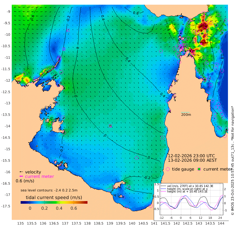 9cm/s -140T +3cm/s rms + 7cm/s -42T. ARA-GOC87 57m 27cm/s 166T +3cm/s rms + 2cm/s -2T. ARA-GOC87 60m 15cm/s -118T +2cm/s rms + 3cm/s 61T. ARA-GOC87 47m 116cm Daru 119cm Bobo Island 89cm Meer Island Barge 113cm Bramble Cay 127cm Unnamed Cay 129cm Pearce Cay 121cm Stephens Island 134cm Merrie England Shoals 134cm Mutacomal Reef 112cm Darnley Island Barge 102cm East Cay 114cm Yorke Island Barge 125cm Rennel Island 119cm Aureed Island 112cm Dungeness Reef 76cm Zagai Island 81cm Yam Island 41cm Dauan Island 43cm Saibai Island 51cm Phipi Reef 78cm Warrior Reef - West 57cm Mabuiag Island Barge 119cm Half Way Island 120cm Coconut Island 123cm Dugong Islet 105cm Poll Island 106cm Kirkcaldie Reef 101cm Suarji Island 98cm Sue Islet 96cm Hawkesbury Island 109cm Alert Patches 105cm Twin Island 74cm Badu Island 91cm St Pauls (Moa Island) 85cm Kubin (Moa Island) 91cm Ince Point 89cm Thursday Island 88cm Nardana Patches 90cm Turtle Head 85cm Round Island 89cm Goods Island 85cm Booby Island 92cm White Rocks Area 77cm Carpentaria 79cm Papou Point 106cm Bampfield Head 60cm Crab Island 89cm Red Wallis Island 98cm Packe Island 135cm Harrington Reef 89cm Herald Camp 18cm Sharp Point 77cm Red Island Point 92cm Possession Island 102cm Alpha Rock 117cm Frederick Point 131cm Wyborn Reef Light 127cm Tetley Island 92cm Triangle Reef 133cm Turtle Head Island 93cm Maclennan Cay 75cm Raine Island 121cm Mcsweeny Reef 116cm Collette Reef 92cm Shadwell Reef 126cm Hannibal Island 124cm Round Point 59cm Vrilya Point 115cm Cape Grenville 100cm Hicks Island 107cm Sir Charles Hardy Island 32cm Harvey Island 109cm Kay Reef 89cm Rocky Island 92cm Chapman Island 85cm Ham Reef 84cm Jubilee Reef 82cm Night Island 90cm Unnamed Reef No. 3 92cm Morris Island 80cm 1st 3 Mile Opening 88cm Creech Reef 91cm Fife Island 99cm Eden Reef 96cm Stanley Island 103cm Normanby River -56cm Yabooma Island -59cm Hutchison River -63cm Elcho Island -66cm North West Crocodile Island -20cm Cape Wessel -46cm Stevens Island -17cm Guluwuru Island -38cm Hopeful Bay -29cm Auster Point -41cm Two Island Bay -56cm Cadell Strait 40cm Mallison Island -19cm Melville Bay (Gove Harbour) -15cm Truant Island -14cm Cape Arnhem -25cm Cape Grey -22cm Hawk Island -52cm Milner Bay (Groote Eylandt) -45cm Cape Beatrice -52cm West Island -51cm Centre Island -50cm Mornington Island -44cm West Wellesley Islands -69cm Bountiful Island -128cm Albert River Mouth -129cm Sweers Island -111cm Karumba -13cm Nassau River Offshore 24cm Christmas Creek 46cm Archer River 55cm Boyd Point 52cm Weipa (Humbug Point) 47cm Pennefather River 58cm Cullen Point