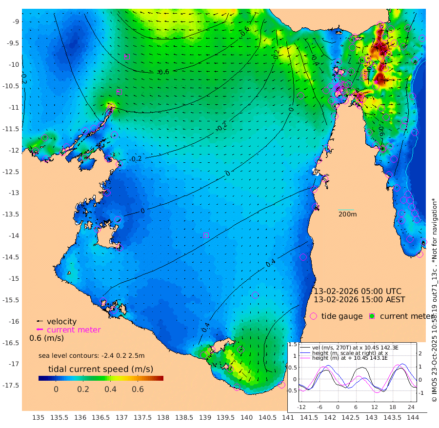 26cm/s -78T +3cm/s rms + 7cm/s -42T. ARA-GOC87 57m 14cm/s -130T +3cm/s rms + 2cm/s -2T. ARA-GOC87 60m 25cm/s -79T +2cm/s rms + 3cm/s 61T. ARA-GOC87 47m -42cm Daru -53cm Bobo Island -40cm Meer Island Barge -59cm Bramble Cay -61cm Unnamed Cay -59cm Pearce Cay -57cm Stephens Island -74cm Merrie England Shoals -63cm Mutacomal Reef -50cm Darnley Island Barge -47cm East Cay -46cm Yorke Island Barge -51cm Rennel Island -48cm Aureed Island -28cm Dungeness Reef 4cm Zagai Island 5cm Yam Island 72cm Dauan Island 59cm Saibai Island 71cm Phipi Reef 21cm Warrior Reef - West 35cm Mabuiag Island Barge -54cm Half Way Island -45cm Coconut Island -46cm Dugong Islet -26cm Poll Island -22cm Kirkcaldie Reef -1cm Suarji Island -17cm Sue Islet 28cm Hawkesbury Island -6cm Alert Patches -14cm Twin Island 38cm Badu Island 3cm St Pauls (Moa Island) 21cm Kubin (Moa Island) 6cm Ince Point 10cm Thursday Island 11cm Nardana Patches 23cm Turtle Head 24cm Round Island 26cm Goods Island 24cm Booby Island 10cm White Rocks Area -5cm Carpentaria 0cm Papou Point 13cm Bampfield Head 26cm Crab Island 14cm Red Wallis Island 12cm Packe Island -58cm Harrington Reef 41cm Herald Camp 6cm Sharp Point 24cm Red Island Point 6cm Possession Island -27cm Alpha Rock -31cm Frederick Point -62cm Wyborn Reef Light -56cm Tetley Island -37cm Triangle Reef -62cm Turtle Head Island -37cm Maclennan Cay -30cm Raine Island -56cm Mcsweeny Reef -54cm Collette Reef -38cm Shadwell Reef -64cm Hannibal Island -66cm Round Point 12cm Vrilya Point -58cm Cape Grenville -43cm Hicks Island -39cm Sir Charles Hardy Island -14cm Harvey Island -57cm Kay Reef -36cm Rocky Island -40cm Chapman Island -34cm Ham Reef -35cm Jubilee Reef -37cm Night Island -40cm Unnamed Reef No. 3 -41cm Morris Island -30cm 1st 3 Mile Opening -36cm Creech Reef -43cm Fife Island -47cm Eden Reef -46cm Stanley Island -55cm Normanby River -38cm Yabooma Island -38cm Hutchison River -37cm Elcho Island -28cm North West Crocodile Island -64cm Cape Wessel -63cm Stevens Island -47cm Guluwuru Island -52cm Hopeful Bay -55cm Auster Point -50cm Two Island Bay -43cm Cadell Strait -128cm Mallison Island -41cm Melville Bay (Gove Harbour) -52cm Truant Island -29cm Cape Arnhem -8cm Cape Grey -5cm Hawk Island 0cm Milner Bay (Groote Eylandt) 13cm Cape Beatrice 22cm West Island 21cm Centre Island 70cm Mornington Island 63cm West Wellesley Islands 102cm Bountiful Island 115cm Albert River Mouth 102cm Sweers Island 123cm Karumba 70cm Nassau River Offshore 61cm Christmas Creek 38cm Archer River 30cm Boyd Point 42cm Weipa (Humbug Point) 11cm Pennefather River 22cm Cullen Point