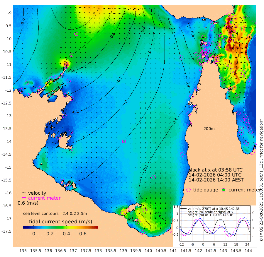35cm/s -85T +3cm/s rms + 7cm/s -42T. ARA-GOC87 57m 19cm/s -160T +3cm/s rms + 2cm/s -2T. ARA-GOC87 60m 37cm/s -89T +2cm/s rms + 3cm/s 61T. ARA-GOC87 47m -7cm Daru -19cm Bobo Island -40cm Meer Island Barge -52cm Bramble Cay -41cm Unnamed Cay -26cm Pearce Cay -37cm Stephens Island -57cm Merrie England Shoals -29cm Mutacomal Reef -36cm Darnley Island Barge -42cm East Cay -20cm Yorke Island Barge -17cm Rennel Island -10cm Aureed Island 16cm Dungeness Reef 55cm Zagai Island 57cm Yam Island 128cm Dauan Island 108cm Saibai Island 123cm Phipi Reef 77cm Warrior Reef - West 90cm Mabuiag Island Barge -23cm Half Way Island 1cm Coconut Island -6cm Dugong Islet 28cm Poll Island 25cm Kirkcaldie Reef 70cm Suarji Island 30cm Sue Islet 85cm Hawkesbury Island 60cm Alert Patches 53cm Twin Island 91cm Badu Island 72cm St Pauls (Moa Island) 82cm Kubin (Moa Island) 71cm Ince Point 74cm Thursday Island 75cm Nardana Patches 84cm Turtle Head 83cm Round Island 80cm Goods Island 79cm Booby Island 67cm White Rocks Area 48cm Carpentaria 57cm Papou Point 76cm Bampfield Head 69cm Crab Island 74cm Red Wallis Island 77cm Packe Island -8cm Harrington Reef 103cm Herald Camp 25cm Sharp Point 74cm Red Island Point 68cm Possession Island 29cm Alpha Rock 28cm Frederick Point -21cm Wyborn Reef Light -10cm Tetley Island -22cm Triangle Reef -21cm Turtle Head Island -28cm Maclennan Cay -35cm Raine Island -32cm Mcsweeny Reef -37cm Collette Reef -36cm Shadwell Reef -50cm Hannibal Island -54cm Round Point 51cm Vrilya Point -49cm Cape Grenville -38cm Hicks Island -33cm Sir Charles Hardy Island -11cm Harvey Island -58cm Kay Reef -39cm Rocky Island -41cm Chapman Island -38cm Ham Reef -40cm Jubilee Reef -34cm Night Island -41cm Unnamed Reef No. 3 -45cm Morris Island -35cm 1st 3 Mile Opening -38cm Creech Reef -40cm Fife Island -58cm Eden Reef -52cm Stanley Island -60cm Normanby River -97cm Yabooma Island -106cm Hutchison River -99cm Elcho Island -88cm North West Crocodile Island -97cm Cape Wessel -120cm Stevens Island -93cm Guluwuru Island -104cm Hopeful Bay -95cm Auster Point -93cm Two Island Bay -107cm Cadell Strait -199cm Mallison Island -79cm Melville Bay (Gove Harbour) -86cm Truant Island -52cm Cape Arnhem -34cm Cape Grey -22cm Hawk Island -21cm Milner Bay (Groote Eylandt) -6cm Cape Beatrice 12cm West Island 13cm Centre Island 52cm Mornington Island 44cm West Wellesley Islands 65cm Bountiful Island 54cm Albert River Mouth 44cm Sweers Island 75cm Karumba 64cm Nassau River Offshore 69cm Christmas Creek 53cm Archer River 57cm Boyd Point 64cm Weipa (Humbug Point) 36cm Pennefather River 63cm Cullen Point