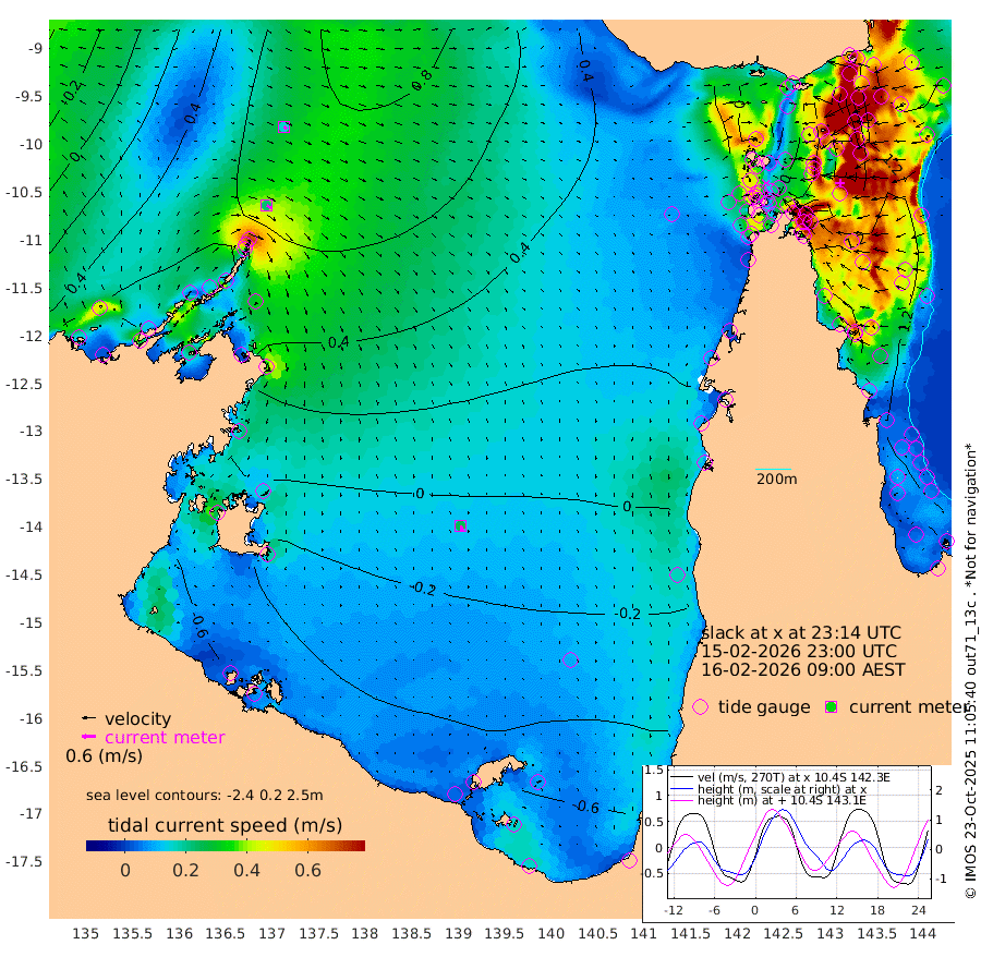 23cm/s 126T +3cm/s rms + 7cm/s -42T. ARA-GOC87 57m 26cm/s 165T +3cm/s rms + 2cm/s -2T. ARA-GOC87 60m 15cm/s 134T +2cm/s rms + 3cm/s 61T. ARA-GOC87 47m 132cm Daru 130cm Bobo Island 118cm Meer Island Barge 147cm Bramble Cay 157cm Unnamed Cay 143cm Pearce Cay 147cm Stephens Island 167cm Merrie England Shoals 153cm Mutacomal Reef 136cm Darnley Island Barge 128cm East Cay 130cm Yorke Island Barge 141cm Rennel Island 122cm Aureed Island 116cm Dungeness Reef 61cm Zagai Island 72cm Yam Island 17cm Dauan Island 11cm Saibai Island 19cm Phipi Reef 60cm Warrior Reef - West 31cm Mabuiag Island Barge 139cm Half Way Island 120cm Coconut Island 136cm Dugong Islet 100cm Poll Island 106cm Kirkcaldie Reef 67cm Suarji Island 90cm Sue Islet 89cm Hawkesbury Island 85cm Alert Patches 85cm Twin Island 65cm Badu Island 68cm St Pauls (Moa Island) 79cm Kubin (Moa Island) 72cm Ince Point 70cm Thursday Island 69cm Nardana Patches 76cm Turtle Head 72cm Round Island 84cm Goods Island 76cm Booby Island 85cm White Rocks Area 54cm Carpentaria 63cm Papou Point 91cm Bampfield Head 51cm Crab Island 77cm Red Wallis Island 88cm Packe Island 138cm Harrington Reef 73cm Herald Camp 5cm Sharp Point 54cm Red Island Point 67cm Possession Island 92cm Alpha Rock 107cm Frederick Point 146cm Wyborn Reef Light 137cm Tetley Island 106cm Triangle Reef 155cm Turtle Head Island 115cm Maclennan Cay 102cm Raine Island 142cm Mcsweeny Reef 138cm Collette Reef 117cm Shadwell Reef 154cm Hannibal Island 155cm Round Point 48cm Vrilya Point 141cm Cape Grenville 128cm Hicks Island 134cm Sir Charles Hardy Island 40cm Harvey Island 139cm Kay Reef 114cm Rocky Island 112cm Chapman Island 106cm Ham Reef 113cm Jubilee Reef 104cm Night Island 110cm Unnamed Reef No. 3 122cm Morris Island 112cm 1st 3 Mile Opening 114cm Creech Reef 115cm Fife Island 137cm Eden Reef 128cm Stanley Island 139cm Normanby River 84cm Yabooma Island 100cm Hutchison River 73cm Elcho Island 62cm North West Crocodile Island 71cm Cape Wessel 87cm Stevens Island 85cm Guluwuru Island 73cm Hopeful Bay 72cm Auster Point 71cm Two Island Bay 90cm Cadell Strait 171cm Mallison Island 68cm Melville Bay (Gove Harbour) 77cm Truant Island 41cm Cape Arnhem 5cm Cape Grey -10cm Hawk Island -57cm Milner Bay (Groote Eylandt) -57cm Cape Beatrice -97cm West Island -104cm Centre Island -100cm Mornington Island -90cm West Wellesley Islands -117cm Bountiful Island -154cm Albert River Mouth -176cm Sweers Island -156cm Karumba -52cm Nassau River Offshore -8cm Christmas Creek 25cm Archer River 38cm Boyd Point 39cm Weipa (Humbug Point) 36cm Pennefather River 40cm Cullen Point