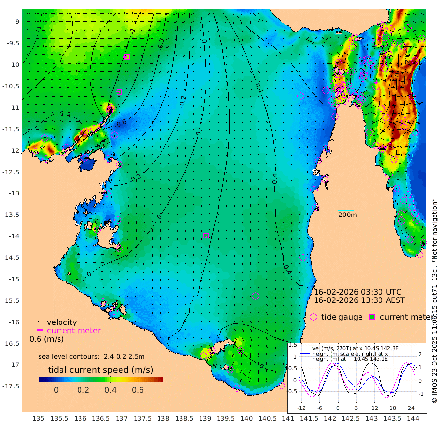 31cm/s -87T +3cm/s rms + 7cm/s -42T. ARA-GOC87 57m 28cm/s 179T +3cm/s rms + 2cm/s -2T. ARA-GOC87 60m 39cm/s -91T +2cm/s rms + 3cm/s 61T. ARA-GOC87 47m 51cm Daru 36cm Bobo Island -26cm Meer Island Barge -19cm Bramble Cay 9cm Unnamed Cay 21cm Pearce Cay 3cm Stephens Island -3cm Merrie England Shoals 40cm Mutacomal Reef -1cm Darnley Island Barge -24cm East Cay 25cm Yorke Island Barge 35cm Rennel Island 41cm Aureed Island 66cm Dungeness Reef 113cm Zagai Island 115cm Yam Island 170cm Dauan Island 156cm Saibai Island 155cm Phipi Reef 137cm Warrior Reef - West 132cm Mabuiag Island Barge 27cm Half Way Island 65cm Coconut Island 49cm Dugong Islet 91cm Poll Island 80cm Kirkcaldie Reef 130cm Suarji Island 88cm Sue Islet 105cm Hawkesbury Island 119cm Alert Patches 117cm Twin Island 113cm Badu Island 134cm St Pauls (Moa Island) 114cm Kubin (Moa Island) 122cm Ince Point 119cm Thursday Island 122cm Nardana Patches 116cm Turtle Head 108cm Round Island 96cm Goods Island 89cm Booby Island 84cm White Rocks Area 73cm Carpentaria 107cm Papou Point 96cm Bampfield Head 76cm Crab Island 98cm Red Wallis Island 116cm Packe Island 57cm Harrington Reef 119cm Herald Camp 46cm Sharp Point 95cm Red Island Point 107cm Possession Island 100cm Alpha Rock 94cm Frederick Point 51cm Wyborn Reef Light 65cm Tetley Island 5cm Triangle Reef 34cm Turtle Head Island -11cm Maclennan Cay -31cm Raine Island 16cm Mcsweeny Reef 5cm Collette Reef -15cm Shadwell Reef -6cm Hannibal Island -16cm Round Point 62cm Vrilya Point -18cm Cape Grenville -18cm Hicks Island -10cm Sir Charles Hardy Island -4cm Harvey Island -35cm Kay Reef -29cm Rocky Island -29cm Chapman Island -28cm Ham Reef -31cm Jubilee Reef -21cm Night Island -27cm Unnamed Reef No. 3 -34cm Morris Island -33cm 1st 3 Mile Opening -30cm Creech Reef -22cm Fife Island -53cm Eden Reef -41cm Stanley Island -49cm Normanby River -156cm Yabooma Island -171cm Hutchison River -156cm Elcho Island -148cm North West Crocodile Island -103cm Cape Wessel -148cm Stevens Island -95cm Guluwuru Island -136cm Hopeful Bay -120cm Auster Point -121cm Two Island Bay -149cm Cadell Strait -90cm Mallison Island -85cm Melville Bay (Gove Harbour) -87cm Truant Island -51cm Cape Arnhem -50cm Cape Grey -31cm Hawk Island -41cm Milner Bay (Groote Eylandt) -25cm Cape Beatrice -8cm West Island -8cm Centre Island 19cm Mornington Island 14cm West Wellesley Islands 1cm Bountiful Island -24cm Albert River Mouth -41cm Sweers Island -3cm Karumba 42cm Nassau River Offshore 62cm Christmas Creek 50cm Archer River 63cm Boyd Point 61cm Weipa (Humbug Point) 42cm Pennefather River 75cm Cullen Point
