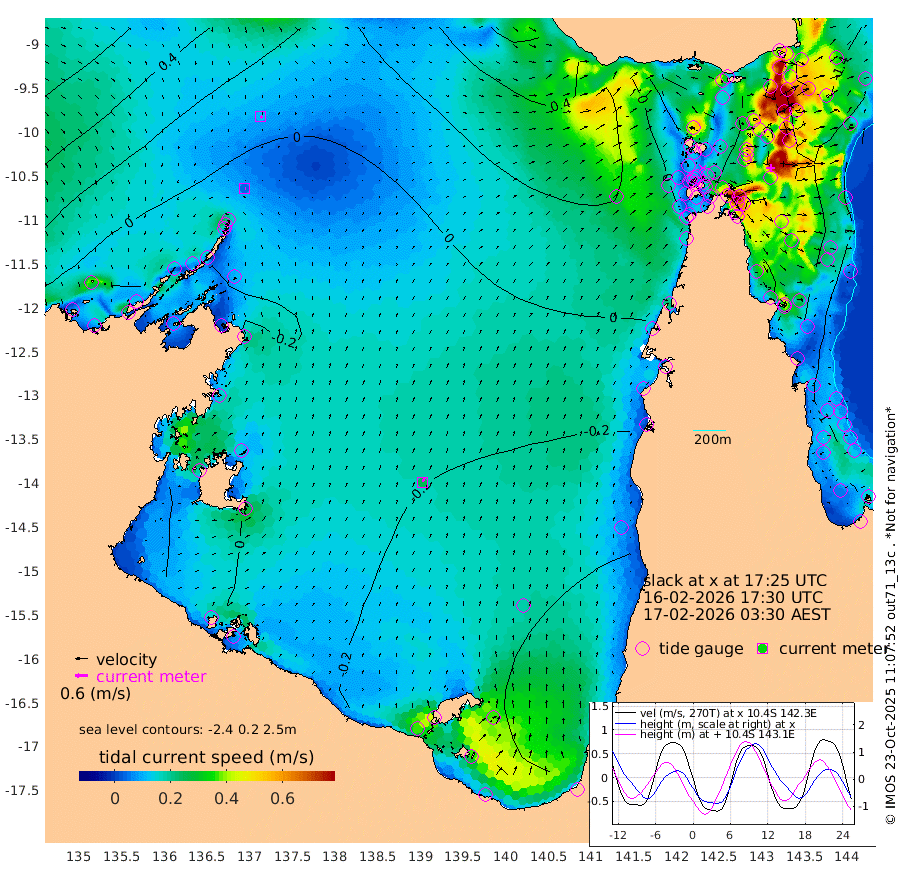 4cm/s 99T +3cm/s rms + 7cm/s -42T. ARA-GOC87 57m 25cm/s 21T +3cm/s rms + 2cm/s -2T. ARA-GOC87 60m 11cm/s 124T +2cm/s rms + 3cm/s 61T. ARA-GOC87 47m -143cm Daru -135cm Bobo Island -102cm Meer Island Barge -136cm Bramble Cay -153cm Unnamed Cay -142cm Pearce Cay -141cm Stephens Island -161cm Merrie England Shoals -156cm Mutacomal Reef -128cm Darnley Island Barge -117cm East Cay -128cm Yorke Island Barge -143cm Rennel Island -124cm Aureed Island -128cm Dungeness Reef -79cm Zagai Island -90cm Yam Island -50cm Dauan Island -34cm Saibai Island -82cm Phipi Reef -92cm Warrior Reef - West -29cm Mabuiag Island Barge -136cm Half Way Island -124cm Coconut Island -135cm Dugong Islet -107cm Poll Island -117cm Kirkcaldie Reef -82cm Suarji Island -96cm Sue Islet -42cm Hawkesbury Island -85cm Alert Patches -84cm Twin Island -29cm Badu Island -71cm St Pauls (Moa Island) -47cm Kubin (Moa Island) -61cm Ince Point -49cm Thursday Island -52cm Nardana Patches -52cm Turtle Head -45cm Round Island -33cm Goods Island -4cm Booby Island -16cm White Rocks Area 46cm Carpentaria -60cm Papou Point -14cm Bampfield Head -2cm Crab Island -10cm Red Wallis Island -50cm Packe Island -138cm Harrington Reef -39cm Herald Camp -17cm Sharp Point -43cm Red Island Point -62cm Possession Island -85cm Alpha Rock -107cm Frederick Point -141cm Wyborn Reef Light -133cm Tetley Island -93cm Triangle Reef -141cm Turtle Head Island -100cm Maclennan Cay -85cm Raine Island -136cm Mcsweeny Reef -133cm Collette Reef -106cm Shadwell Reef -147cm Hannibal Island -144cm Round Point 13cm Vrilya Point -129cm Cape Grenville -118cm Hicks Island -116cm Sir Charles Hardy Island -38cm Harvey Island -120cm Kay Reef -100cm Rocky Island -94cm Chapman Island -86cm Ham Reef -93cm Jubilee Reef -91cm Night Island -90cm Unnamed Reef No. 3 -103cm Morris Island -89cm 1st 3 Mile Opening -95cm Creech Reef -103cm Fife Island -113cm Eden Reef -109cm Stanley Island -119cm Normanby River -26cm Yabooma Island -36cm Hutchison River -16cm Elcho Island -17cm North West Crocodile Island 2cm Cape Wessel -25cm Stevens Island -23cm Guluwuru Island -25cm Hopeful Bay -9cm Auster Point -7cm Two Island Bay -34cm Cadell Strait -89cm Mallison Island -21cm Melville Bay (Gove Harbour) -17cm Truant Island -10cm Cape Arnhem -2cm Cape Grey -13cm Hawk Island 21cm Milner Bay (Groote Eylandt) 7cm Cape Beatrice 26cm West Island 28cm Centre Island -44cm Mornington Island -43cm West Wellesley Islands -54cm Bountiful Island -49cm Albert River Mouth -36cm Sweers Island -62cm Karumba -69cm Nassau River Offshore -71cm Christmas Creek -45cm Archer River -23cm Boyd Point -33cm Weipa (Humbug Point) -11cm Pennefather River 3cm Cullen Point
