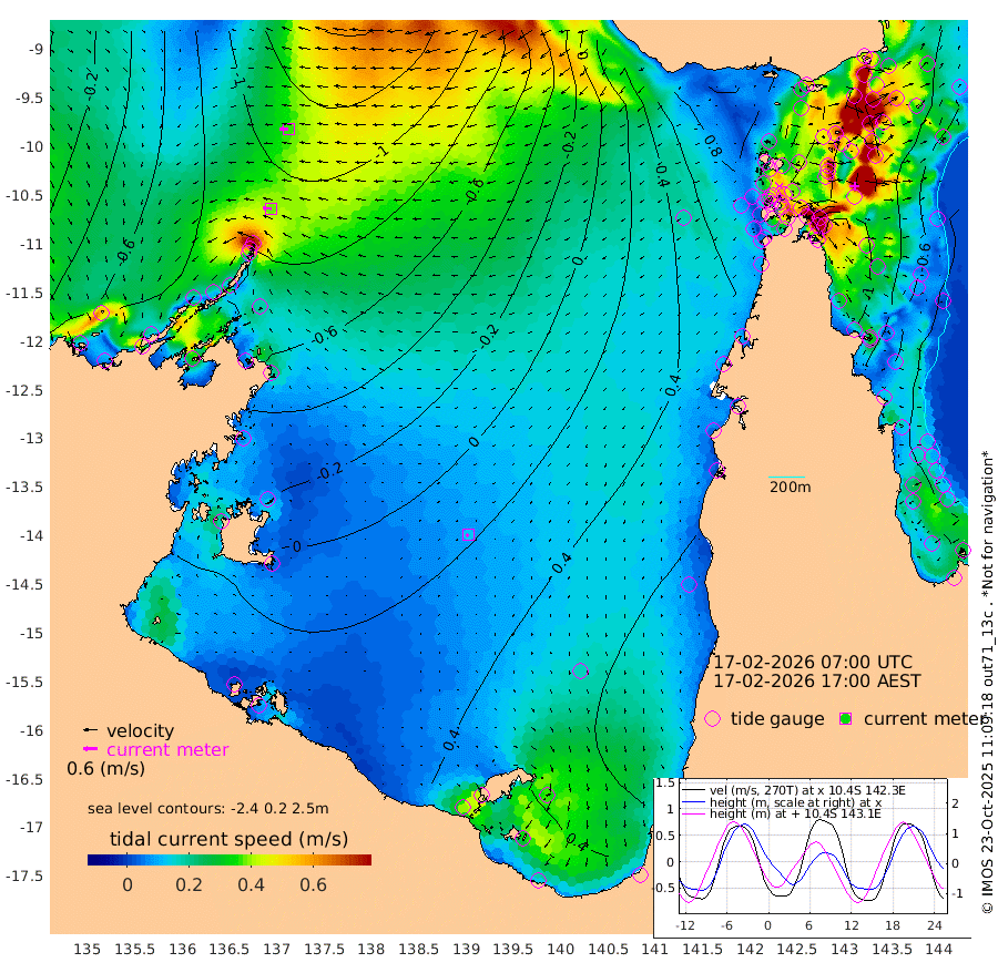 38cm/s -84T +3cm/s rms + 7cm/s -42T. ARA-GOC87 57m 13cm/s -127T +3cm/s rms + 2cm/s -2T. ARA-GOC87 60m 37cm/s -90T +2cm/s rms + 3cm/s 61T. ARA-GOC87 47m -114cm Daru -118cm Bobo Island -58cm Meer Island Barge -91cm Bramble Cay -115cm Unnamed Cay -113cm Pearce Cay -103cm Stephens Island -120cm Merrie England Shoals -126cm Mutacomal Reef -91cm Darnley Island Barge -64cm East Cay -102cm Yorke Island Barge -108cm Rennel Island -103cm Aureed Island -95cm Dungeness Reef -78cm Zagai Island -73cm Yam Island -11cm Dauan Island -22cm Saibai Island -11cm Phipi Reef -65cm Warrior Reef - West -25cm Mabuiag Island Barge -106cm Half Way Island -110cm Coconut Island -108cm Dugong Islet -95cm Poll Island -90cm Kirkcaldie Reef -74cm Suarji Island -91cm Sue Islet 22cm Hawkesbury Island -67cm Alert Patches -75cm Twin Island 9cm Badu Island -69cm St Pauls (Moa Island) -1cm Kubin (Moa Island) -42cm Ince Point -26cm Thursday Island -29cm Nardana Patches 0cm Turtle Head 16cm Round Island 28cm Goods Island 51cm Booby Island 29cm White Rocks Area 43cm Carpentaria -62cm Papou Point 37cm Bampfield Head 54cm Crab Island 44cm Red Wallis Island 18cm Packe Island -123cm Harrington Reef 59cm Herald Camp -16cm Sharp Point 2cm Red Island Point -31cm Possession Island -86cm Alpha Rock -97cm Frederick Point -131cm Wyborn Reef Light -127cm Tetley Island -56cm Triangle Reef -133cm Turtle Head Island -53cm Maclennan Cay -33cm Raine Island -105cm Mcsweeny Reef -94cm Collette Reef -57cm Shadwell Reef -105cm Hannibal Island -94cm Round Point 53cm Vrilya Point -77cm Cape Grenville -66cm Hicks Island -60cm Sir Charles Hardy Island -21cm Harvey Island -67cm Kay Reef -45cm Rocky Island -39cm Chapman Island -35cm Ham Reef -44cm Jubilee Reef -39cm Night Island -38cm Unnamed Reef No. 3 -49cm Morris Island -37cm 1st 3 Mile Opening -40cm Creech Reef -50cm Fife Island -47cm Eden Reef -48cm Stanley Island -60cm Normanby River -100cm Yabooma Island -123cm Hutchison River -97cm Elcho Island -88cm North West Crocodile Island -115cm Cape Wessel -127cm Stevens Island -126cm Guluwuru Island -96cm Hopeful Bay -109cm Auster Point -102cm Two Island Bay -132cm Cadell Strait -198cm Mallison Island -109cm Melville Bay (Gove Harbour) -121cm Truant Island -77cm Cape Arnhem -55cm Cape Grey -29cm Hawk Island -10cm Milner Bay (Groote Eylandt) 6cm Cape Beatrice 33cm West Island 43cm Centre Island 74cm Mornington Island 64cm West Wellesley Islands 80cm Bountiful Island 98cm Albert River Mouth 87cm Sweers Island 114cm Karumba 82cm Nassau River Offshore 77cm Christmas Creek 64cm Archer River 53cm Boyd Point 67cm Weipa (Humbug Point) 45cm Pennefather River 65cm Cullen Point