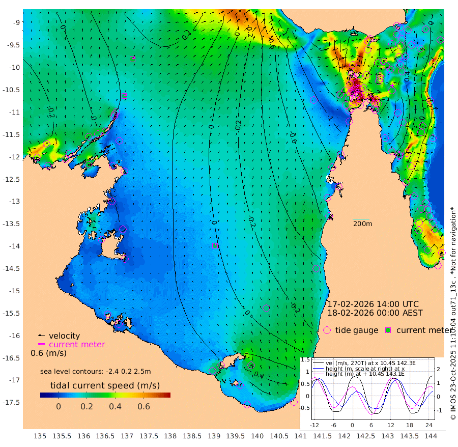 24cm/s 60T +3cm/s rms + 7cm/s -42T. ARA-GOC87 57m 23cm/s 3T +3cm/s rms + 2cm/s -2T. ARA-GOC87 60m 29cm/s 56T +2cm/s rms + 3cm/s 61T. ARA-GOC87 47m 72cm Daru 72cm Bobo Island -7cm Meer Island Barge 22cm Bramble Cay 50cm Unnamed Cay 52cm Pearce Cay 37cm Stephens Island 51cm Merrie England Shoals 72cm Mutacomal Reef 30cm Darnley Island Barge -3cm East Cay 50cm Yorke Island Barge 51cm Rennel Island 57cm Aureed Island 55cm Dungeness Reef 71cm Zagai Island 54cm Yam Island 21cm Dauan Island 34cm Saibai Island 41cm Phipi Reef 63cm Warrior Reef - West 10cm Mabuiag Island Barge 46cm Half Way Island 70cm Coconut Island 50cm Dugong Islet 62cm Poll Island 54cm Kirkcaldie Reef 61cm Suarji Island 64cm Sue Islet -111cm Hawkesbury Island 36cm Alert Patches 41cm Twin Island -75cm Badu Island 45cm St Pauls (Moa Island) -67cm Kubin (Moa Island) 3cm Ince Point -22cm Thursday Island -15cm Nardana Patches -60cm Turtle Head -73cm Round Island -118cm Goods Island -151cm Booby Island -130cm White Rocks Area -137cm Carpentaria 34cm Papou Point -137cm Bampfield Head -125cm Crab Island -139cm Red Wallis Island -94cm Packe Island 71cm Harrington Reef -132cm Herald Camp 25cm Sharp Point -46cm Red Island Point 1cm Possession Island 51cm Alpha Rock 57cm Frederick Point 78cm Wyborn Reef Light 78cm Tetley Island 1cm Triangle Reef 64cm Turtle Head Island -12cm Maclennan Cay -29cm Raine Island 45cm Mcsweeny Reef 37cm Collette Reef 0cm Shadwell Reef 40cm Hannibal Island 23cm Round Point -125cm Vrilya Point 9cm Cape Grenville 1cm Hicks Island -15cm Sir Charles Hardy Island 2cm Harvey Island -6cm Kay Reef -19cm Rocky Island -25cm Chapman Island -29cm Ham Reef -23cm Jubilee Reef -18cm Night Island -28cm Unnamed Reef No. 3 -21cm Morris Island -33cm 1st 3 Mile Opening -27cm Creech Reef -12cm Fife Island -35cm Eden Reef -25cm Stanley Island -19cm Normanby River -5cm Yabooma Island 6cm Hutchison River 2cm Elcho Island 2cm North West Crocodile Island 32cm Cape Wessel 37cm Stevens Island 49cm Guluwuru Island 22cm Hopeful Bay 29cm Auster Point 17cm Two Island Bay 35cm Cadell Strait 124cm Mallison Island 50cm Melville Bay (Gove Harbour) 51cm Truant Island 43cm Cape Arnhem 54cm Cape Grey 55cm Hawk Island 67cm Milner Bay (Groote Eylandt) 54cm Cape Beatrice 62cm West Island 60cm Centre Island 59cm Mornington Island 56cm West Wellesley Islands 68cm Bountiful Island 83cm Albert River Mouth 123cm Sweers Island 79cm Karumba 7cm Nassau River Offshore -37cm Christmas Creek -74cm Archer River -90cm Boyd Point -105cm Weipa (Humbug Point) -81cm Pennefather River -122cm Cullen Point