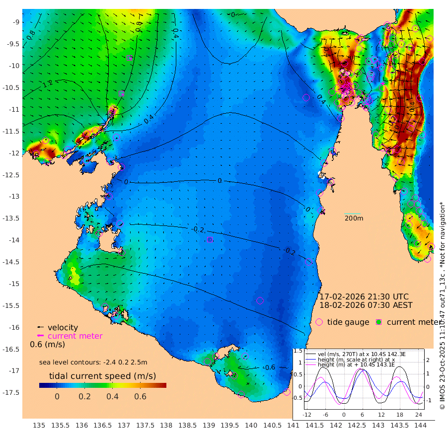 21cm/s 135T +3cm/s rms + 7cm/s -42T. ARA-GOC87 57m 3cm/s 108T +3cm/s rms + 2cm/s -2T. ARA-GOC87 60m 23cm/s 134T +2cm/s rms + 3cm/s 61T. ARA-GOC87 47m -42cm Daru -29cm Bobo Island 49cm Meer Island Barge 32cm Bramble Cay 1cm Unnamed Cay -2cm Pearce Cay 14cm Stephens Island 7cm Merrie England Shoals -33cm Mutacomal Reef 16cm Darnley Island Barge 48cm East Cay -11cm Yorke Island Barge -14cm Rennel Island -24cm Aureed Island -40cm Dungeness Reef -90cm Zagai Island -79cm Yam Island -105cm Dauan Island -106cm Saibai Island -115cm Phipi Reef -103cm Warrior Reef - West -63cm Mabuiag Island Barge -7cm Half Way Island -47cm Coconut Island -21cm Dugong Islet -60cm Poll Island -51cm Kirkcaldie Reef -84cm Suarji Island -64cm Sue Islet 48cm Hawkesbury Island -61cm Alert Patches -62cm Twin Island 15cm Badu Island -78cm St Pauls (Moa Island) 10cm Kubin (Moa Island) -44cm Ince Point -25cm Thursday Island -32cm Nardana Patches 2cm Turtle Head 12cm Round Island 56cm Goods Island 81cm Booby Island 76cm White Rocks Area 76cm Carpentaria -55cm Papou Point 75cm Bampfield Head 56cm Crab Island 66cm Red Wallis Island 23cm Packe Island -35cm Harrington Reef 41cm Herald Camp -42cm Sharp Point -1cm Red Island Point -35cm Possession Island -61cm Alpha Rock -55cm Frederick Point -39cm Wyborn Reef Light -49cm Tetley Island 24cm Triangle Reef -11cm Turtle Head Island 45cm Maclennan Cay 61cm Raine Island 0cm Mcsweeny Reef 6cm Collette Reef 35cm Shadwell Reef 14cm Hannibal Island 33cm Round Point 61cm Vrilya Point 37cm Cape Grenville 42cm Hicks Island 50cm Sir Charles Hardy Island 11cm Harvey Island 56cm Kay Reef 57cm Rocky Island 60cm Chapman Island 61cm Ham Reef 60cm Jubilee Reef 47cm Night Island 60cm Unnamed Reef No. 3 64cm Morris Island 69cm 1st 3 Mile Opening 63cm Creech Reef 49cm Fife Island 86cm Eden Reef 69cm Stanley Island 75cm Normanby River 161cm Yabooma Island 173cm Hutchison River 151cm Elcho Island 142cm North West Crocodile Island 93cm Cape Wessel 121cm Stevens Island 69cm Guluwuru Island 114cm Hopeful Bay 106cm Auster Point 112cm Two Island Bay 127cm Cadell Strait -17cm Mallison Island 58cm Melville Bay (Gove Harbour) 64cm Truant Island 27cm Cape Arnhem 7cm Cape Grey -19cm Hawk Island -35cm Milner Bay (Groote Eylandt) -40cm Cape Beatrice -72cm West Island -76cm Centre Island -109cm Mornington Island -97cm West Wellesley Islands -101cm Bountiful Island -119cm Albert River Mouth -135cm Sweers Island -132cm Karumba -76cm Nassau River Offshore -43cm Christmas Creek 10cm Archer River 25cm Boyd Point 36cm Weipa (Humbug Point) 30cm Pennefather River 45cm Cullen Point