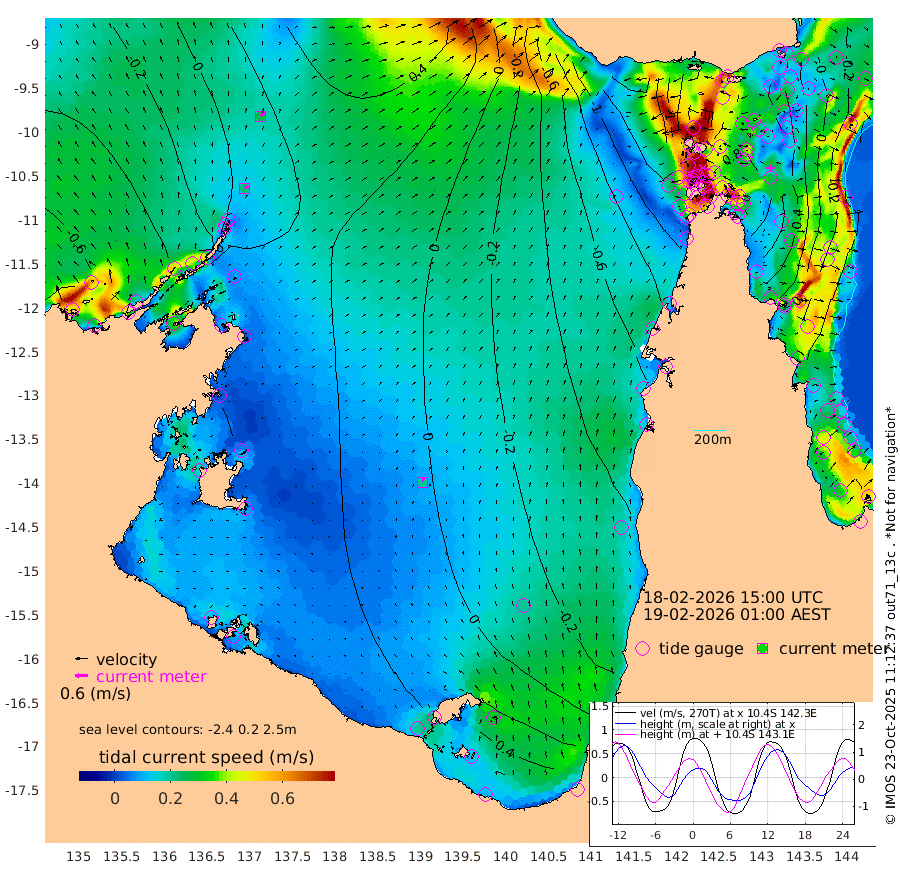 22cm/s 59T +3cm/s rms + 7cm/s -42T. ARA-GOC87 57m 20cm/s 11T +3cm/s rms + 2cm/s -2T. ARA-GOC87 60m 26cm/s 53T +2cm/s rms + 3cm/s 61T. ARA-GOC87 47m 60cm Daru 57cm Bobo Island -20cm Meer Island Barge 2cm Bramble Cay 32cm Unnamed Cay 33cm Pearce Cay 18cm Stephens Island 29cm Merrie England Shoals 55cm Mutacomal Reef 16cm Darnley Island Barge -21cm East Cay 39cm Yorke Island Barge 34cm Rennel Island 45cm Aureed Island 46cm Dungeness Reef 77cm Zagai Island 57cm Yam Island 41cm Dauan Island 55cm Saibai Island 55cm Phipi Reef 71cm Warrior Reef - West 23cm Mabuiag Island Barge 30cm Half Way Island 61cm Coconut Island 37cm Dugong Islet 57cm Poll Island 47cm Kirkcaldie Reef 65cm Suarji Island 64cm Sue Islet -108cm Hawkesbury Island 38cm Alert Patches 43cm Twin Island -67cm Badu Island 52cm St Pauls (Moa Island) -62cm Kubin (Moa Island) 8cm Ince Point -16cm Thursday Island -8cm Nardana Patches -55cm Turtle Head -65cm Round Island -114cm Goods Island -143cm Booby Island -130cm White Rocks Area -119cm Carpentaria 37cm Papou Point -124cm Bampfield Head -118cm Crab Island -134cm Red Wallis Island -90cm Packe Island 56cm Harrington Reef -121cm Herald Camp 29cm Sharp Point -45cm Red Island Point 6cm Possession Island 51cm Alpha Rock 52cm Frederick Point 65cm Wyborn Reef Light 68cm Tetley Island -9cm Triangle Reef 49cm Turtle Head Island -25cm Maclennan Cay -42cm Raine Island 30cm Mcsweeny Reef 22cm Collette Reef -12cm Shadwell Reef 22cm Hannibal Island 0cm Round Point -116cm Vrilya Point -9cm Cape Grenville -16cm Hicks Island -29cm Sir Charles Hardy Island -3cm Harvey Island -25cm Kay Reef -34cm Rocky Island -41cm Chapman Island -42cm Ham Reef -36cm Jubilee Reef -30cm Night Island -42cm Unnamed Reef No. 3 -37cm Morris Island -44cm 1st 3 Mile Opening -41cm Creech Reef -29cm Fife Island -54cm Eden Reef -42cm Stanley Island -42cm Normanby River -49cm Yabooma Island -40cm Hutchison River -39cm Elcho Island -40cm North West Crocodile Island 11cm Cape Wessel 0cm Stevens Island 39cm Guluwuru Island -11cm Hopeful Bay 3cm Auster Point -7cm Two Island Bay 0cm Cadell Strait 133cm Mallison Island 38cm Melville Bay (Gove Harbour) 39cm Truant Island 39cm Cape Arnhem 49cm Cape Grey 51cm Hawk Island 63cm Milner Bay (Groote Eylandt) 48cm Cape Beatrice 60cm West Island 60cm Centre Island 53cm Mornington Island 47cm West Wellesley Islands 55cm Bountiful Island 62cm Albert River Mouth 105cm Sweers Island 60cm Karumba -1cm Nassau River Offshore -39cm Christmas Creek -73cm Archer River -82cm Boyd Point -100cm Weipa (Humbug Point) -75cm Pennefather River -111cm Cullen Point