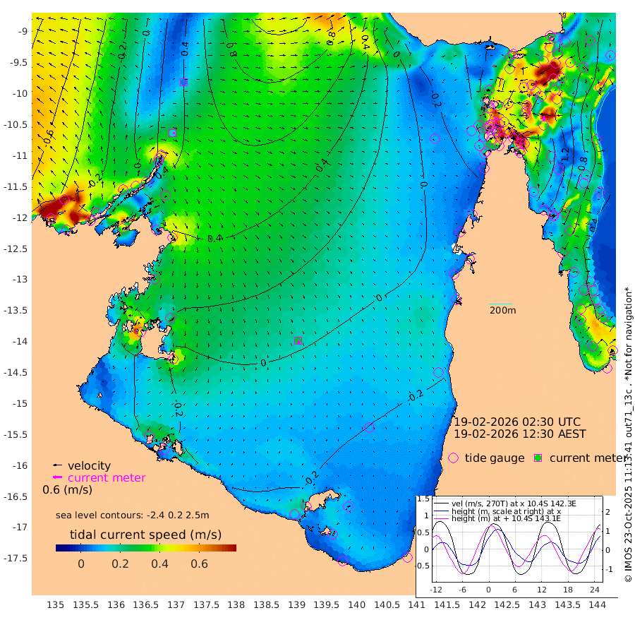 15cm/s 100T +3cm/s rms + 7cm/s -42T. ARA-GOC87 57m 27cm/s 168T +3cm/s rms + 2cm/s -2T. ARA-GOC87 60m 5cm/s 70T +2cm/s rms + 3cm/s 61T. ARA-GOC87 47m 165cm Daru 152cm Bobo Island 65cm Meer Island Barge 101cm Bramble Cay 140cm Unnamed Cay 139cm Pearce Cay 125cm Stephens Island 136cm Merrie England Shoals 166cm Mutacomal Reef 113cm Darnley Island Barge 72cm East Cay 135cm Yorke Island Barge 147cm Rennel Island 138cm Aureed Island 151cm Dungeness Reef 158cm Zagai Island 162cm Yam Island 146cm Dauan Island 137cm Saibai Island 132cm Phipi Reef 171cm Warrior Reef - West 110cm Mabuiag Island Barge 142cm Half Way Island 156cm Coconut Island 156cm Dugong Islet 158cm Poll Island 157cm Kirkcaldie Reef 148cm Suarji Island 154cm Sue Islet 61cm Hawkesbury Island 140cm Alert Patches 148cm Twin Island 71cm Badu Island 153cm St Pauls (Moa Island) 88cm Kubin (Moa Island) 122cm Ince Point 103cm Thursday Island 109cm Nardana Patches 84cm Turtle Head 60cm Round Island 45cm Goods Island 14cm Booby Island 26cm White Rocks Area -5cm Carpentaria 131cm Papou Point 18cm Bampfield Head 6cm Crab Island 27cm Red Wallis Island 71cm Packe Island 165cm Harrington Reef 39cm Herald Camp 45cm Sharp Point 66cm Red Island Point 95cm Possession Island 148cm Alpha Rock 158cm Frederick Point 170cm Wyborn Reef Light 172cm Tetley Island 75cm Triangle Reef 161cm Turtle Head Island 69cm Maclennan Cay 37cm Raine Island 130cm Mcsweeny Reef 114cm Collette Reef 70cm Shadwell Reef 120cm Hannibal Island 103cm Round Point -6cm Vrilya Point 86cm Cape Grenville 78cm Hicks Island 83cm Sir Charles Hardy Island 27cm Harvey Island 66cm Kay Reef 49cm Rocky Island 39cm Chapman Island 39cm Ham Reef 49cm Jubilee Reef 47cm Night Island 41cm Unnamed Reef No. 3 51cm Morris Island 41cm 1st 3 Mile Opening 46cm Creech Reef 58cm Fife Island 44cm Eden Reef 48cm Stanley Island 56cm Normanby River 0cm Yabooma Island 20cm Hutchison River -3cm Elcho Island -4cm North West Crocodile Island 39cm Cape Wessel 26cm Stevens Island 80cm Guluwuru Island 3cm Hopeful Bay 21cm Auster Point 28cm Two Island Bay 55cm Cadell Strait 184cm Mallison Island 58cm Melville Bay (Gove Harbour) 66cm Truant Island 45cm Cape Arnhem 15cm Cape Grey 0cm Hawk Island -41cm Milner Bay (Groote Eylandt) -36cm Cape Beatrice -63cm West Island -77cm Centre Island -51cm Mornington Island -47cm West Wellesley Islands -69cm Bountiful Island -92cm Albert River Mouth -122cm Sweers Island -93cm Karumba -24cm Nassau River Offshore 1cm Christmas Creek -6cm Archer River 9cm Boyd Point -2cm Weipa (Humbug Point) -7cm Pennefather River -3cm Cullen Point